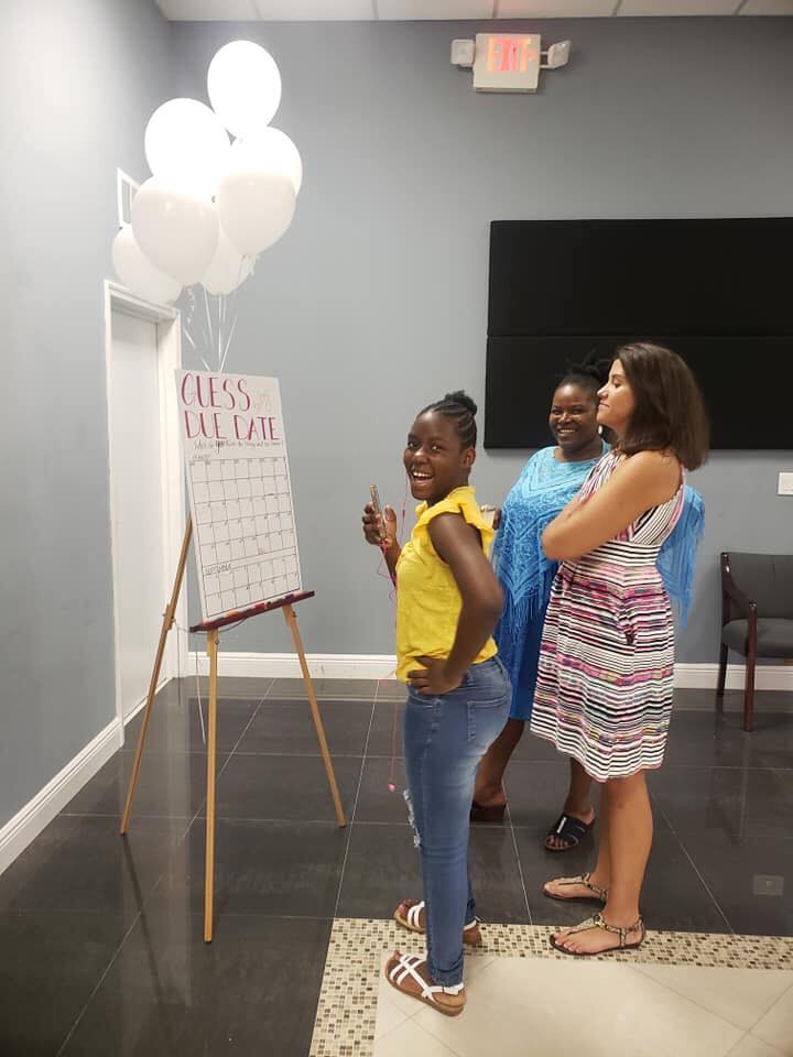 The baby shower wasn't your typical party. As you can see below, we were all seriously considering the various games/challenges. The one pictured below was called guess the arrival date. Only 4% of babies arrive on their actual due date. With that, the calendar had the predicted due date and we were to write our names on the day we think the baby will come. Lots of math was surprisingly involved and someone even checked when there would be a full moon. To be on the safe side I picked three dates and a week. The other two games were on the table. We had to guess the size of the belly with a string. Her sister in law won that one. I was overly confidante and as it turns out she is surprisingly smaller than most thought. As confidante as I was with that game and lost I better be right about the due date or at the least the arrival week guesstimation.