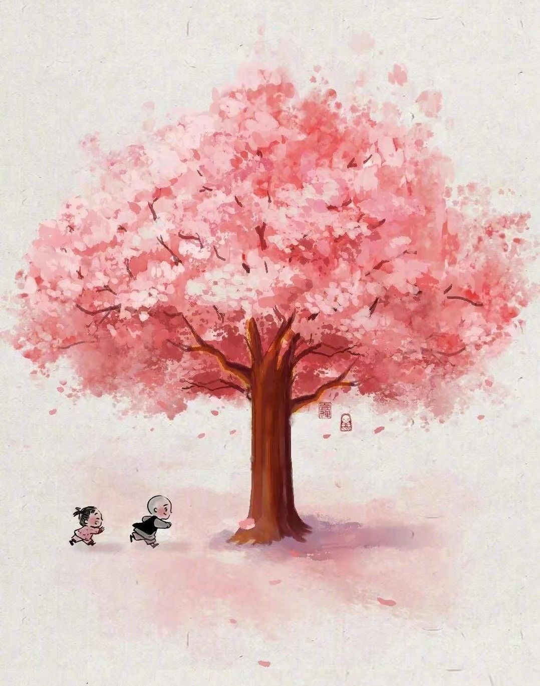 Time is an endless song, we ride the boat down the river, cross-strait passes dark, fog, desert and there are thousands of red, flowers like brocade...