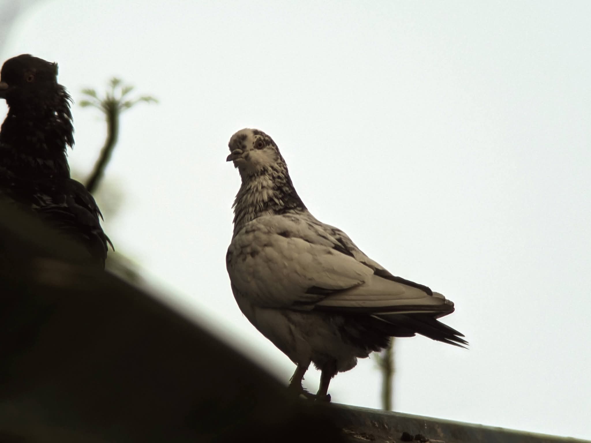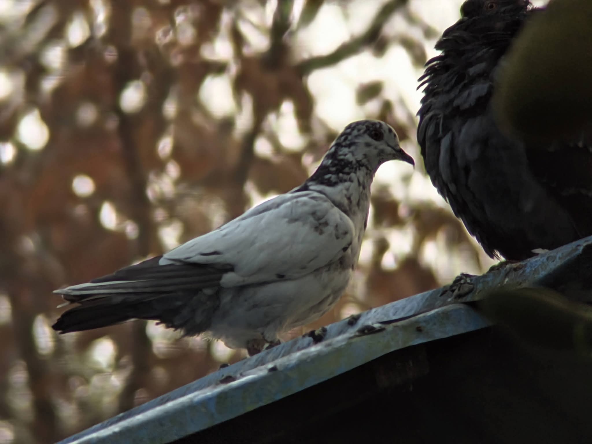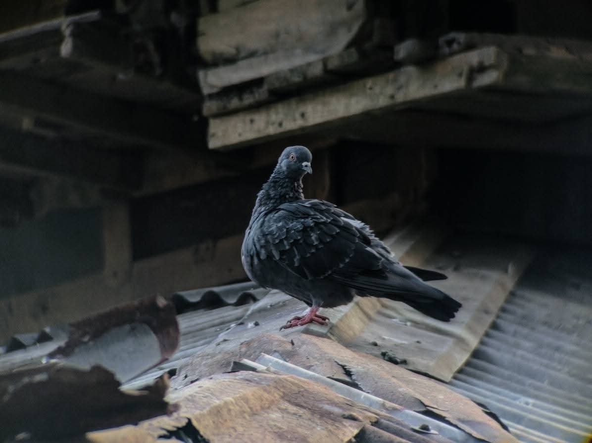 A pigeon is sitting on the same tin roof. This pigeon looks very beautiful and charming. It flew and sat on the tin. The pigeon is sitting very nicely on the tin roof. Pigeons sit on tin roofs and also on the branches of trees.