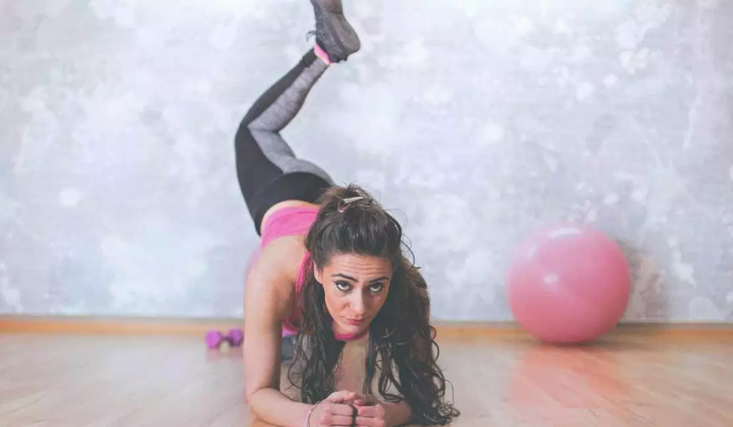 ● Extend your right leg back, toes pointed down. ● Lift your leg until it’s level with your back.