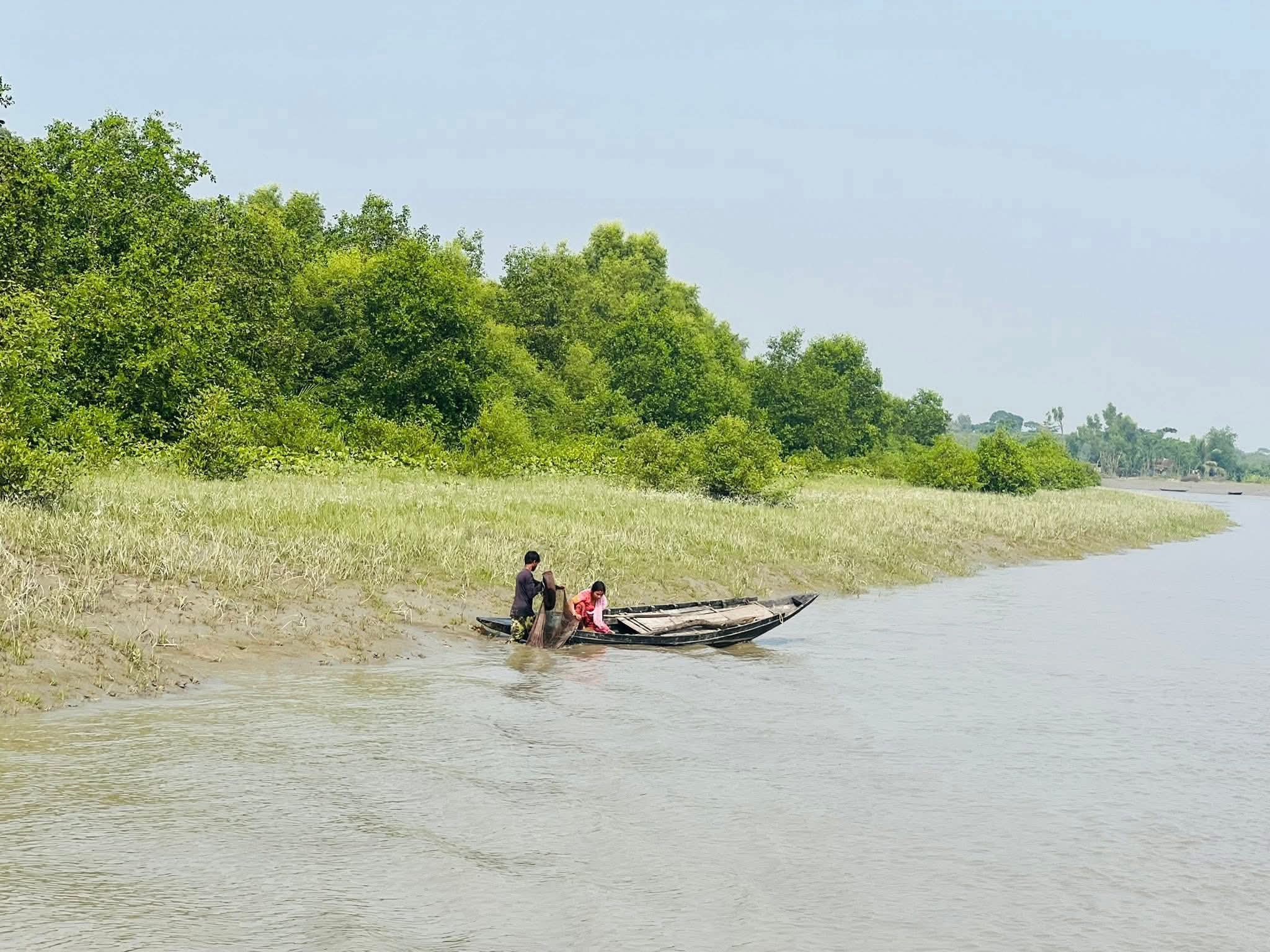 Here, in a river area, they were fishing very nicely near the riverbank, and they were taking the fish from there. The fishing that was taking place here was done in a very good and beautiful way.