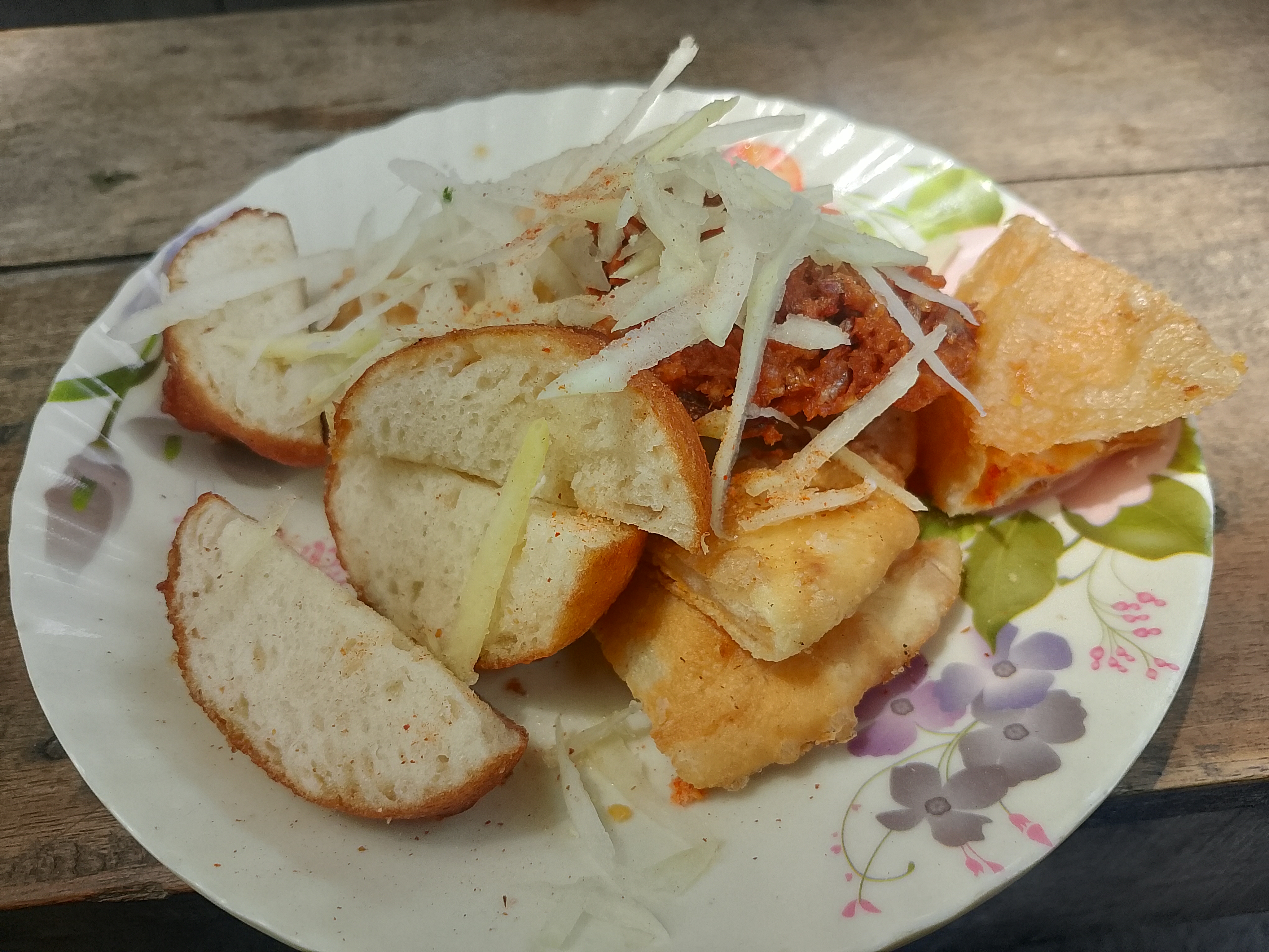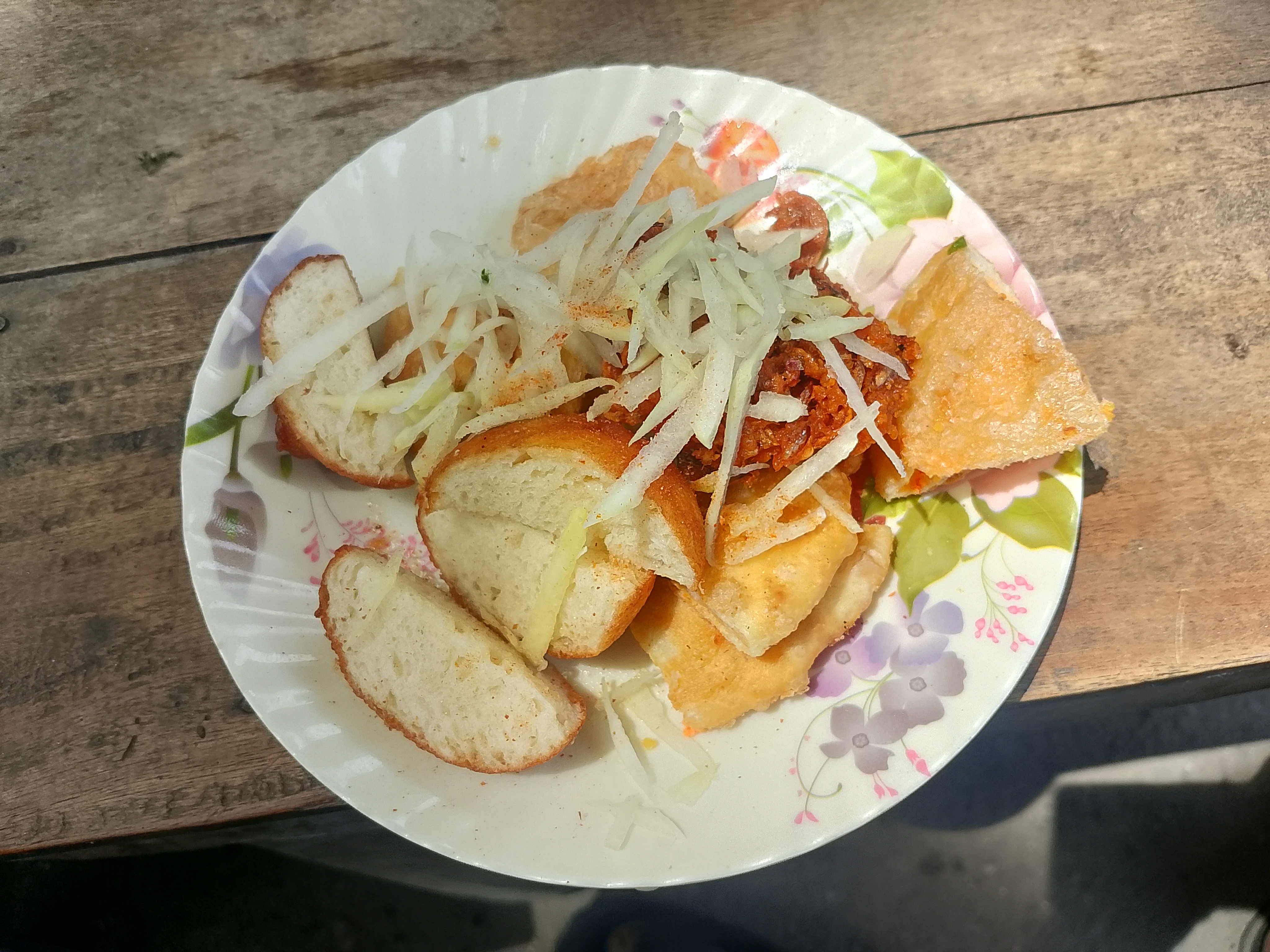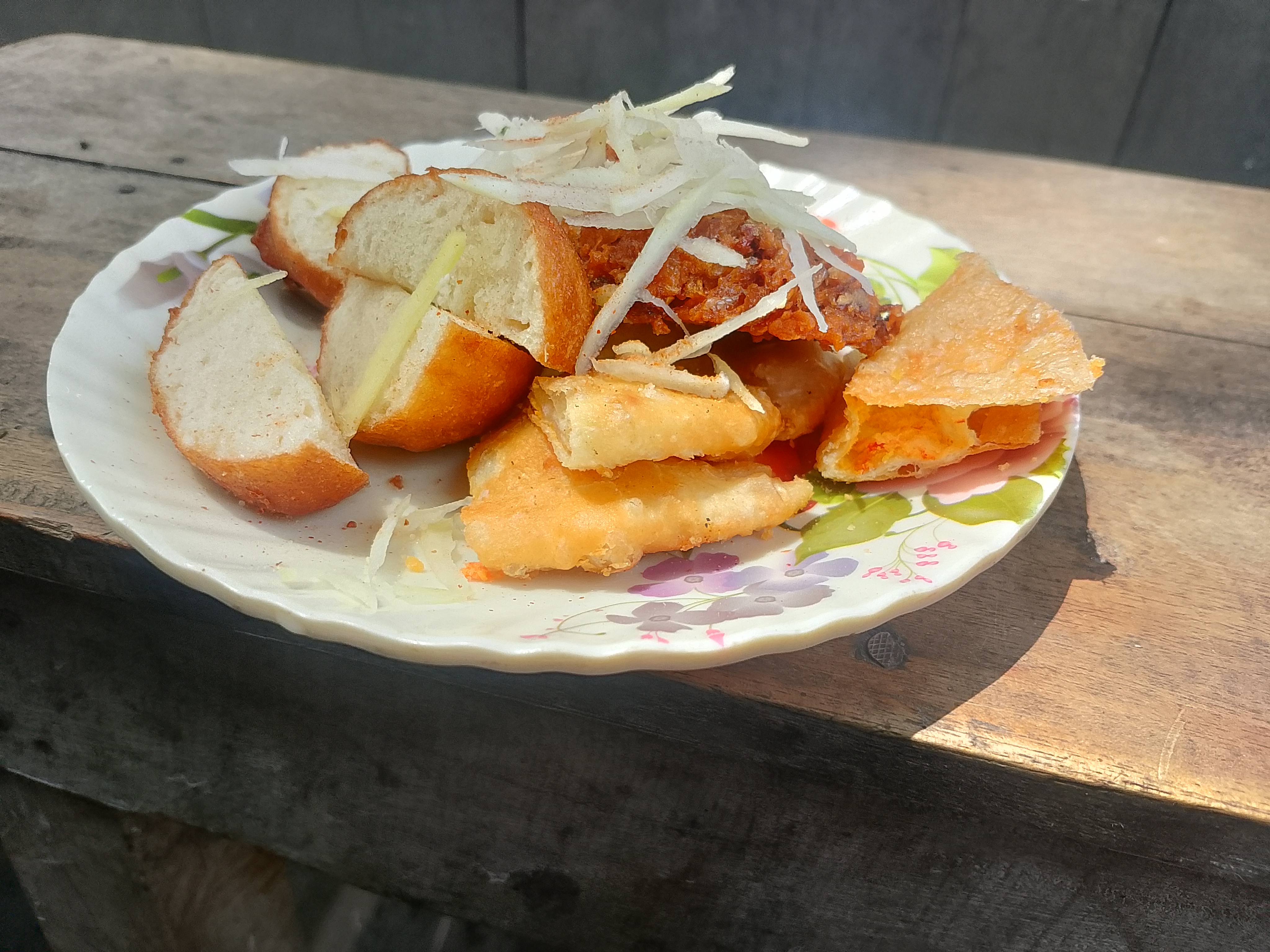 There were three food items here, including puri. These foods are very tasty and delicious, and they are fried in oil. Today, I went to the market, and after going there, I liked these foods and ordered a small amount.