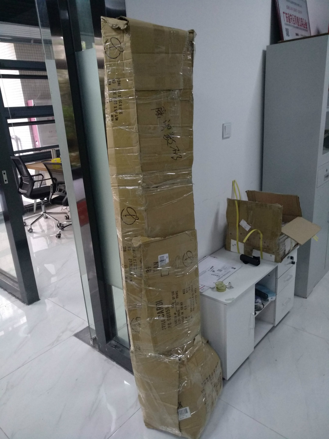 先是原先送货的那家物流公司,那家公司的快递员上门后,我们才发现没有包装盒。原先那个包装盒哪里去了呢?