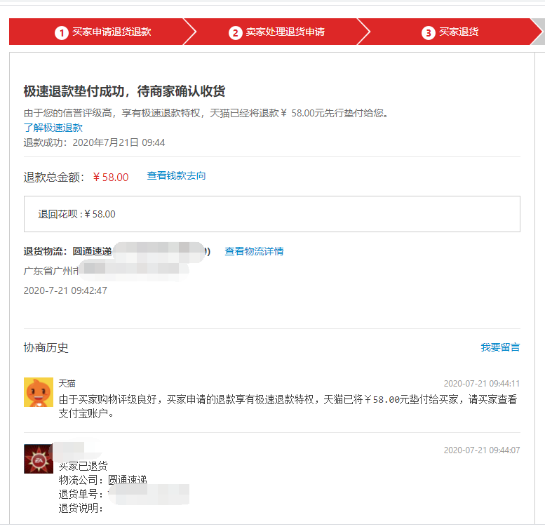 周一我上班时,因为个人原因,看上另一商家的另一款产品,便想着把原先这件退掉。晚上回家就在手机淘宝上申请选择了次日早上退货。
