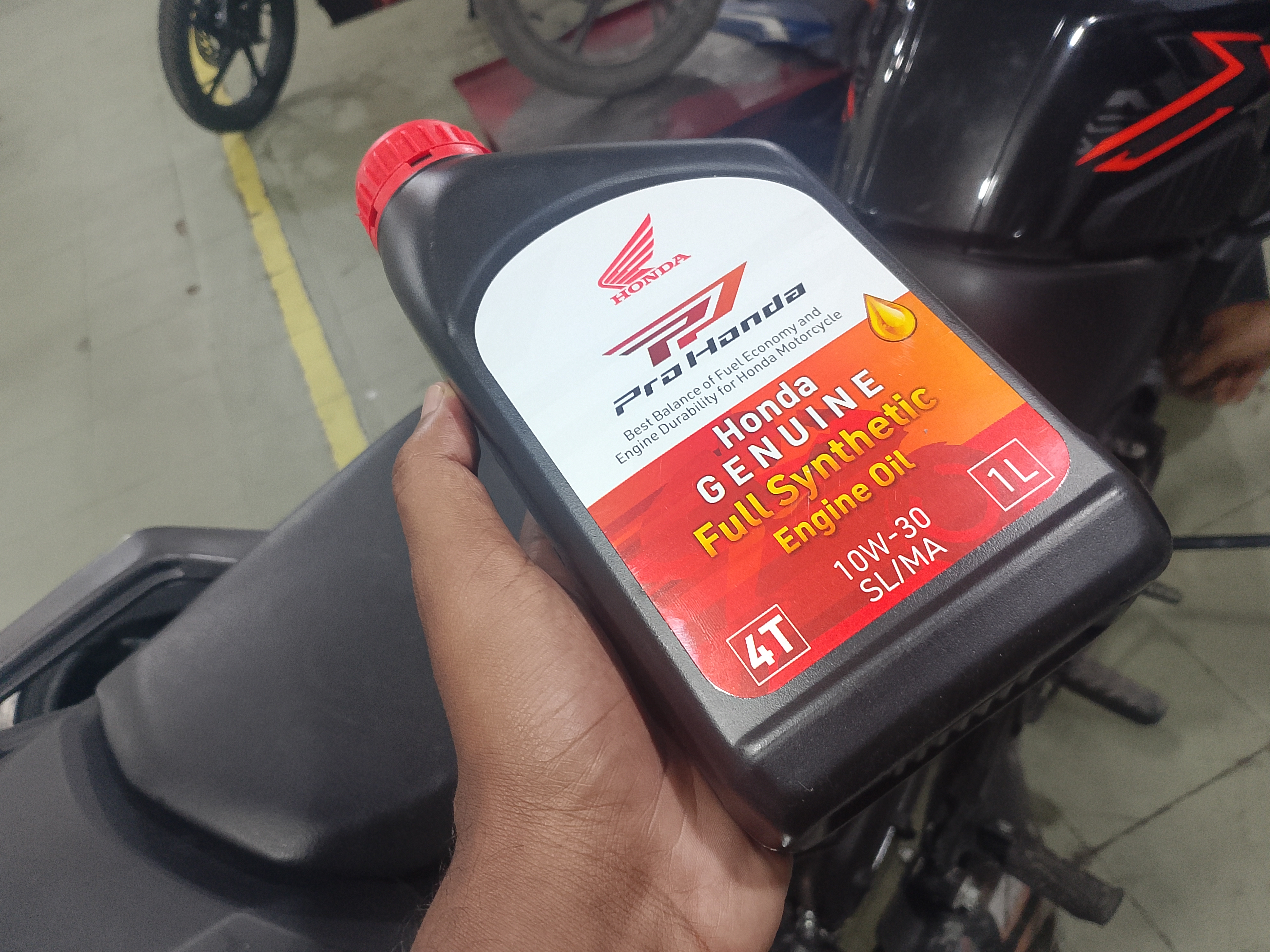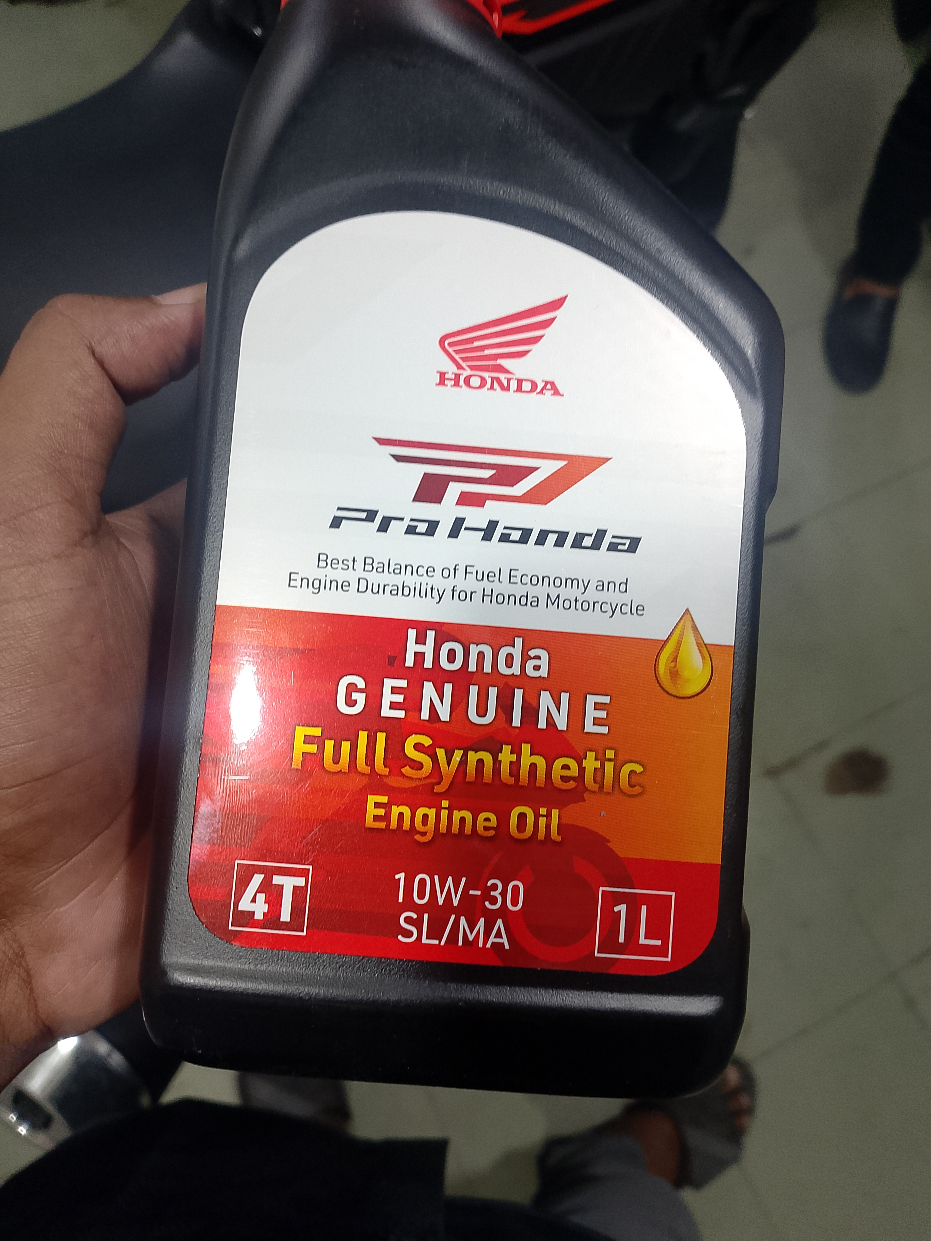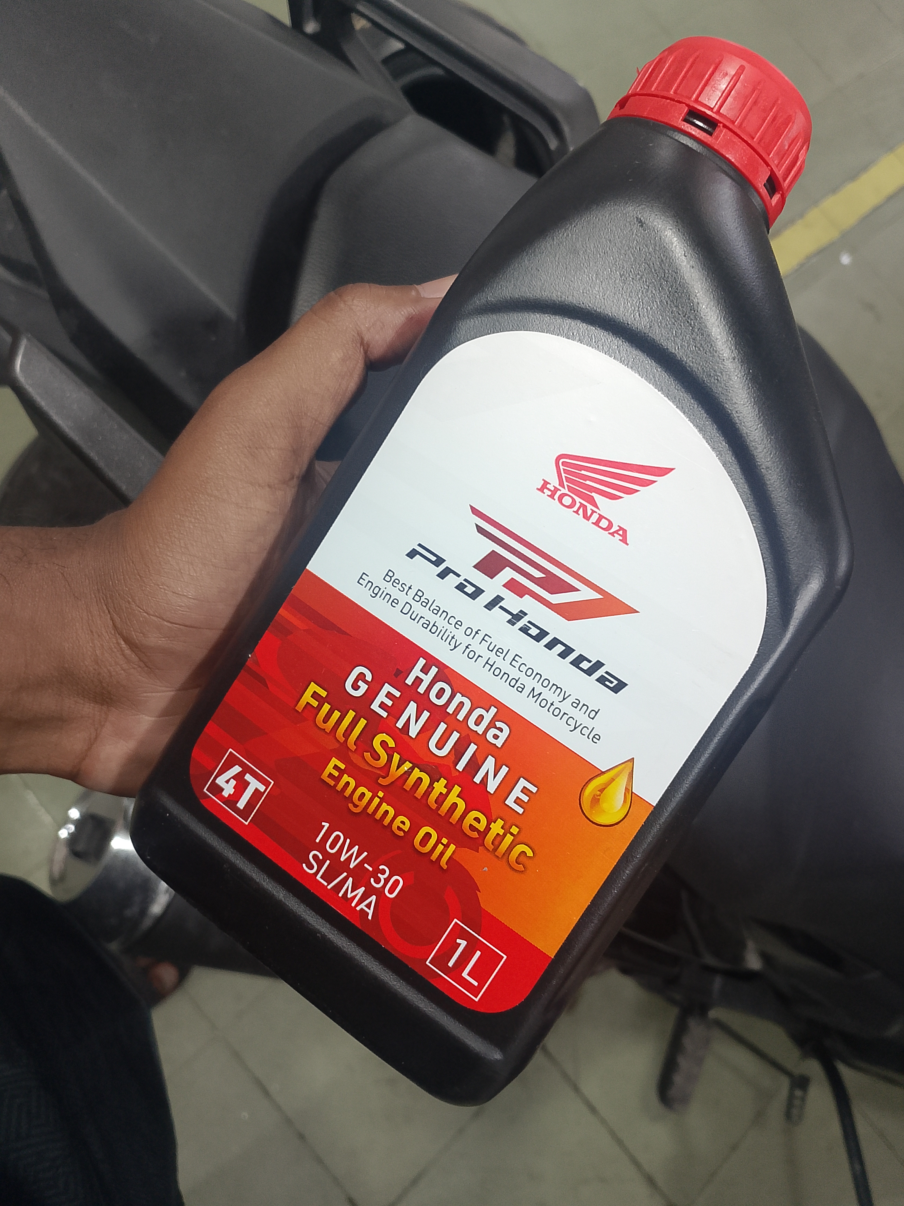 আমি আমার মোটরসাইকেলের জন্য এই ইঞ্জিন অয়েলটা কিনেছি। এটা ১ লিটারের, এবং দাম ১২৭০ টাকা। আমি শোরুমে গিয়েছিলাম, এবং ওরা আমাকে ওখানেই এটা দিয়ে দিয়েছে। এই তেলটা বাইরে পাওয়া যায় না, তাই এটা আনার জন্য আমাকে শোরুমেই যেতে হয়েছিল। শোরুম থেকে কেনার পর, আমি ওখানেই আমার মোটরসাইকেলে এটা ঢেলে দিই। অল্প সময়ের মধ্যেই কাজ শেষ হয়ে যায়, এবং আমি সেখান থেকে চলে আসি। আমি তেলটার কিছু ছবি তুলেছিলাম, এবং এখন সেই ছবিগুলো আপনাদের সাথে শেয়ার করলাম।