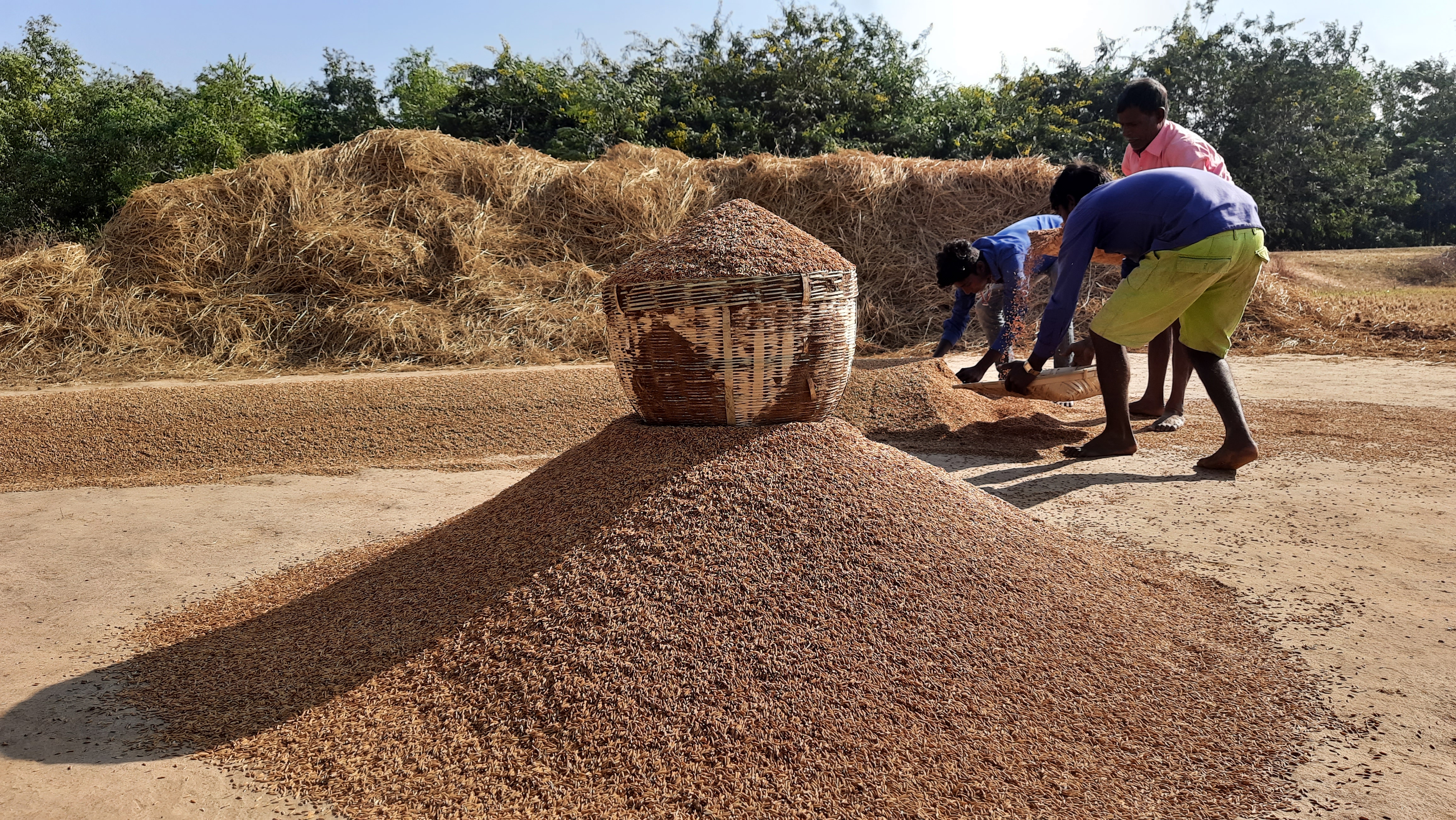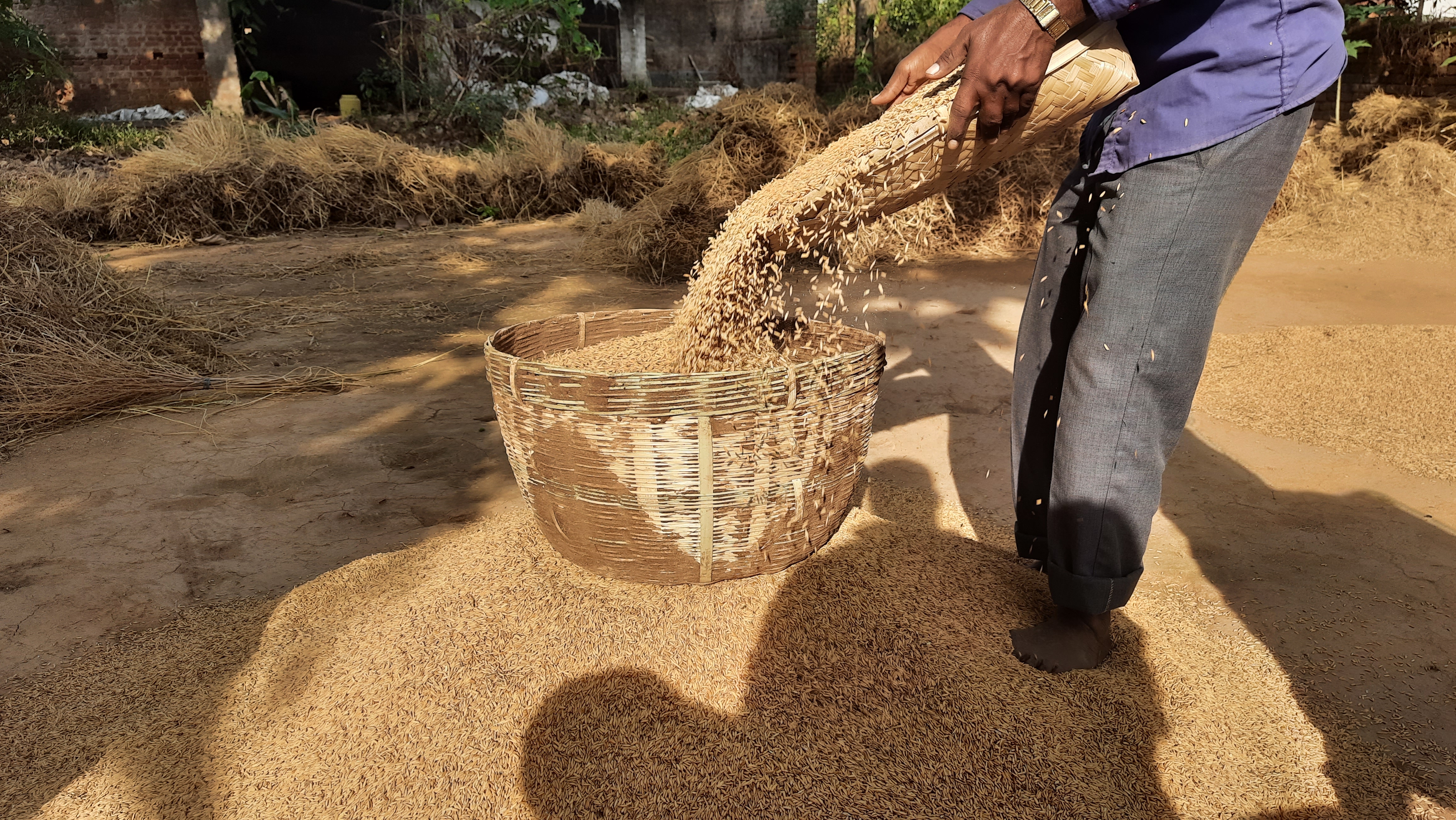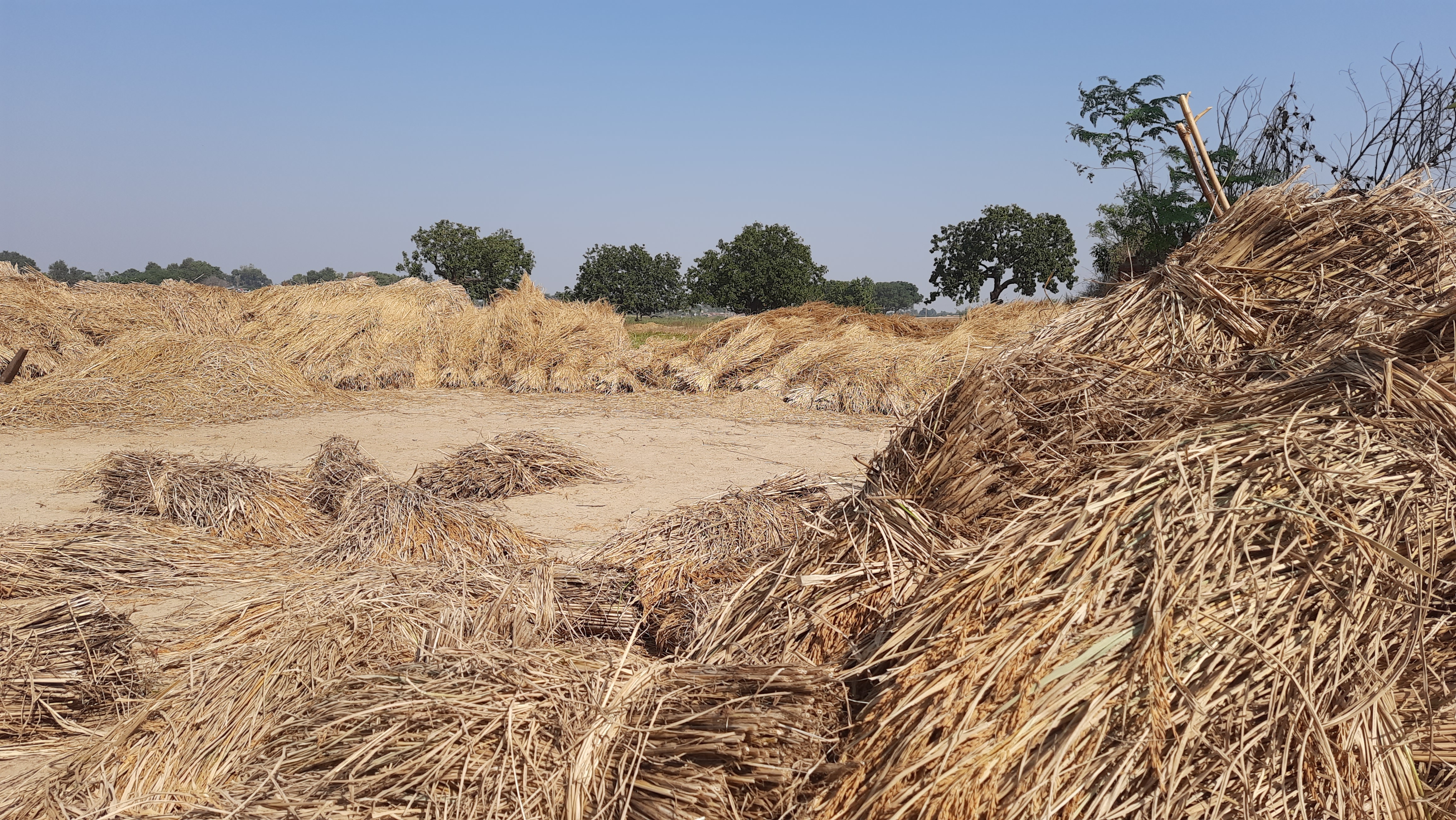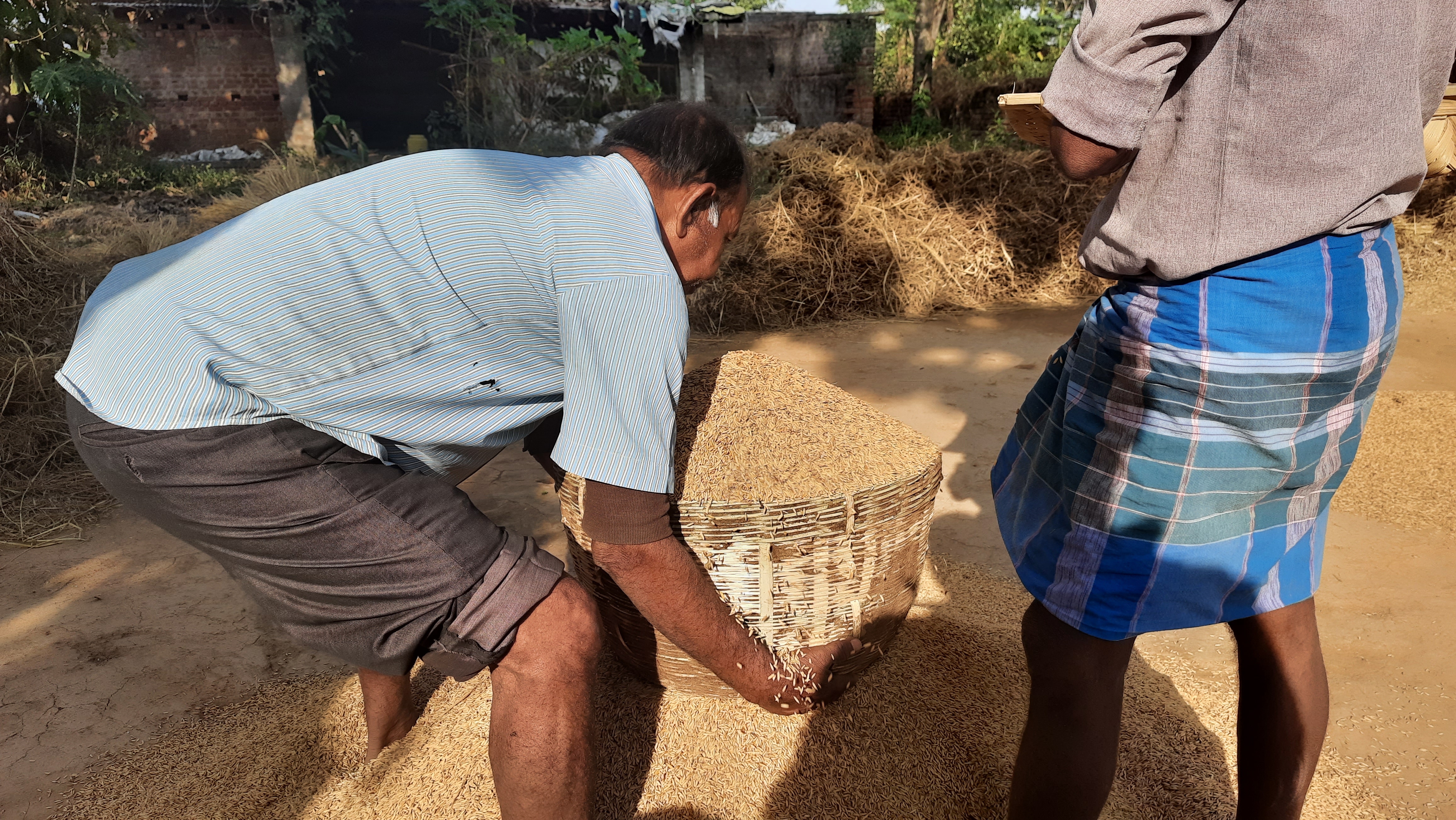 The common sight at any corner of the village, paddy, husks and straws. Thisnis the most laburous task the farmer get involved with. After citti g tye paddy from the fields they bring it on the field for segregation lrocess where, the grains were seperated from the paddy.
