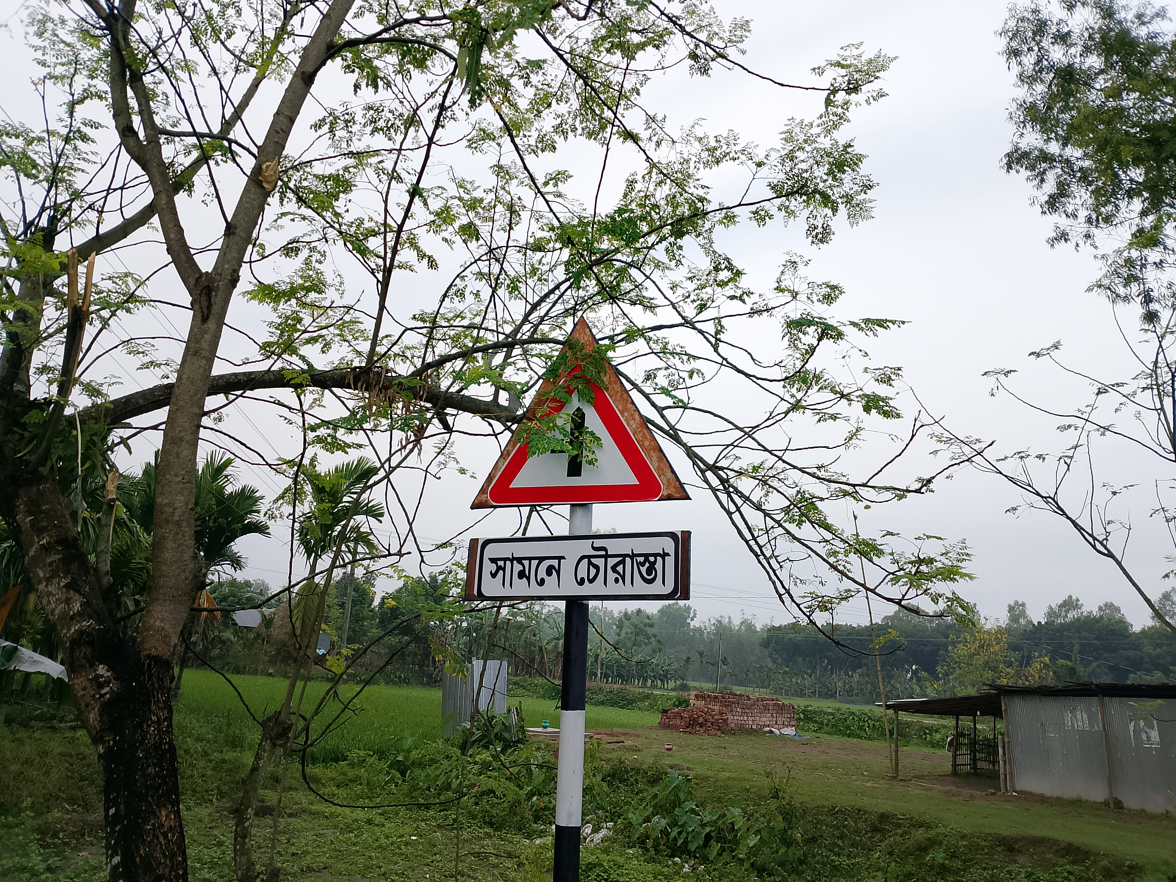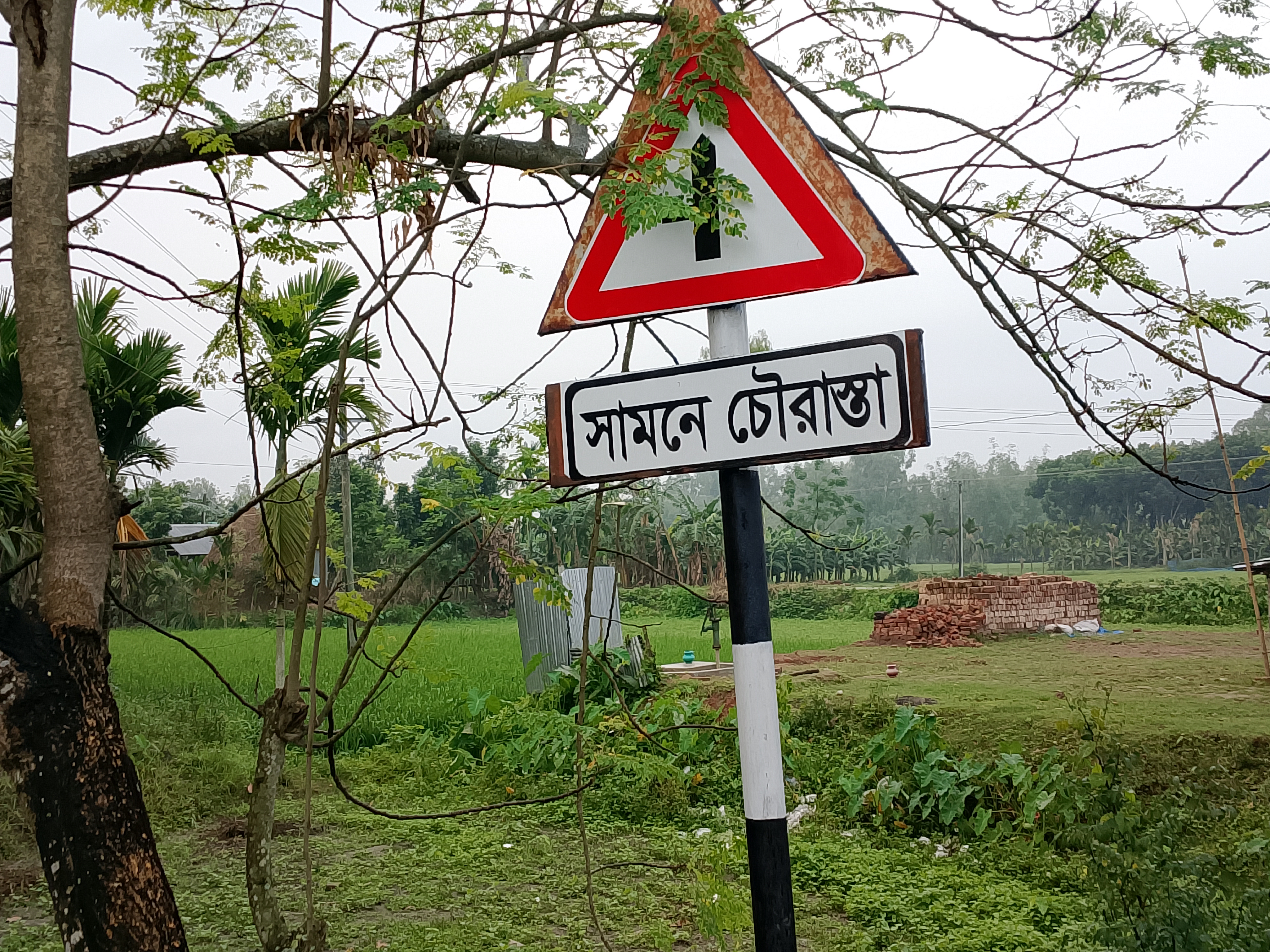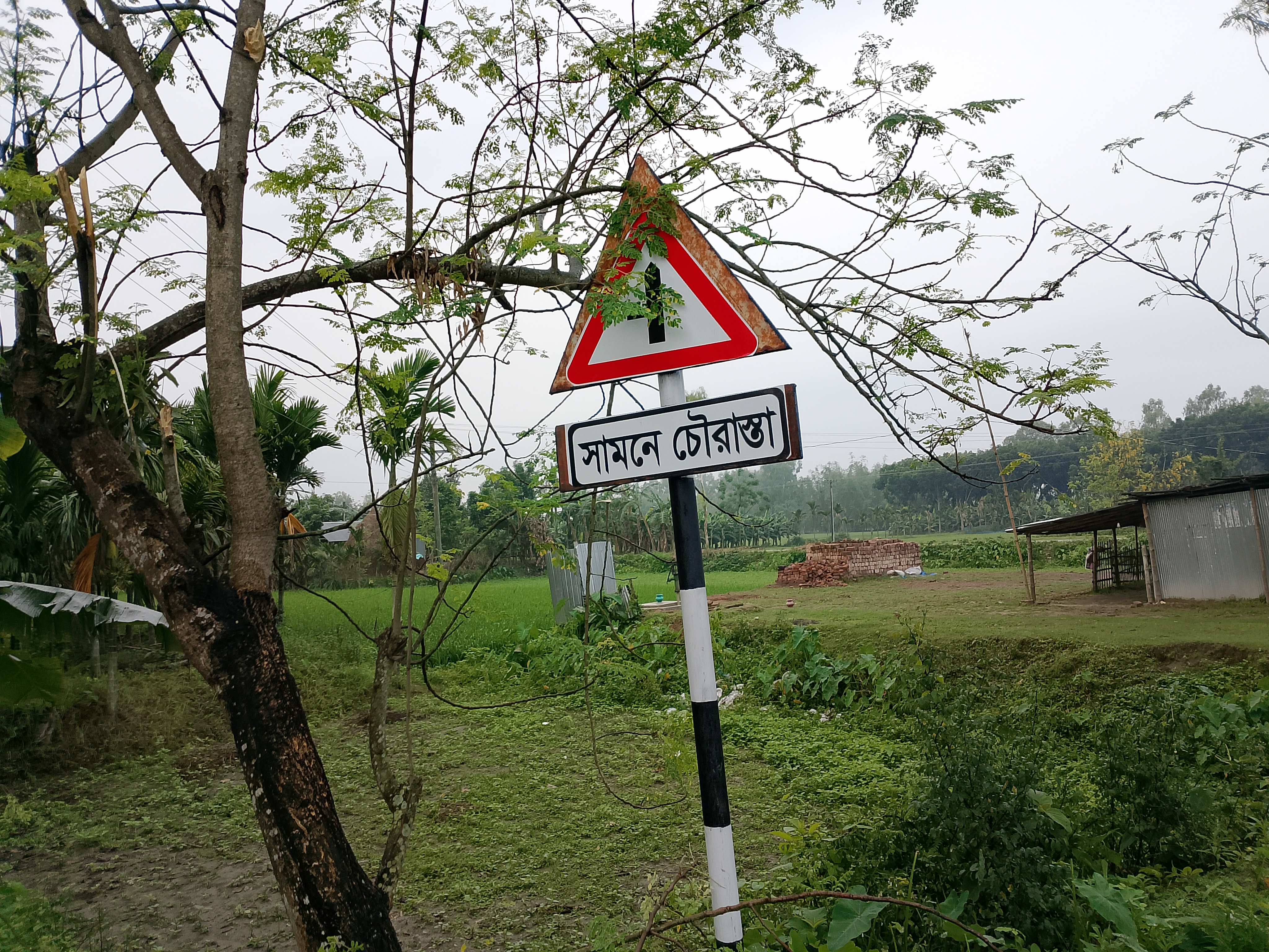 That is why it has been set up and written neatly here. It is a very good addition. A new road was built here, and this signboard has been placed beside it. First, it was installed, and then a sticker was neatly applied on it.