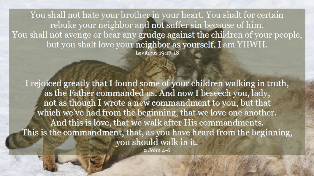 More importantly, we can't claim to be doing the first and greatest command of loving our Heavenly Father with all our heart, soul, mind, and strength, if we aren't loving our neighbor as ourselves. Of course the prophets and our Messiah and his disciples all confirm this as well. The prophets urged people to obey this. Yeshua (Jesus) lived as an example while teaching the same. John the beloved disciple calls it walking in Truth.