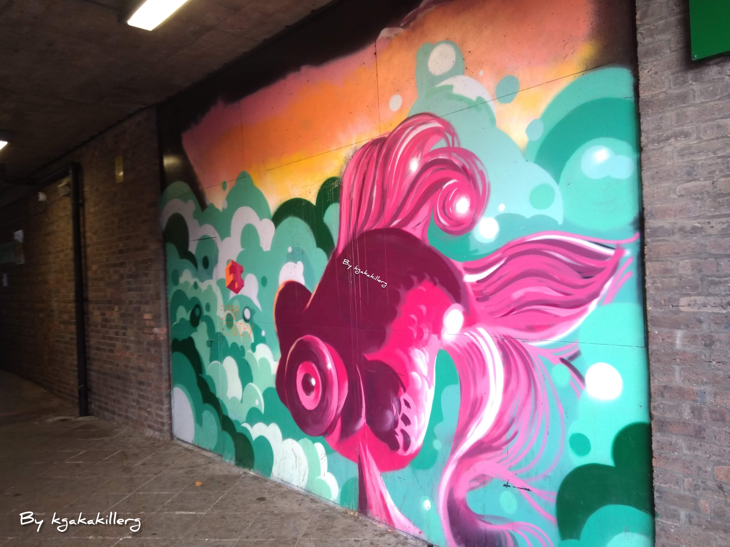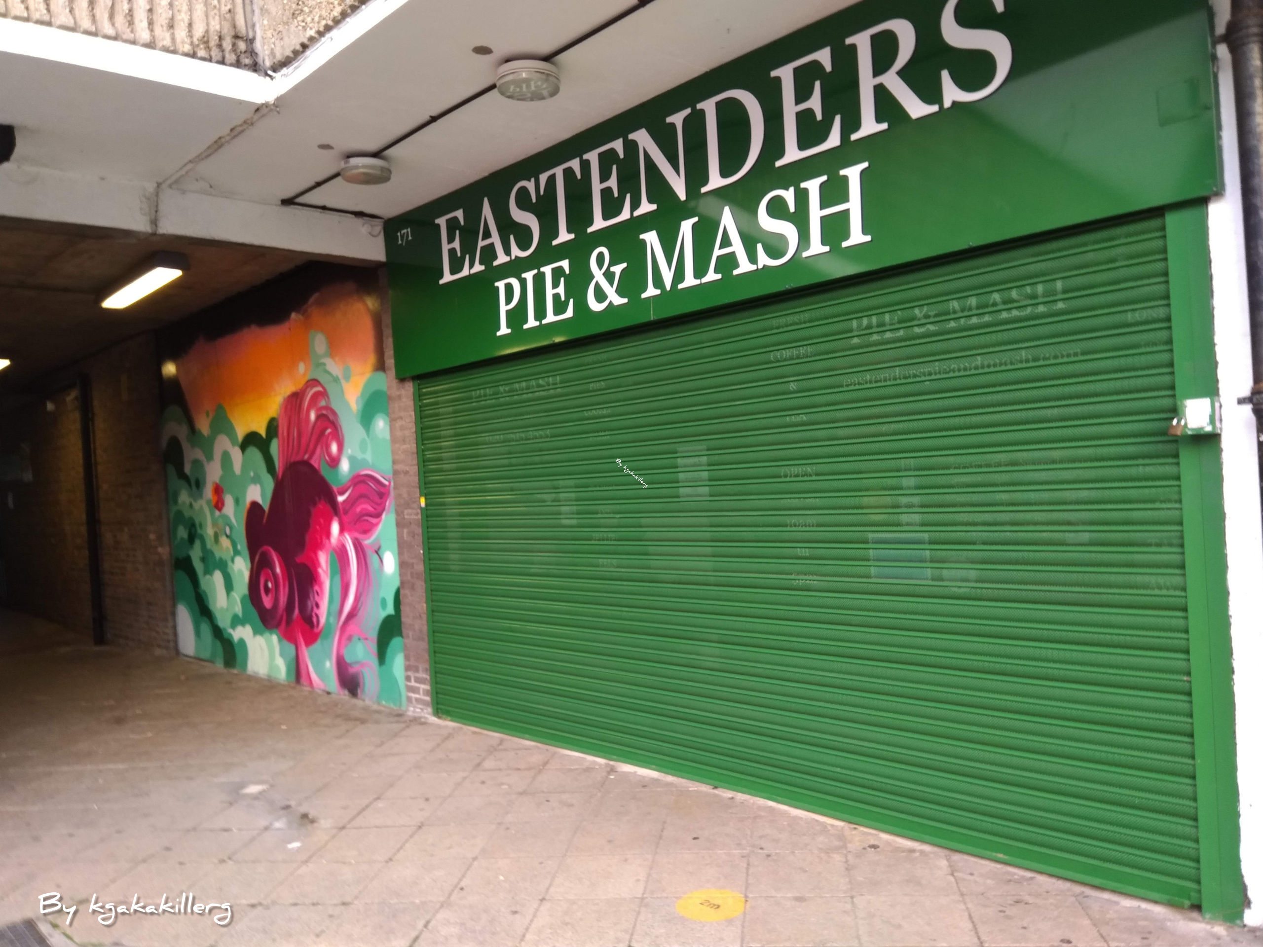 Here's a nice photo I took of some beautiful graffiti art on the wall next to the pie and mash shop