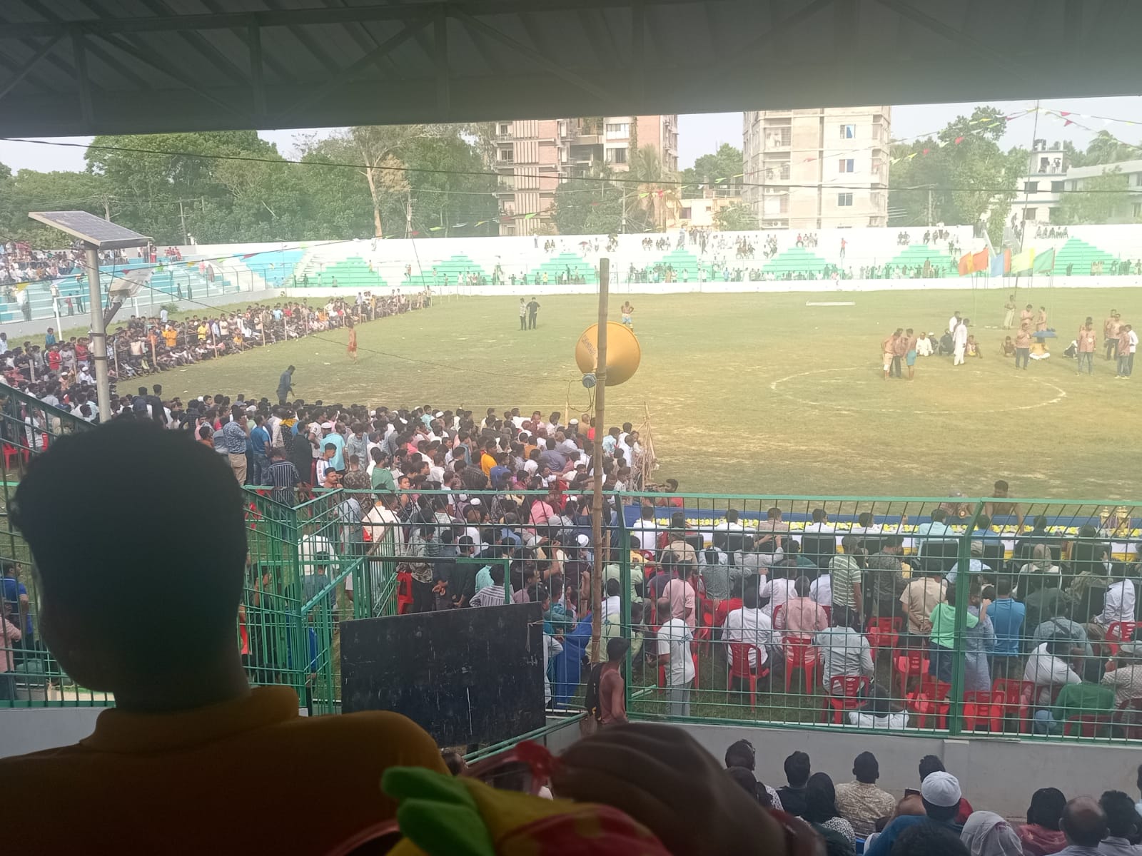 সেখানে শহরের সব মানুষ অংশগ্রহণ করেন। শহরের সব মানুষ বৈশাখী মেলায় এসে ভালো মন্দ উপভোগ করেন। সেদিন আমরাও গিয়েছিলাম বৈশাখী মেলা দেখার জন্য বাচ্চাদেরকে নিয়ে। সত্যি কথা বলতে স্টেডিয়ামের গ্যালারিতে বসে বৈশাখী মেলা আনন্দ উপভোগ করার মজাই আলাদা। শহরের সব মানুষ ছিল মনে হয় বৈশাখী মেলায় এত মানুষ জন ছিল আমার মনে হয়েছিল পুরো শহর খালি হয়ে গেছিল। এখানে বিশেষ করে শুধু কুস্তি খেলার আয়োজন করা হয়। কিন্তু অন্যান্য খেলার আয়োজন করা হয় না তেমন। তবে গ্রামে হলে তো বিভিন্ন ধরনের খেলাধুলার আয়োজন করা হয়। এছাড়া ও বিভিন্ন দোকান বসে এবং বিভিন্ন নাস্তা পানির দোকানও বসে সুন্দর ও হয় এবং ভালো লাগে। এই ডিসি সাহেবের বৈশাখী মেলা অনুষ্ঠিত হয়েছিল দুই দিন ব্যাপি।