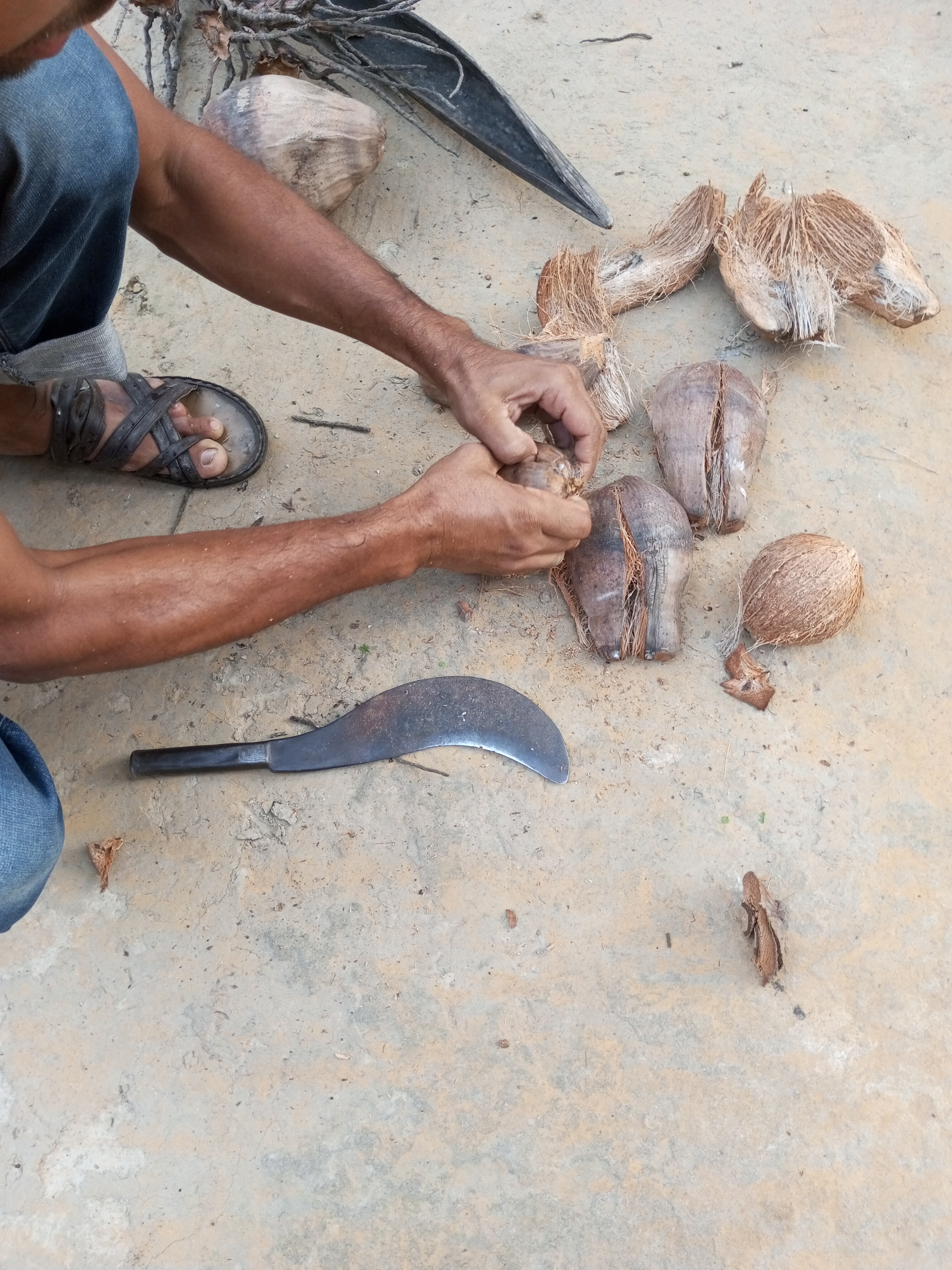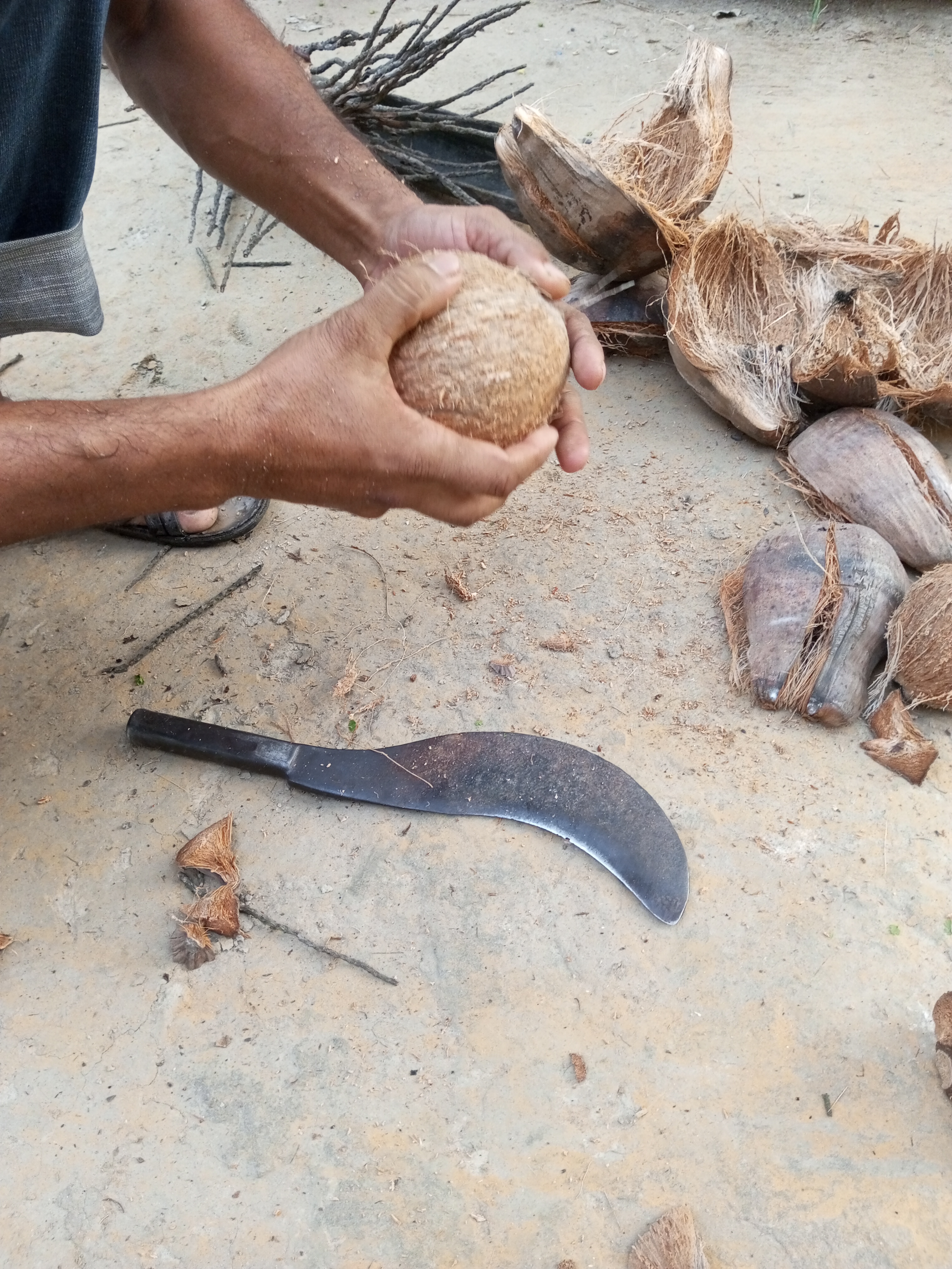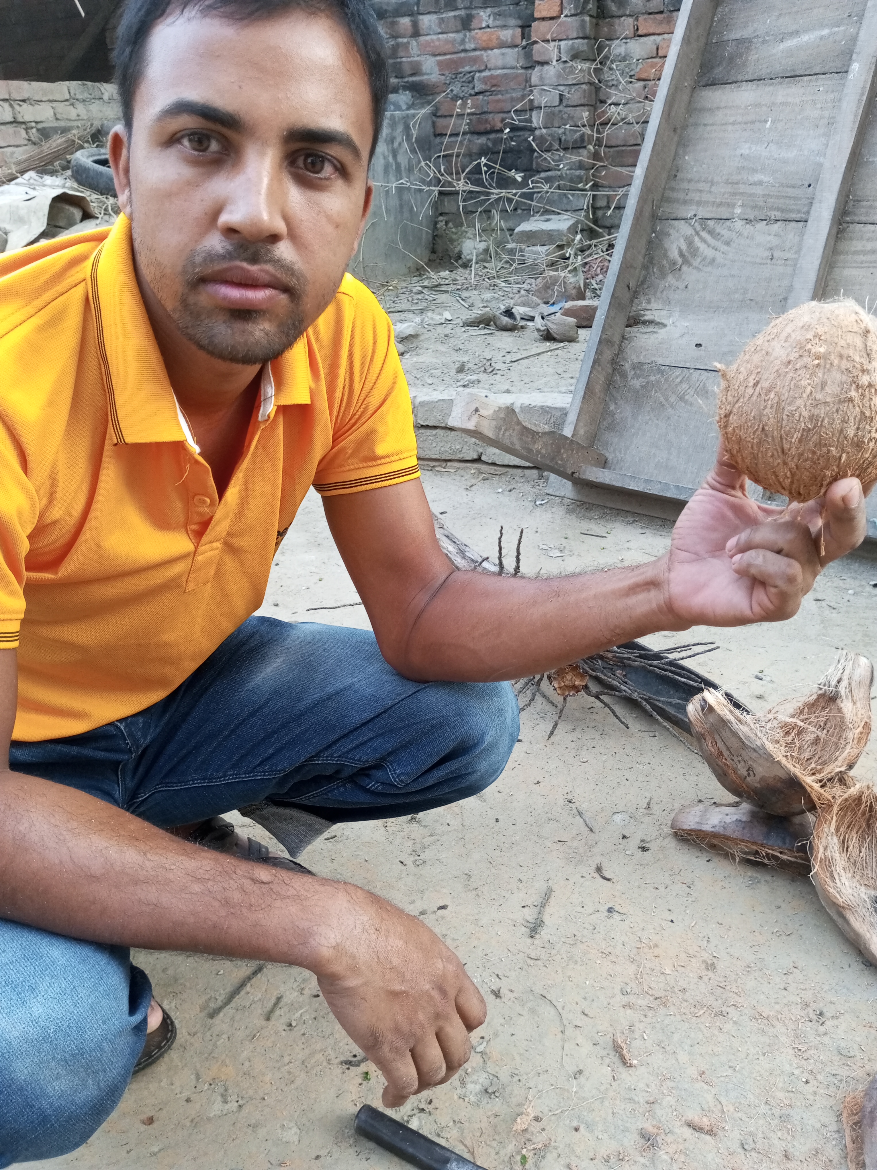 তবে আশ্চর্যের বিষয়ে, আমি লক্ষ্য করে দেখলাম একটা দুইটা নারিকেল নয়। একবারে সবগুলো পড়ে গেছে। এদিকে আমি ফটো তুলতে থাকলাম সে দ্রুত নেমে আসলো। এরপর নারিকেল হাতে ধরে বলল ফটো উঠিয়ে দাও। তারপর সব নারিকেল গুলো ছুলে দিল। নারিকেল ছোলার সময় বলতে থাকলো আমাকে ভিডিও ধারণ করলে না কেন কাজে লাগতো। কারণ ভিডিওর মধ্য থেকেও তো ফটো তোলা যায় এটা আমার মনে ছিল না। সবগুলো নারিকেল ছোলা হয়ে গেলে, চলে গেল সে অনলাইনে কাজ করতে। এদিকে আমি আমার ছোট বোন আর আম্মা ব্যস্ত হয়ে পড়লাম পিঠা তৈরি করার জন্য। আর এভাবেই সুন্দর একটা মুহূর্ত আমাদের অতিবাহিত হয়েছিল ঐদিন।
