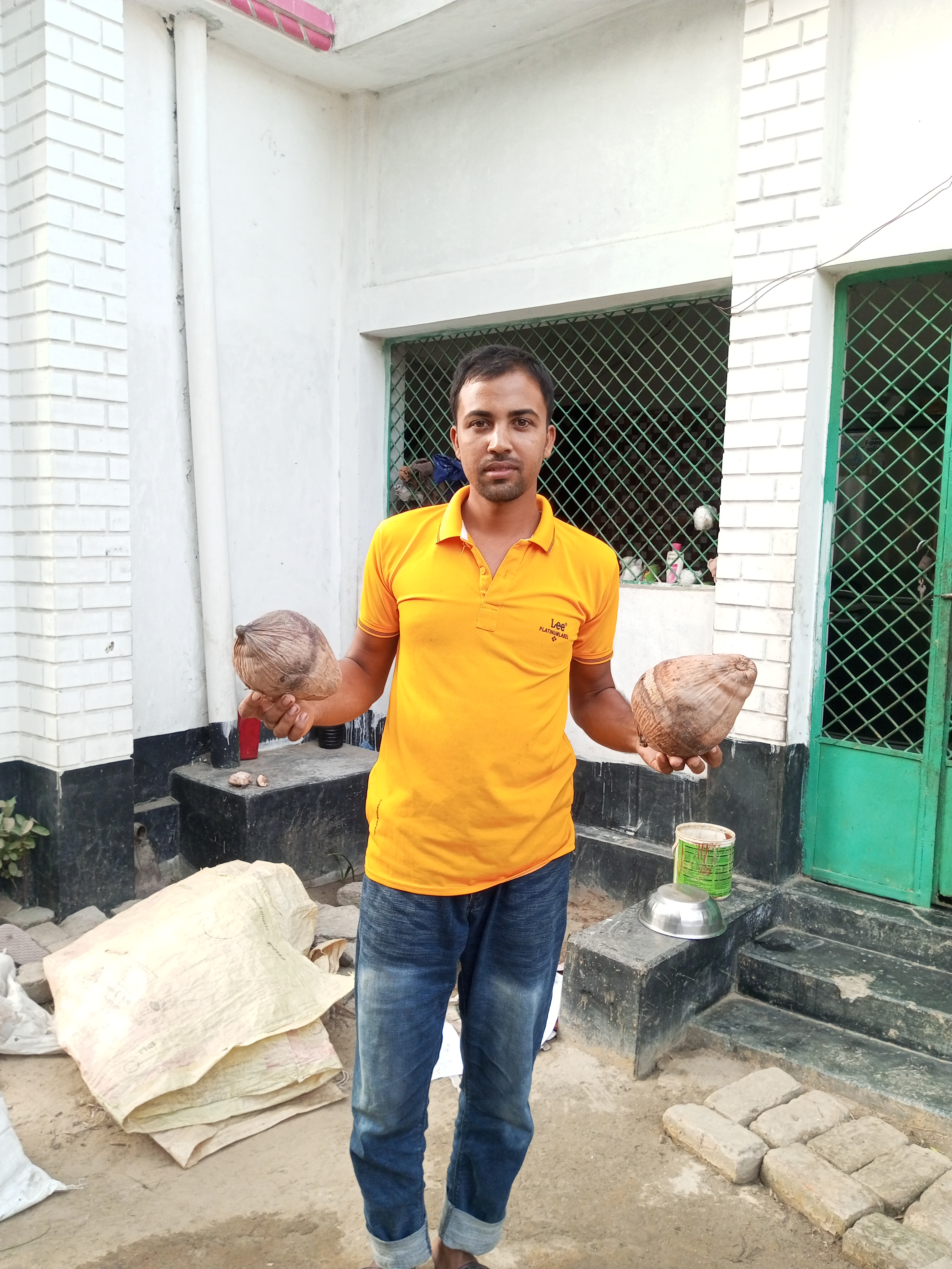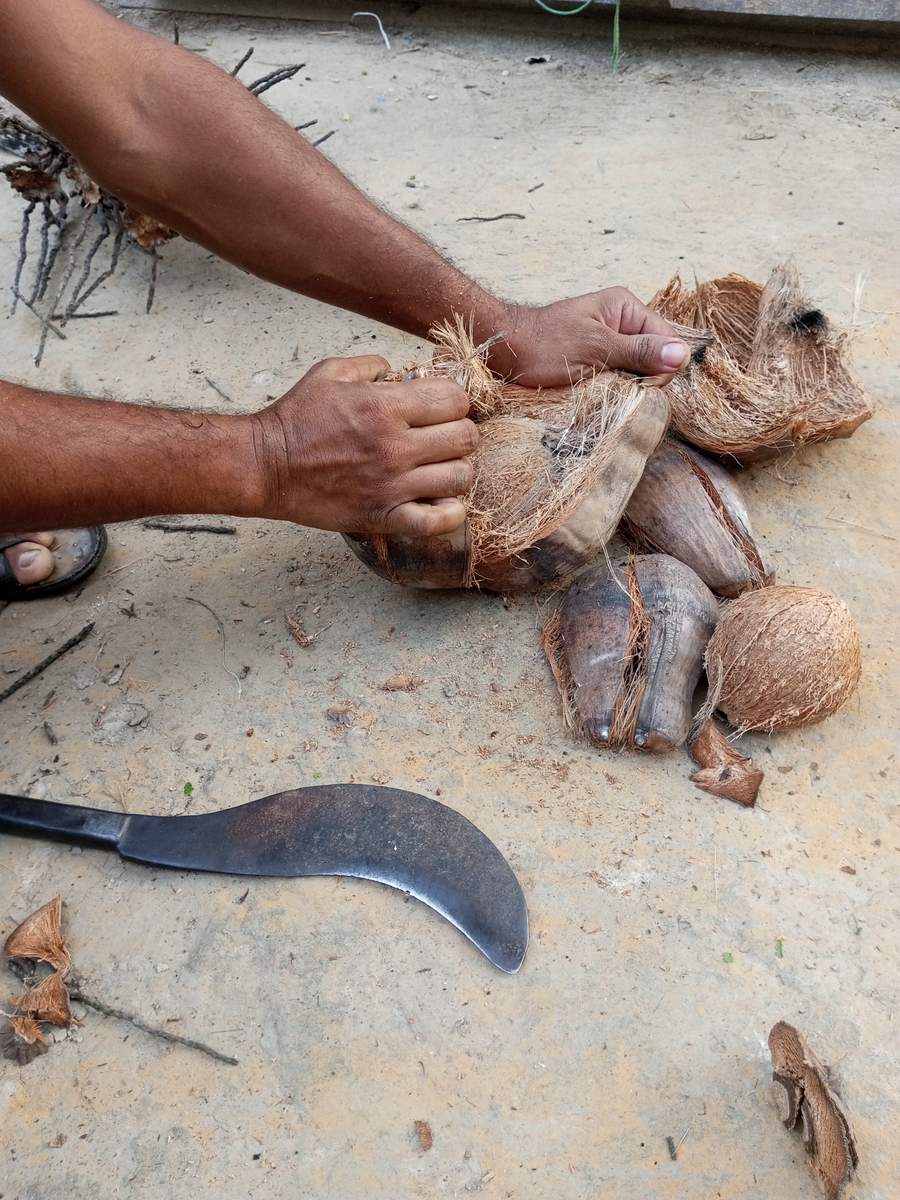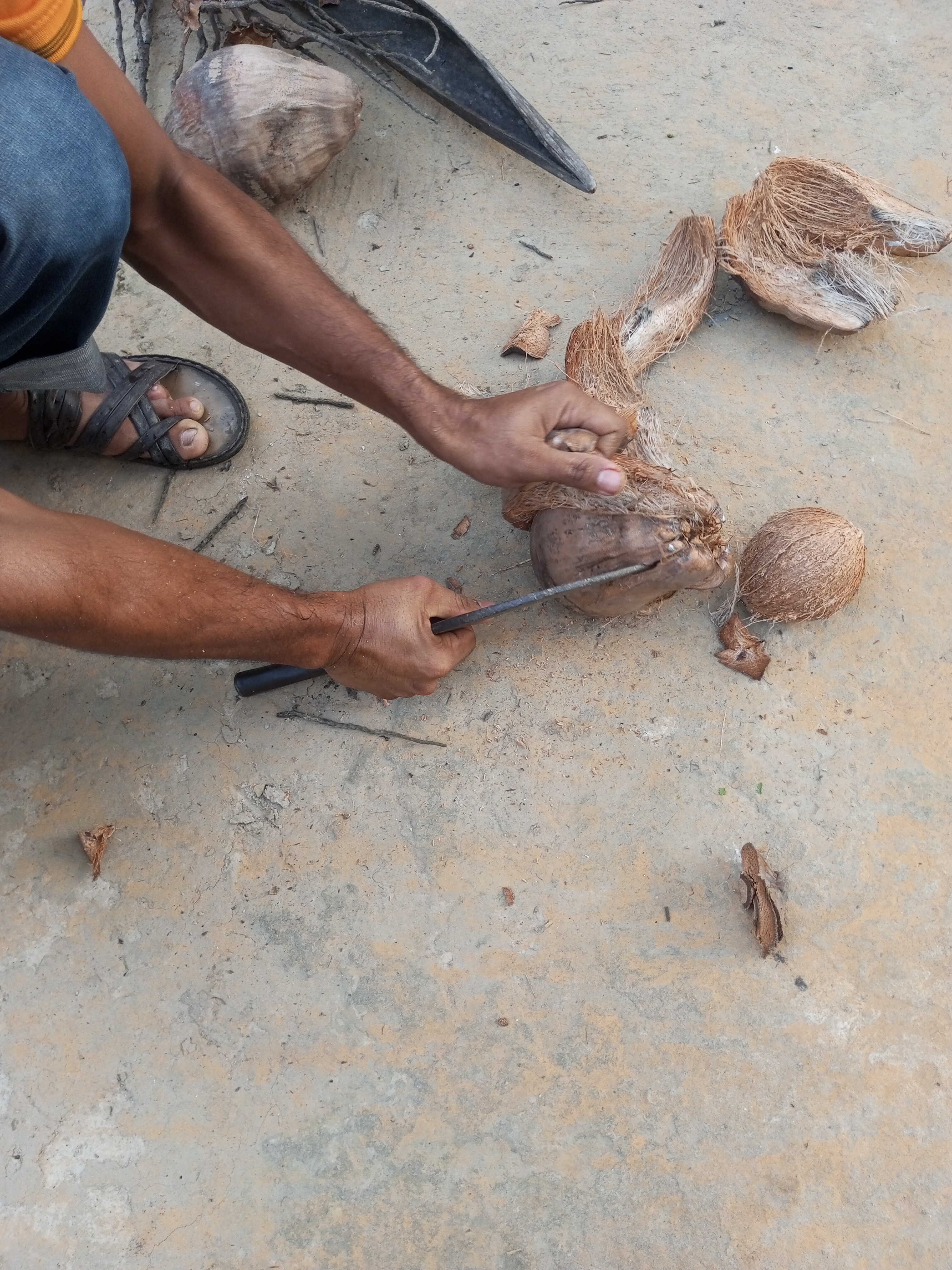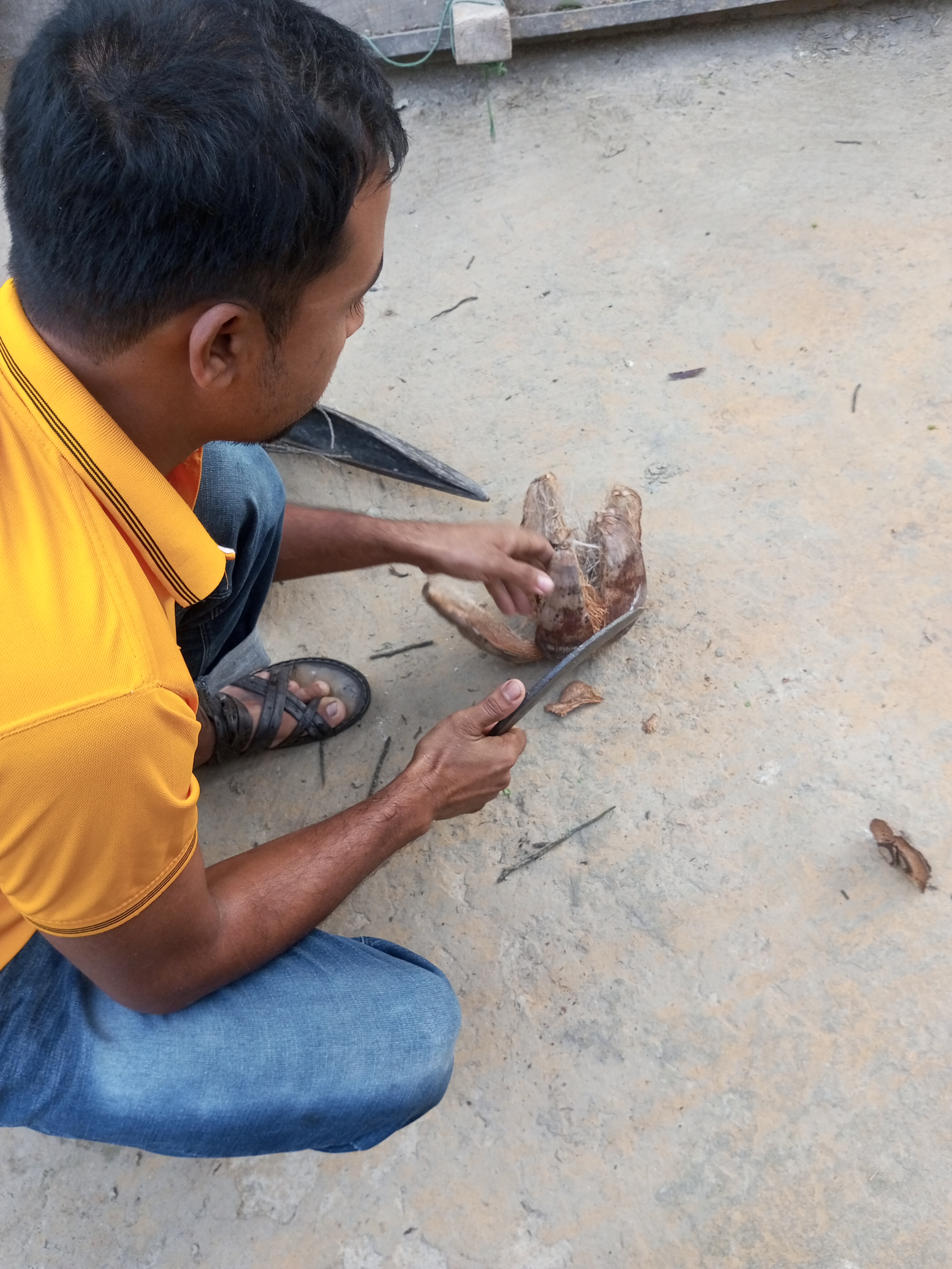 তবে আশ্চর্যের বিষয়ে, আমি লক্ষ্য করে দেখলাম একটা দুইটা নারিকেল নয়। একবারে সবগুলো পড়ে গেছে। এদিকে আমি ফটো তুলতে থাকলাম সে দ্রুত নেমে আসলো। এরপর নারিকেল হাতে ধরে বলল ফটো উঠিয়ে দাও। তারপর সব নারিকেল গুলো ছুলে দিল। নারিকেল ছোলার সময় বলতে থাকলো আমাকে ভিডিও ধারণ করলে না কেন কাজে লাগতো। কারণ ভিডিওর মধ্য থেকেও তো ফটো তোলা যায় এটা আমার মনে ছিল না। সবগুলো নারিকেল ছোলা হয়ে গেলে, চলে গেল সে অনলাইনে কাজ করতে। এদিকে আমি আমার ছোট বোন আর আম্মা ব্যস্ত হয়ে পড়লাম পিঠা তৈরি করার জন্য। আর এভাবেই সুন্দর একটা মুহূর্ত আমাদের অতিবাহিত হয়েছিল ঐদিন।