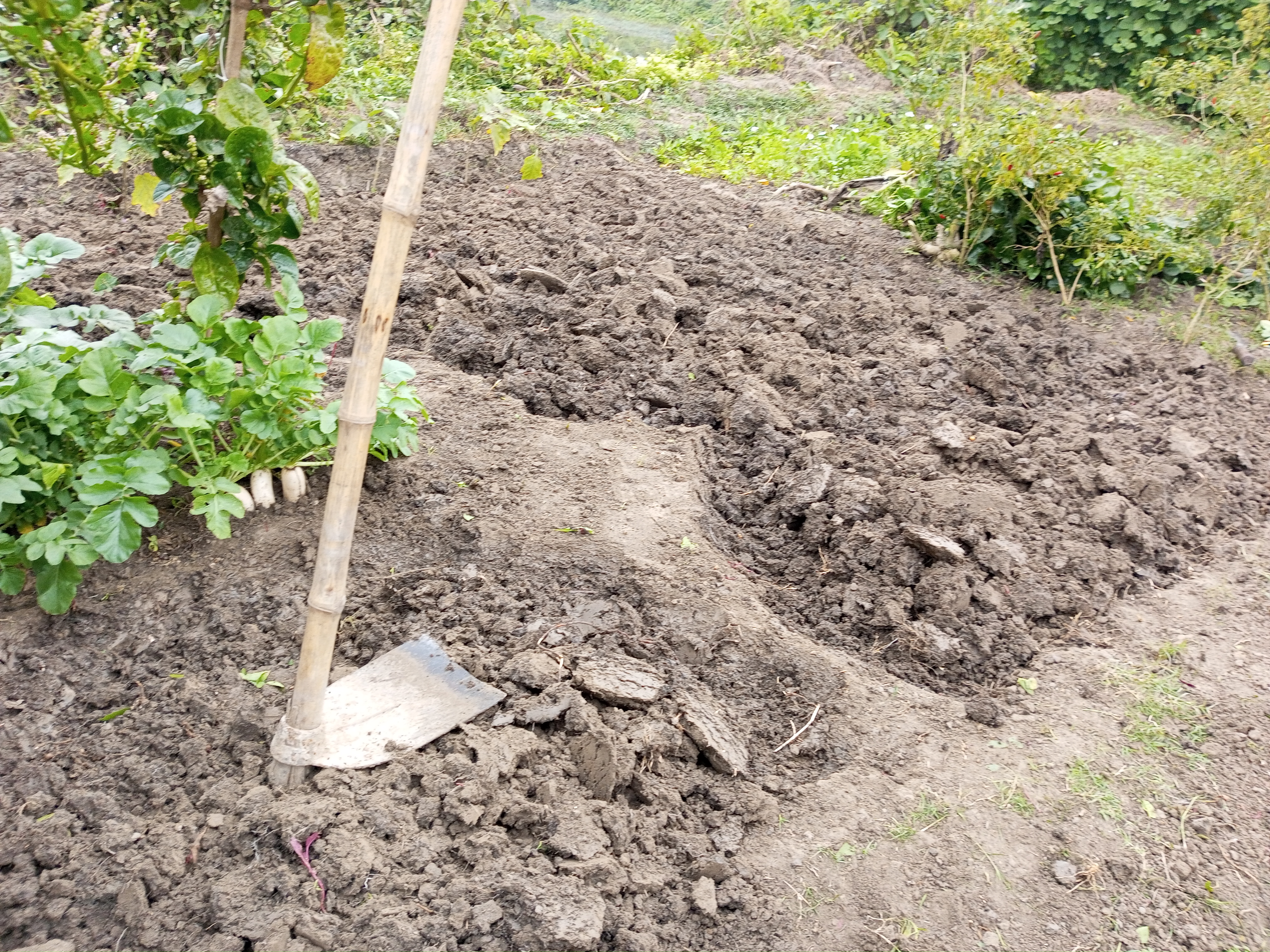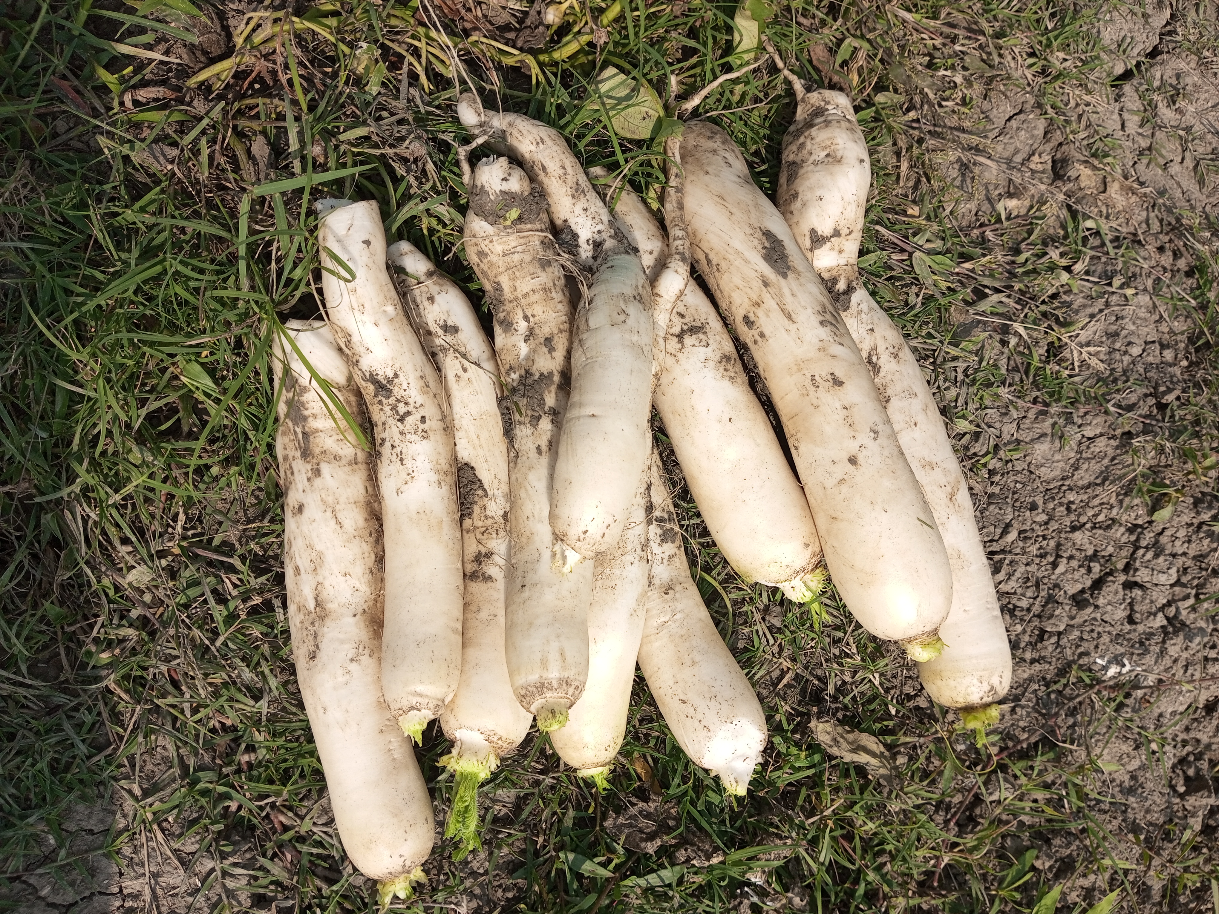 আমরা যদি নির্দিষ্ট একটি জায়গা প্রতিনিয়ত ব্যবহার করে থাকি এমন শাকসবজি উৎপাদনের জন্য তাহলে অনেক উৎপাদন করতে পারে। আমি পুকুর পাড়ের এই জায়গা বাগানে পরিণত করেছি চারই পাশে তার জাল দিয়ে ঘিরে। মাঝেমধ্যে যখন সুযোগ পাই জায়গা গুলোতে শাকসবজি উৎপাদন করার চেষ্টা করে থাকি। তাই সারা বছর ধরে আমার সবজি বাগানের মধ্যে বিভিন্ন রকমের শাকসবজি থেকে থাকে। এখানে দেখতে পারছেন মোলা উত্তোলন করে পুনরায় সেই জায়গাটা কাজে লাগানোর জন্য কোদাল দিয়ে কোপানো কার্যক্রম করেছিলাম। আমি আর আমার বন্ধু গত বছর অনেক শাকসবজি উৎপাদন করেছিলাম এখানে। প্রথম মুলা চাষের পর দ্বিতীয়বার মুলা চাষ করার জন্য জায়গাটা প্রস্তুত করতে হবে তাই মুলা উত্তোলন করে ফেলেছিলাম। আমি সবসময় চেষ্টা করি হাইব্রিড মুলাগুলো চাষ করার জন্য। এ মুলাগুলো অনেক বড় হয়ে থাকে এবং কয়েকটাতেই তরকারি হয়ে যায়। আমার নিজের কাছে আশ্চর্য লাগে এই সমস্ত বড় বড় মূলা আমার নিজের হাতে উৎপাদন করা হয়। এ ছাড়াও তো অন্যান্য শাকসবজি সব সময় থাকে সে সমস্ত বিষয় নিয়ে না হয় আলাদা পোস্ট আপনাদের মাঝে অন্য সময় শেয়ার করব, তবে আজকের এই পোস্টটা আপনাদের উৎসাহ প্রদান করার জন্যই আমি শেয়ার করলাম। দেশে শাকসবজির ব্যাপক দাম আসুন আমরা চেষ্টা করে থাকি নিজেদের পরিত্যক্ত জায়গাগুলো অথবা বাগানবাড়ির ছাদ যে কোন জায়গাতে যেভাবে পারা যায় শাকসবজি উৎপাদন করার চেষ্টা করি। আমি মনে করি নিজের ব্যস্ততার মধ্যে এ সমস্ত কৃষি কাজ করলে মন ভালো থাকে এবং টাটকা শাকসবজি খাওয়ার সুযোগ হয়।