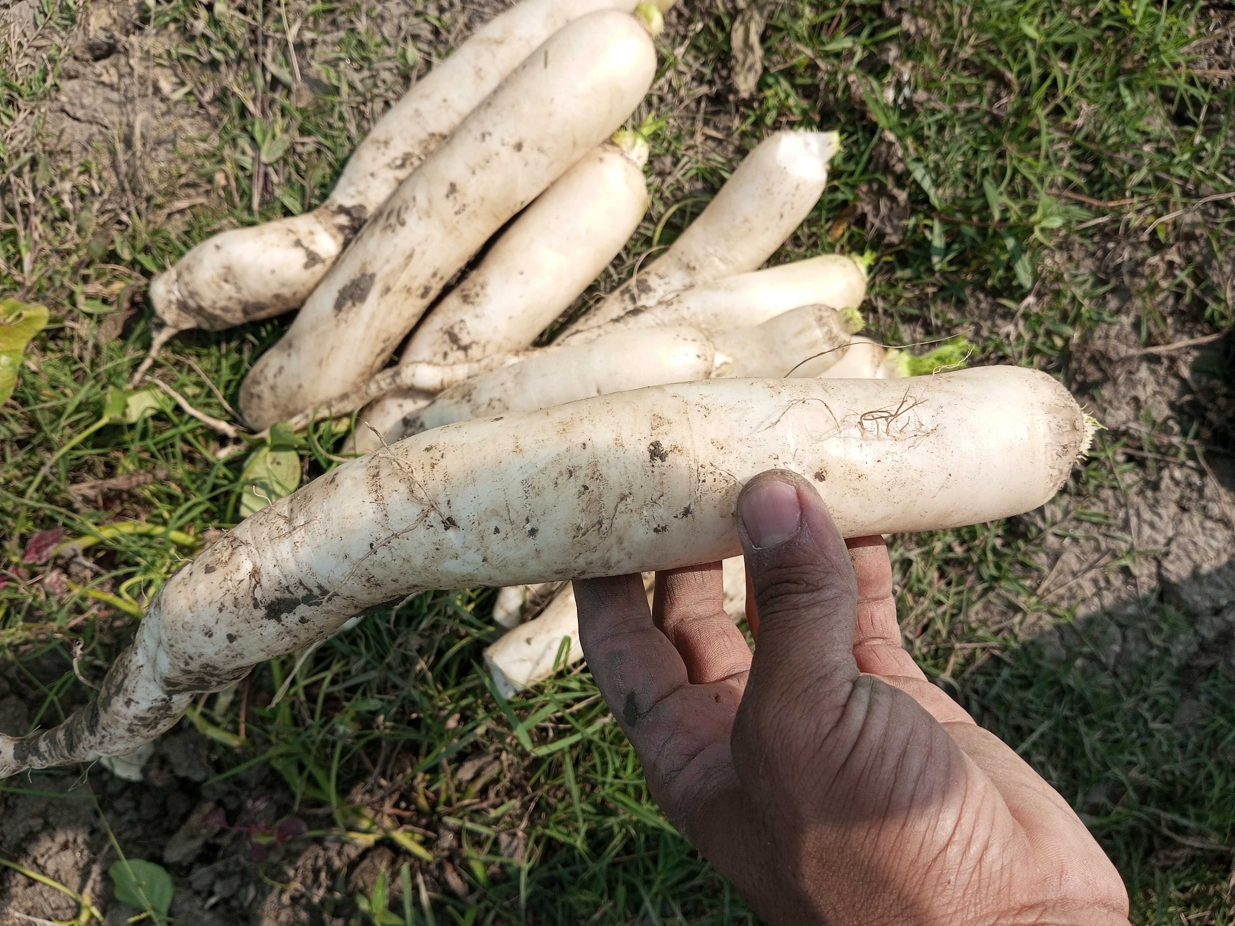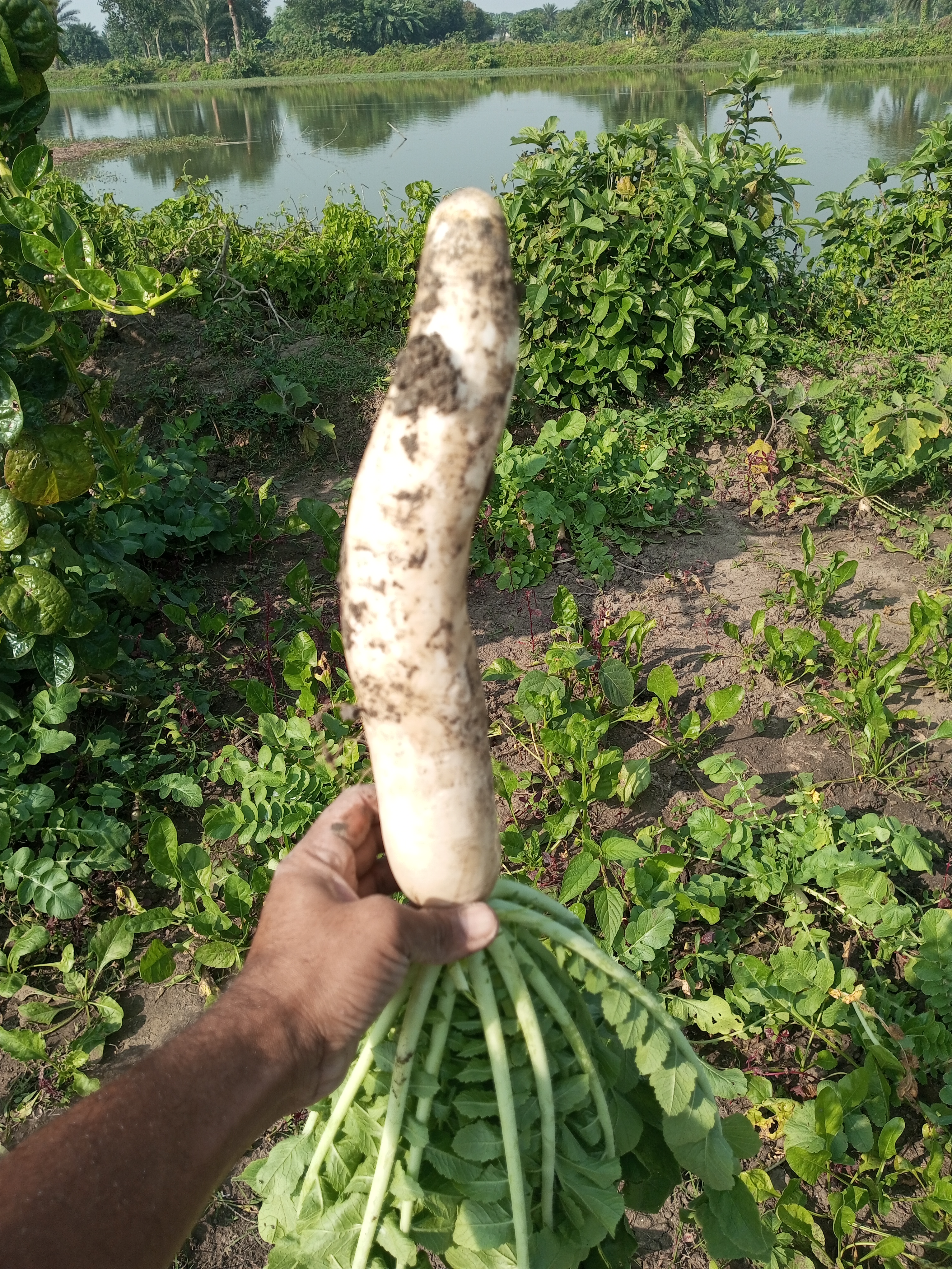আমি ছোট থেকে শাকসবজি উৎপাদন করতে খুবই পছন্দ করি। কবে কখন যে এই শাকসবজি উৎপাদনের ক্ষেত্রে আসক্ত হয়েছি তা নিজেরে মনে নাই। তবে সেই আগের মত এখনো টাটকা শাকসবজি উৎপাদন করে খেতে পছন্দ করি বলেই প্রতি বছর কম বেশি শাকসবজি উৎপাদন করা হয়। আজকে কি পোস্ট করব এমন চিন্তা নিয়ে যখন মোবাইলটা হাতে ধরলাম। হঠাৎ মোবাইলে খোঁজাখুঁজি করতে গিয়ে শাকসবজি বিষয়ের ফোল্ডারে লক্ষ্য করে দেখলাম বেশ বিভিন্ন রকমের শাকসবজি নিয়ে ফটো ধারণ করা রয়েছে। তাই মূল উত্তোলন করার মুহূর্তের ফটোগুলো আপনাদের মাঝে প্রকাশ করার চেষ্টা করলাম যেন আমার এই পোষ্টের মধ্য দিয়ে আপনারা উৎসাহিত হতে পারেন। আমরা জানি বর্তমান বাংলাদেশের শাক সবজির প্রচুর পরিমাণ দাম। শীতের সময় বিভিন্ন রকমের শাকসবজি উঠে, শাকসবজির দাম কমে। কিন্তু এবার যেন শাকসবজির দাম কমছে না। গত শুক্রবার বামুন্দি বাজারে বাজার করতে গিয়ে মুলার দাম জিজ্ঞেস করলাম ছোট ছোট মুলার দাম বলল ৪০ টাকা একটু দেখার মত মুলার দাম বলল ৬০ টাকার কেজি। তখন আমি আশ্চর্য হলাম! মুরারি এত দাম? এ দেখি আমি এক মাস আগে আমার পুকুর পাড়ে মুলা বীজ বুনেছি গাছ বড় হয়ে গেছে। ঐদিনও উপস্থিত হয়েছিলাম মুলা পালন লাল শাক সহ বেশ কিছু শাকসবজির বীজ কেনার জন্য।