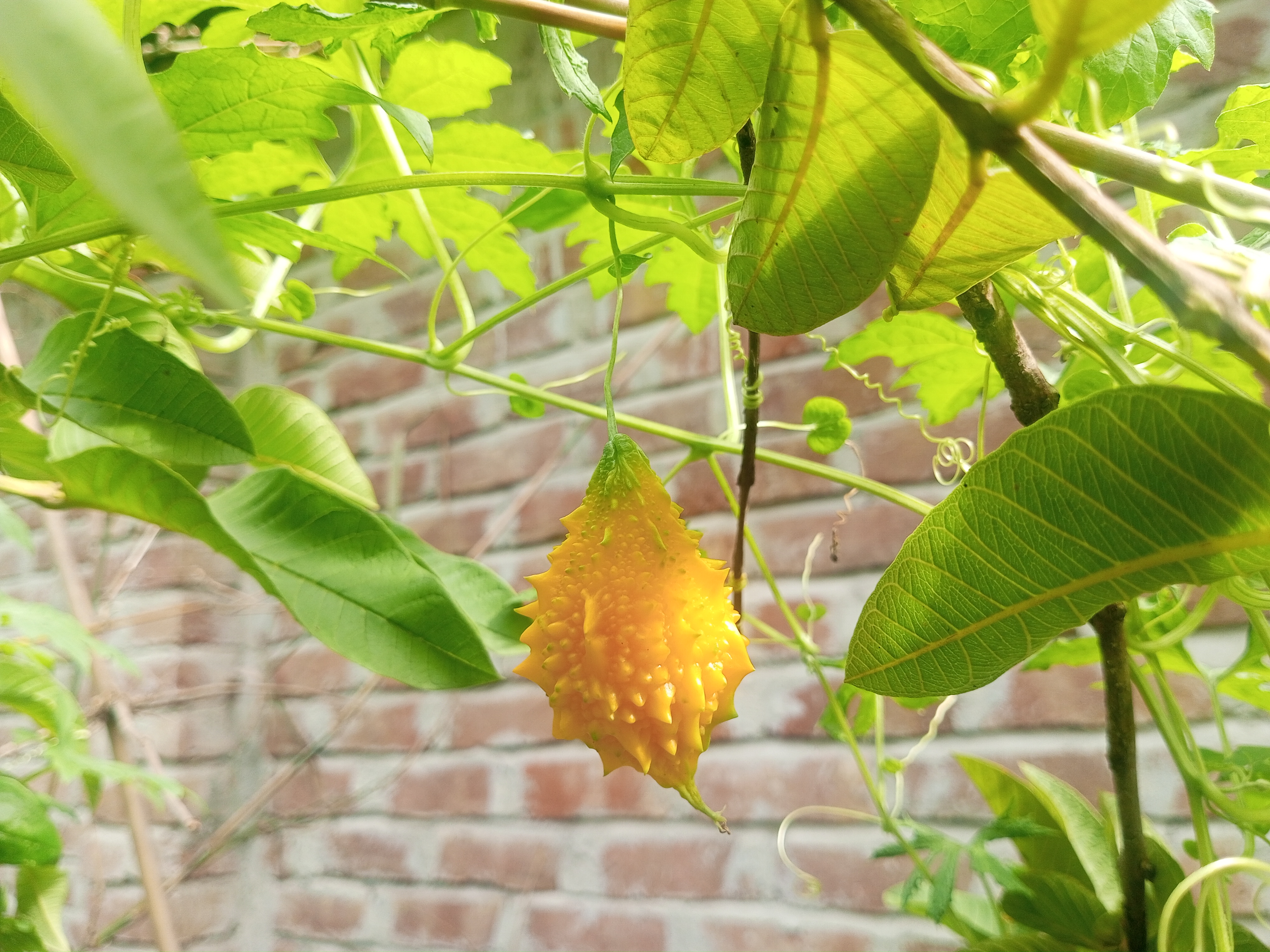 করল্লা তুললেই যে হবে তা তো নয় একটি পাত্র প্রয়োজন। যার মধ্যে করোলা গুলো ছড়িয়ে ছড়িয়ে রাখতে পারবো। তাই আম্মুকে বললাম একটি পাত্র এনে দাও যার মধ্যে করলা গুলো রাখতে পারব। আম্মু ঘরের মধ্য থেকে করলা তোলার জন্য একটি পাত্র আনতে গেল আর এরই ফাকে আমি সামনে থাকা পাকা করলার ফটোগ্রাফি করার চেষ্টা করলাম। বেশ ভালো লাগছিল সেই দিনের কথা স্মরণ করতে,যেদিন এই গাছের জন্য অনেক কিছুটা হলেই যত্ন নিয়েছিলাম তাই তো আজকে বৃদ্ধি পাওয়ার সুযোগ পেয়ে গেছে এবং ফল ধরেছে এমনকি ফল ধরে গাছের মাথায় পেকে রয়েছে।