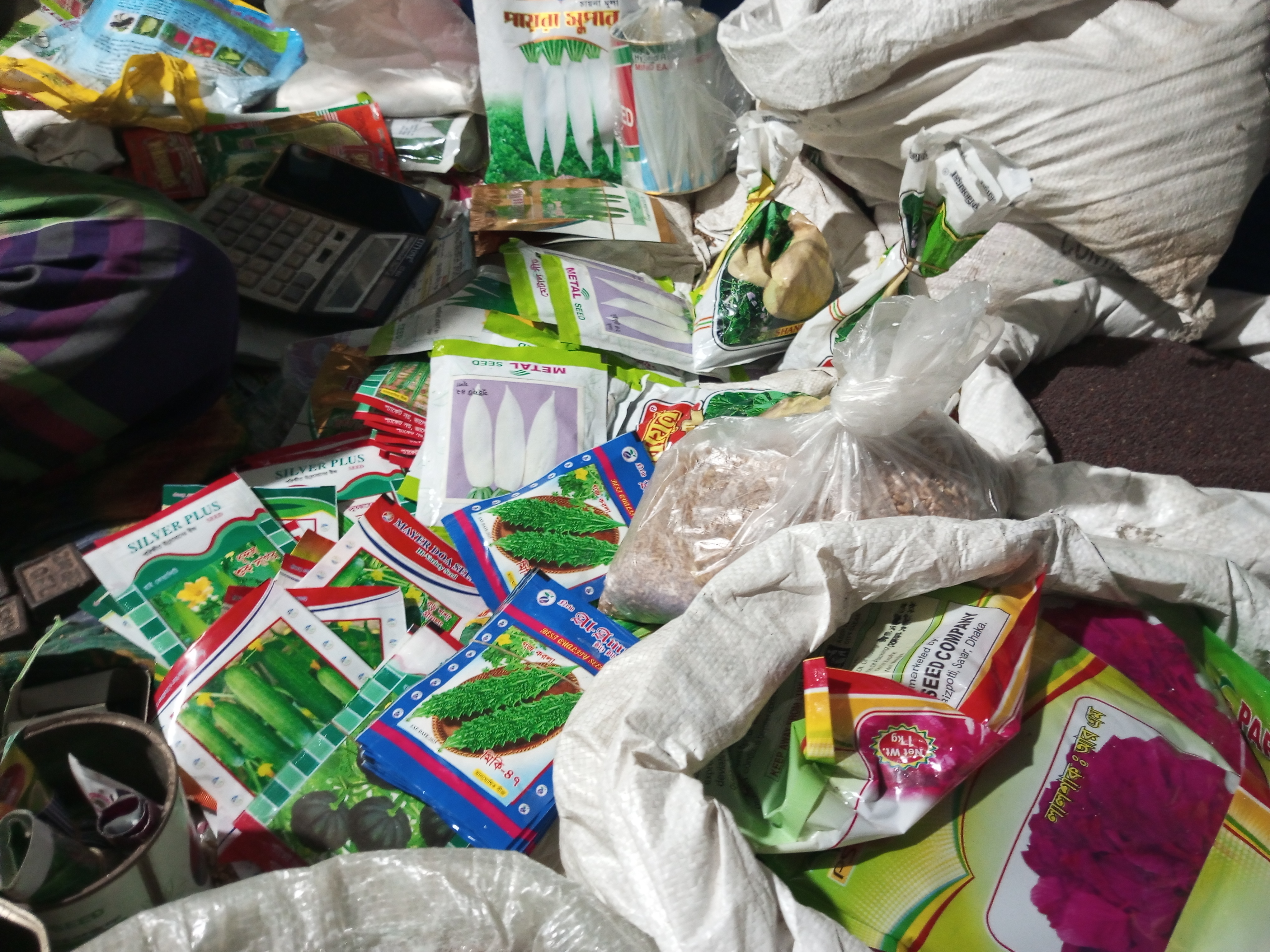 কিছুটা পথ হাঁটতে হাঁটতে বীজ ভান্ডারের দিকে পৌঁছে গেলাম। বীজ ভান্ডারে উপস্থিত হয়ে দেখলাম সেখানে তেমন মানুষের ভিড় নেই। কারণ প্রচন্ড বৃষ্টির কারণে মাগরিব হয়ে আসছে আর লোকজন সবজি বাজারের দিকে বেশি ছিল। জয় হোক বেশি একটা ঘিরে না থাকায় দ্রুত উপস্থিত হয়ে পরিচিত দোকানে উঠলাম। এরপর বীজ ভান্ডারের সে আঙ্কেলকে বললাম আঙ্কেল এমন শীতকালীন কিছু শাক সবজির বীজ লাগবে আমার। আঙ্কেল আমার কথা শুনে মুলা লাল শাক পালং শাক গাজরের বীজ বের করে দিলেন। যেহেতু আমার জায়গা তেমন প্রস্তুত নেই আর এখন তো বেশ বৃষ্টি হচ্ছে তাই বেশি বীজের প্রয়োজন মনে করলাম না। শুধুমাত্র আংকেল কে বললাম সবকিছু বীজ অল্প অল্প করে দিন। বর্ষার সময় বীজ বপন করলে হয়তো নষ্ট হয়ে যাওয়ার সম্ভাবনা রয়েছে তাই আগে থেকেই শুরু করি একটু একটু করে।