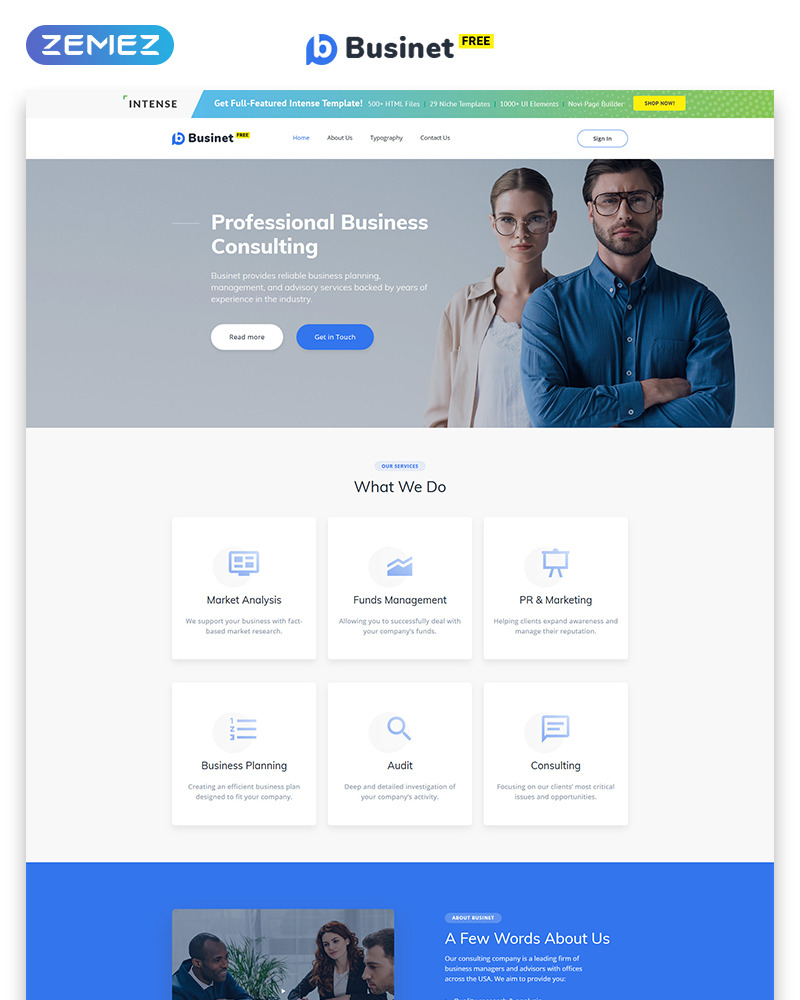 Developed specially for advisory services Businet includes an attractive design and valid code. And most importantly it is free. 🕯