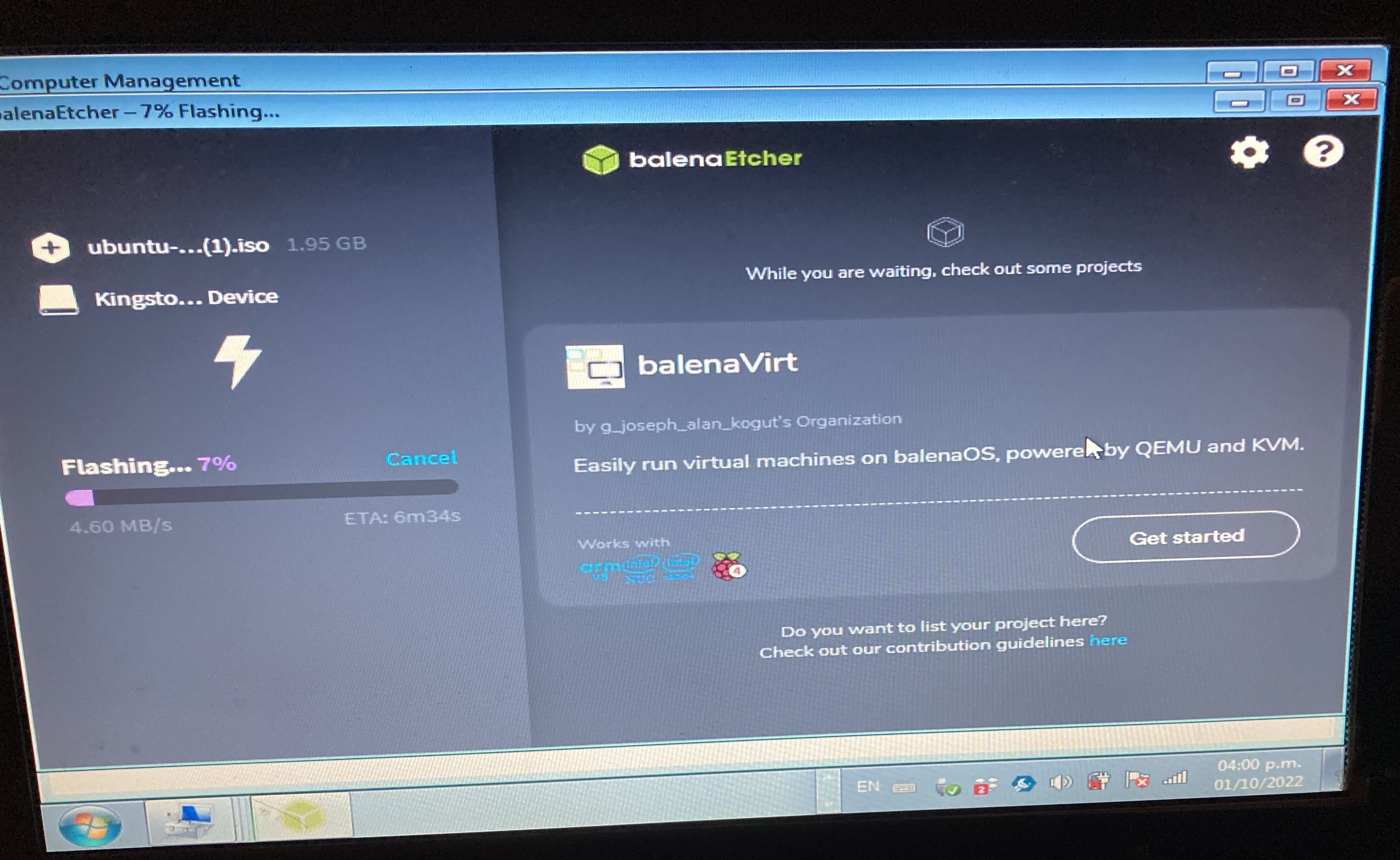 Y al parecer eso del Pen drive fue lo que le faltó hacer a mi amigo. Siguiendo un video de Nate Gentile en Youtube logré flashear (grabar) ubuntu en el pen drive usando balenaetcher.