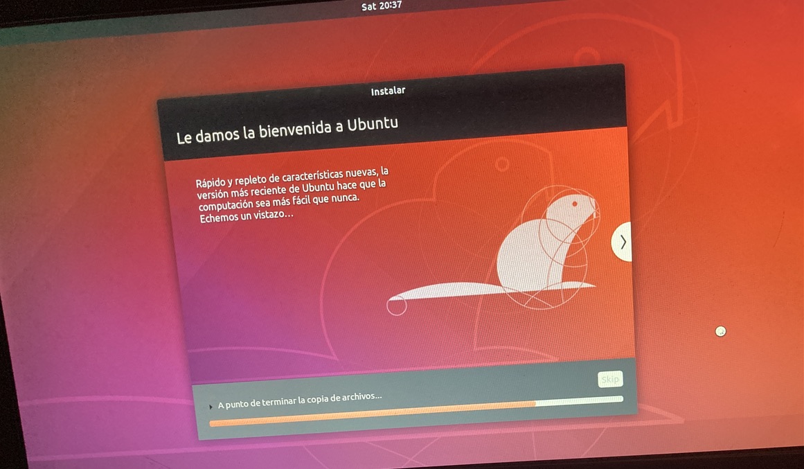Fue una sensación agradable ir viendo que se va instalando ubuntu, y ver que la vieja máquina olvidada y empolvada aún tiene para rato.
