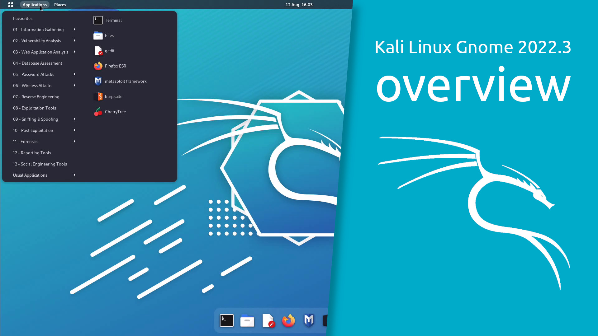 In this video, I am going to show an overview of Kali Linux Gnome 2022.3 and some of the applications pre-installed.