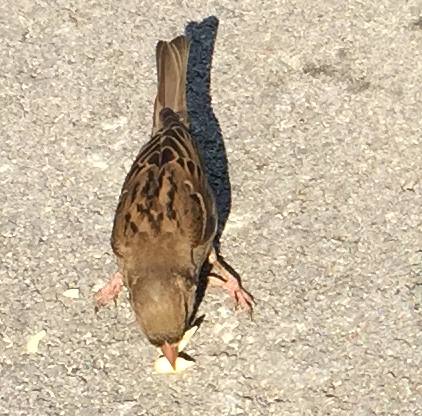 Снимките, които споделям тук, направих онзи ден в Борисовата градина. С две от внучките ми седнахме на една пейка. Те люпеха слънчогледови семки. Едно врабченце се завъртя около нас. Подхвърлиха му няколко семки. Мислех си – то не може да ги яде, но бях изненадан – врабчето ги люпеше с клюнката си и когато подготвеше толкова ядки, колкото може да вземе – отлиташе нанякъде с пълна клюнка. След минута две се завръщаше и така отново докато вземе колкото се събере в клюкната му. Явно носеше да храни своето поколение. И аз и моите внучки бяхме впечатлени от старанието на това прекрасно птиче.