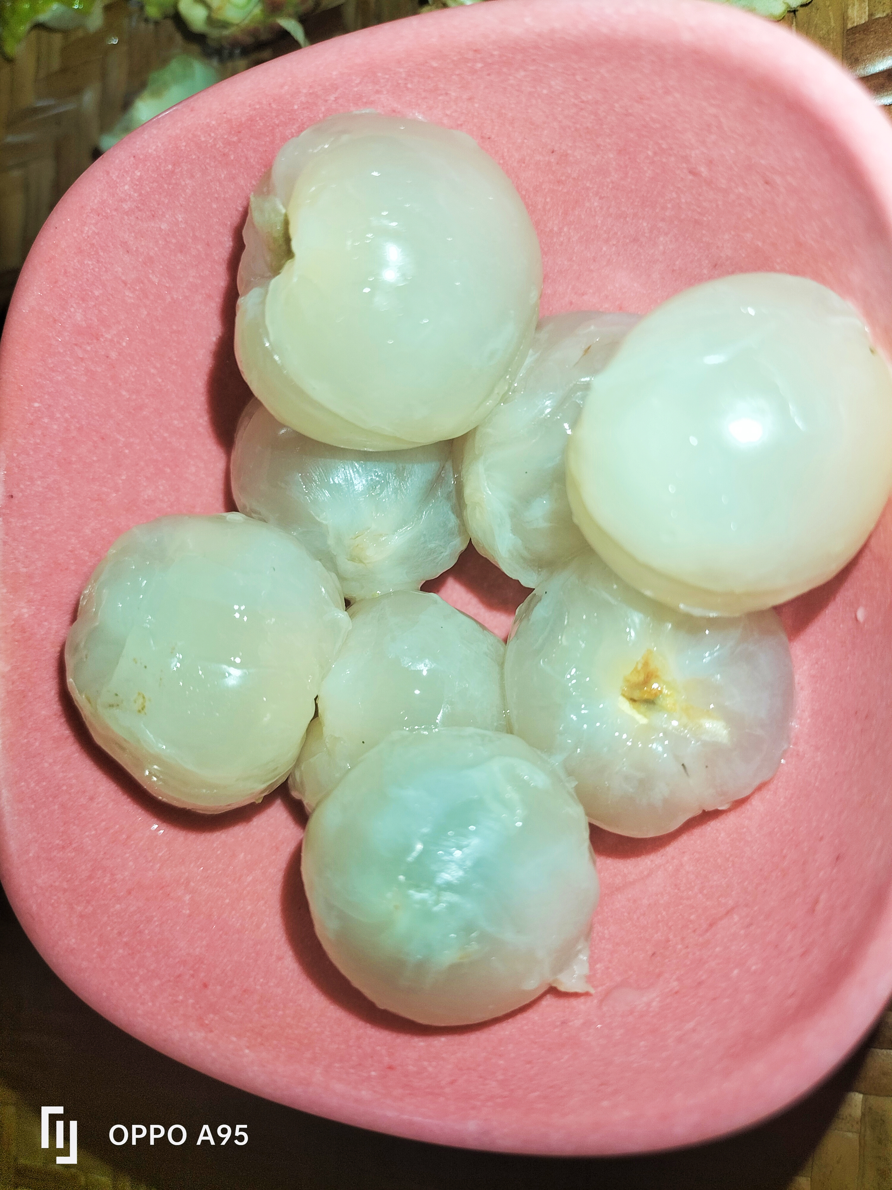 এখন লিচু গুলো পরিপক্ব হয়েছে। টসটসে রসালো লিচুতে পরিনত হয়েছে ছোটো ছোট লিচু গুলো।