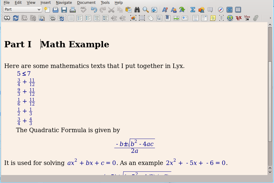 What is LyX? LyX is a different type of word processor. You can print, save as XHTML and PDF. Word wrap always keeps the horizontal scrollbars away, so you can use it at any Window size. It's missing things that it doesn't need. There is no need for Zoom. Whereas, in most word processors, you have control of how much white space goes between each word, in LyX you can only put one space between each word! As the rules of the paragraphs are already set, all indentation is done for you!