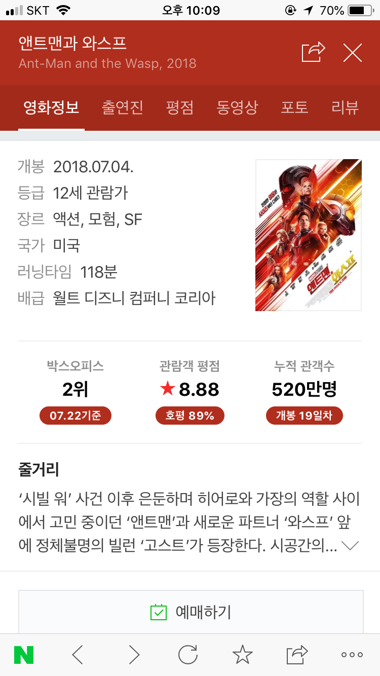 일단 이 영화는 7월4일개봉하여 개봉19일기준 누적관객수 520만명, 박스오피스 2위를 달리며 승승장구를 하고있는 작품인데요!!👍👍 영화를 시작하자마자 역시 마블이라는 말을 하게될정도로 깔끔한 구도와 재미있는 내용전개가 인상깊었습니다!이번영화는 지금까지의 마블의 히어로물 영화들보다는 가족들끼리 볼수있는 내용을 담고있다고 생각합니다👨👩👧👦