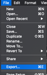 이제 png 로 저장하여 이용하기 위해서 File > Export... 혹은 단축키 Command + E 으로 png 로 저장이 가능합니다. :D