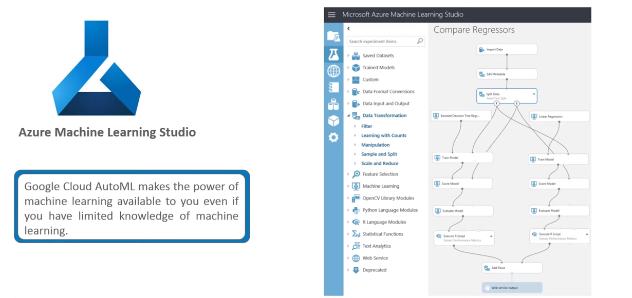 Now we have the azure machine learning studio as well now Microsoft Azure machine learning studio is a collaborative drag-and-drop machine learning tool. You can use to build test and deploy predictive analytics solution