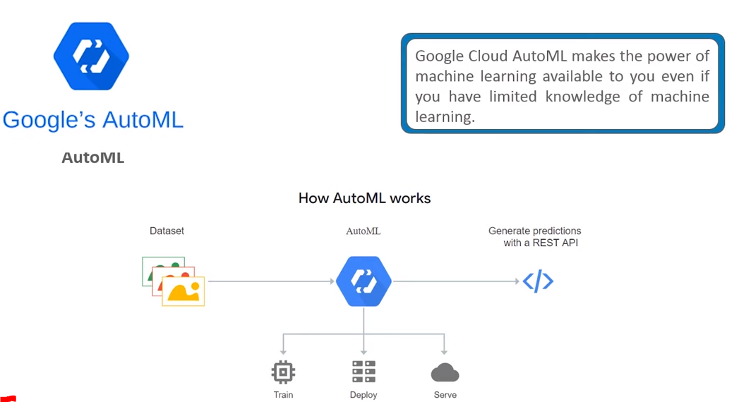 We have Auto ml vision which is used for images We have the auto ml video intelligence which is specifically designed for the video we have the auto ml natural language which is used to structure and get the meaning of the text we have the auto ml translation which dynamically detects and translates between different languages and we have the auto ml tables which means the models on your structured data.