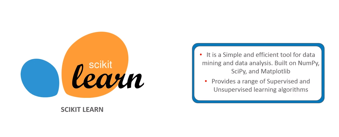 So the first tool which I'm going to talk about is scikit-learn. It's not exactly a tool it's a library but it's the initial steps which one should follow. So scikit-learn is a free software machine learning library for the Python programming language it is a simple and efficient tool for data mining and data analysis it has built or numpy, Syfy and matplotlib. It provides a range of supervised unsupervised machine learning algorithms in Python like classification, regression, clustering, the dimensionality reduction and much more so this is one of the basic steps or the basic building block of any machine learning project or application out there so you need to know scikit-learn this is one of the most important tools.