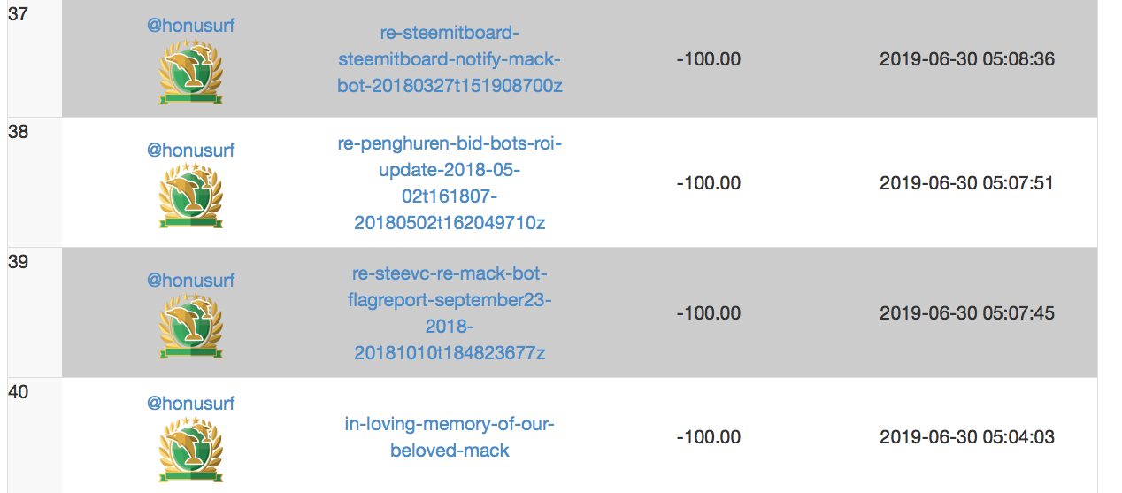 OK. So I looked up @mack-bot's downvote history on me @honusurf and found four false flags against me! Thanks Steemit.com! (Fraud Bitches) Here: https://steemyy.com/who-downvote-you/?id=mack-bot