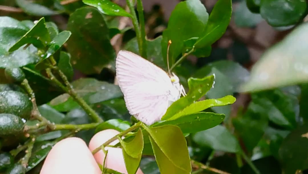 Pude tomar varias fotografías de la mariposa en diferentes ángulos la cual se encontraba reposando en una mata de limón, lo único lamentable fue que nunca abrió sus alas, lo que haría mostrar su belleza en todo su esplendor.