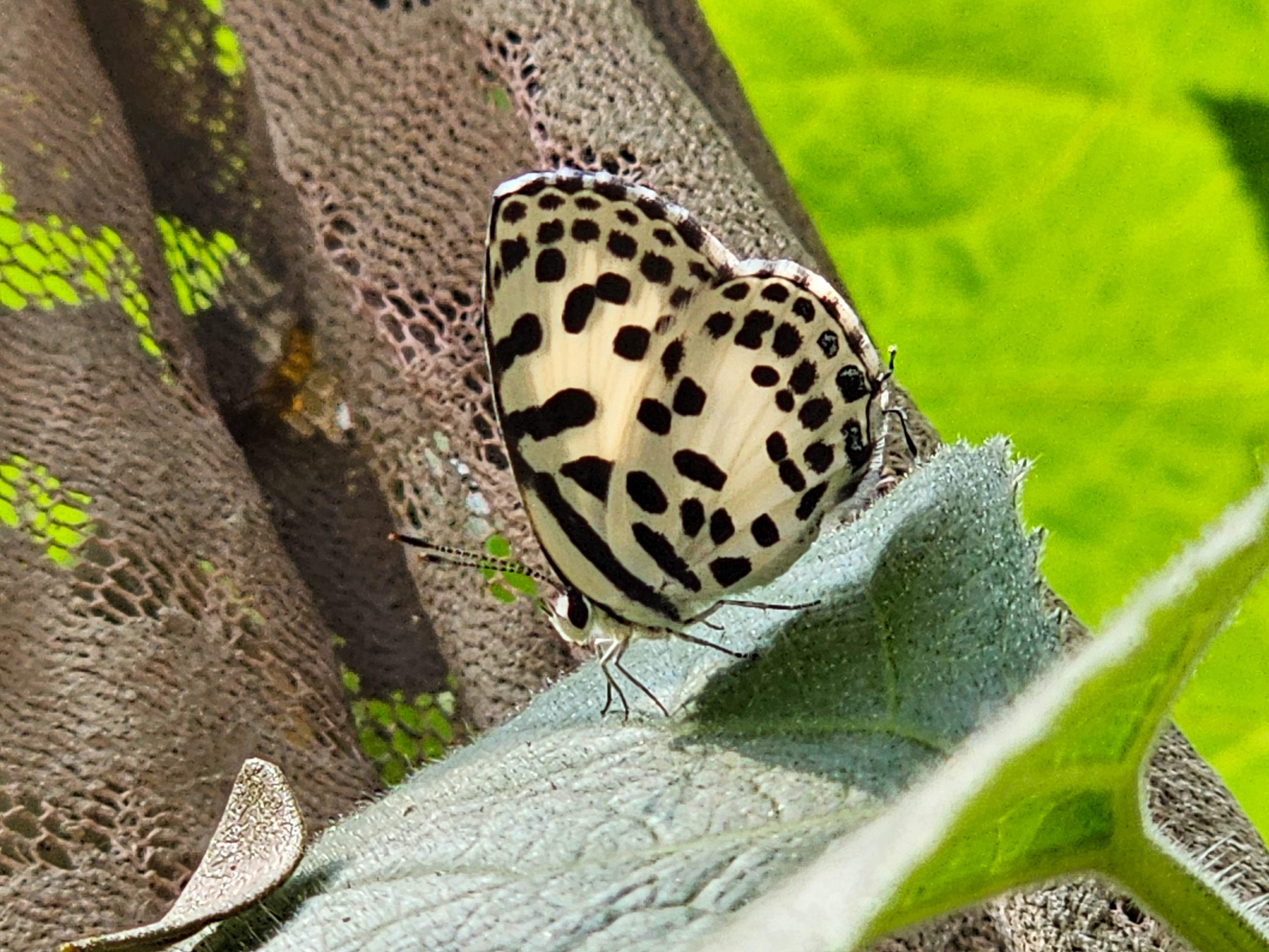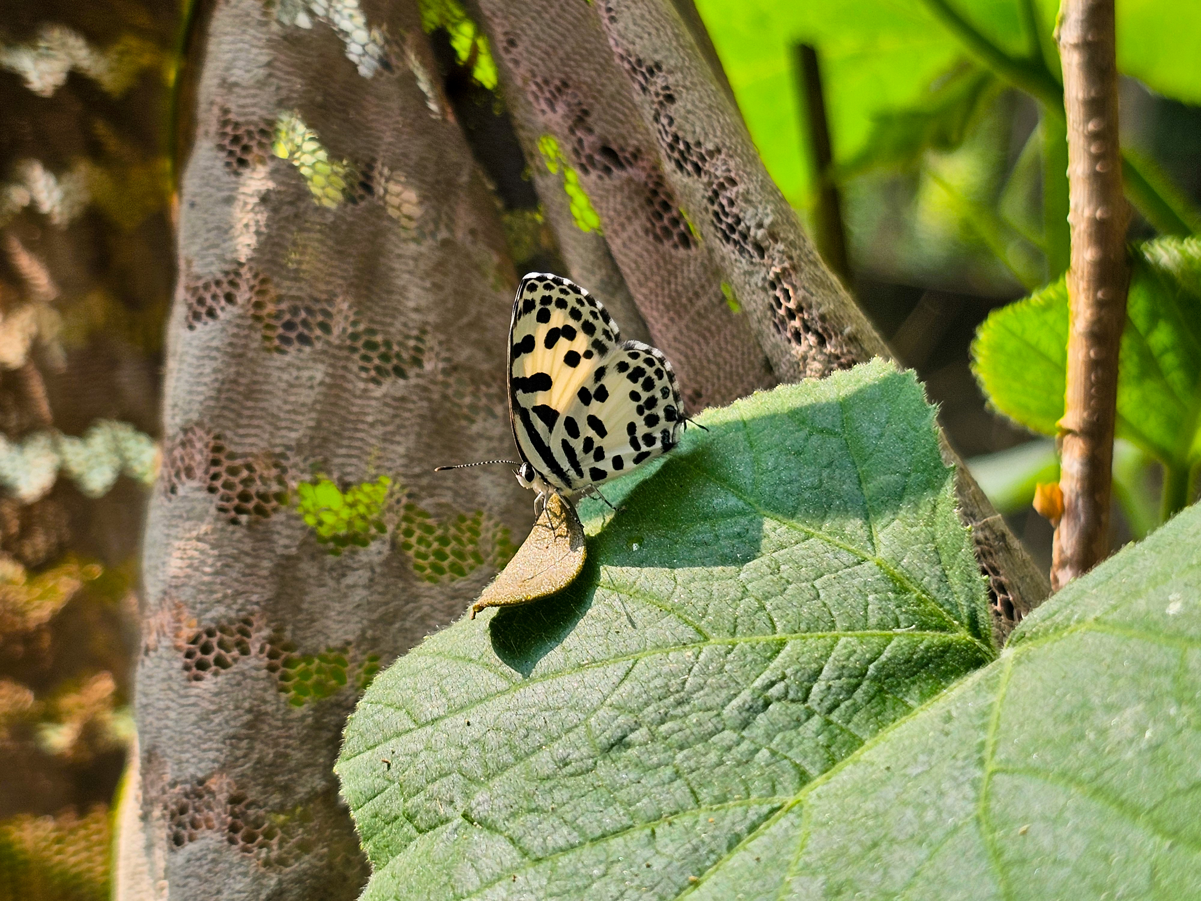 Likewise, the butterfly that I took a video and photograph of was also incredibly beautiful to look at. This beautiful butterfly that I took was of off-white and black color. The black colors looked incredibly beautiful to look at because of the drops. In fact, I was just fascinated by seeing such a beautiful color combination. I was walking around the house to take a video and photograph of the butterfly and see if there were any butterflies anywhere. Then suddenly, I saw a beautiful butterfly sitting among the leaves of our pumpkin tree.