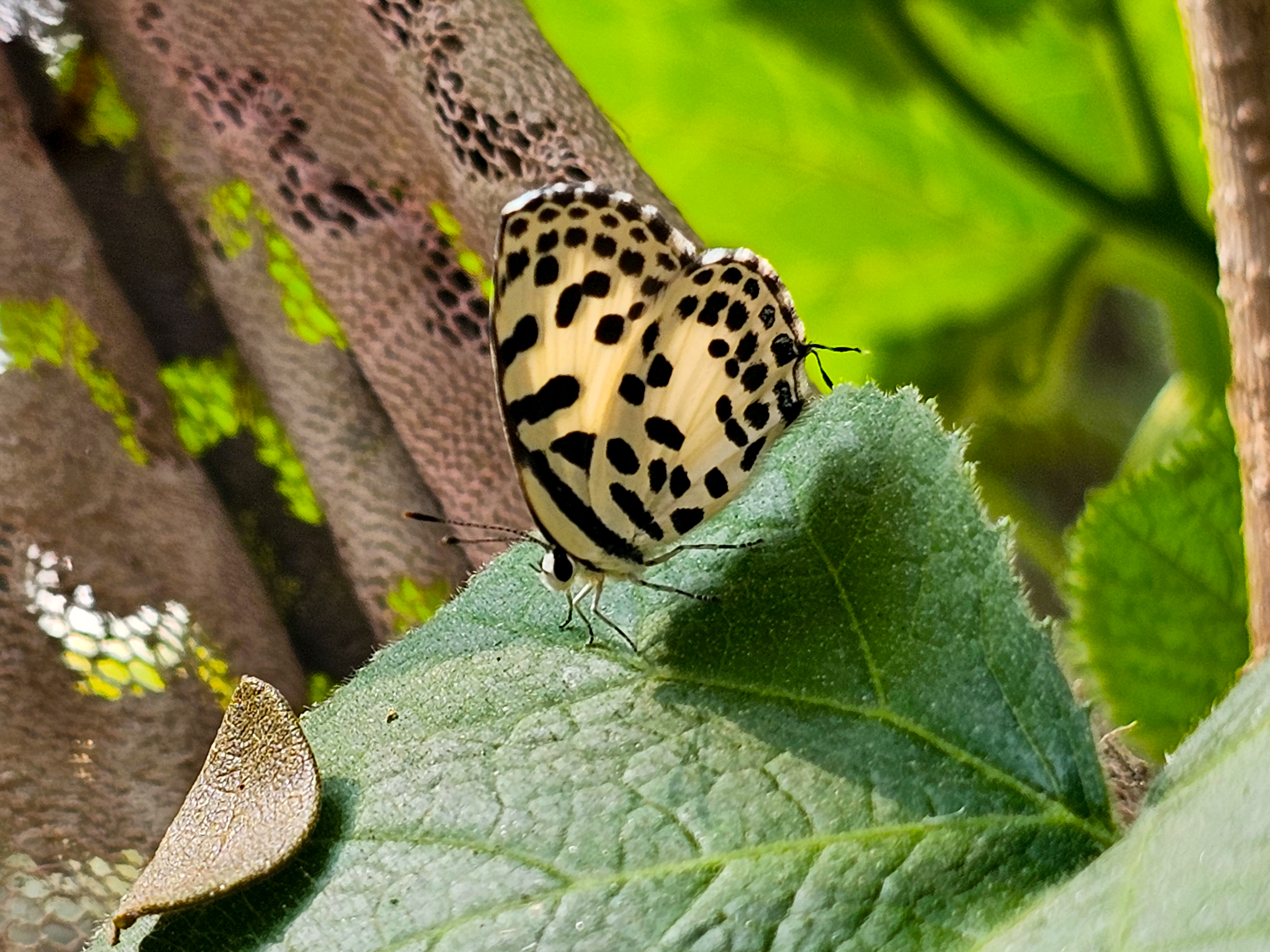 The butterfly was sitting so beautifully on the green leaf, I was just fascinated by it. Then I slowly approached the butterfly. Then I took out my mobile and started taking beautiful photographs. However, I made a beautiful video at the beginning. Then I took some beautiful photographs from here and there. I tried to take photographs and videos of this butterfly with patience and time. But I was just afraid of what would happen if the butterfly flew away? I was a little scared while taking videos and photographs of this butterfly.