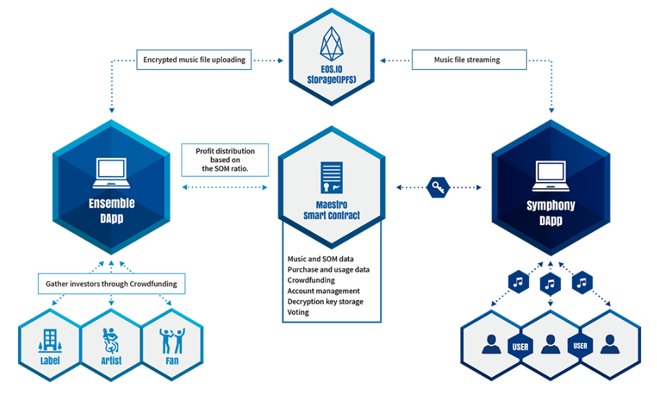 Symphony will serve the global music industry with an honest and efficient distribution system. Creators, on the one hand, will be able to take away the legitimate share of the profits they deserve. On the other hand, consumers will enjoy the same, seamless flow of music at a lower cost. Enhanced by the interplanetary file system (IPFS), which will function in the EOS network, Symphony will deliver high-quality music by simply touching your finger.