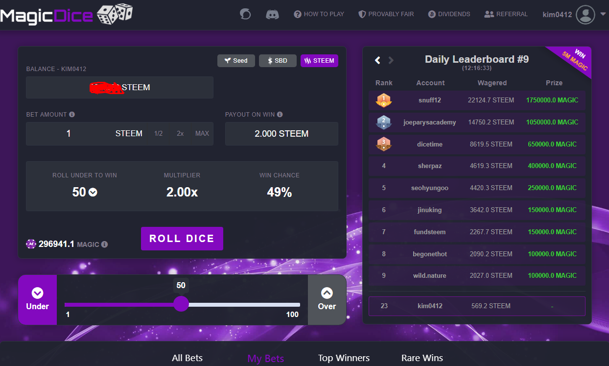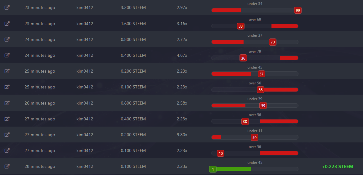 MAGIC-DICEkim0412 (63)in #magicdice • 7 years ago 12번째의 실패후의 나의 베팅은 원위치 어렵게 모은 나의 스팀 한번에 날릴수도 있고 한번에 원금회복될수도 있다. 심장이 약하다면 안하는게 좋을 듯,,,,,,,,,, #kr
