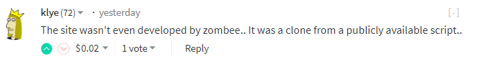 The site wasn't even developed by zombee.. It was a clone from a publicly available script..
