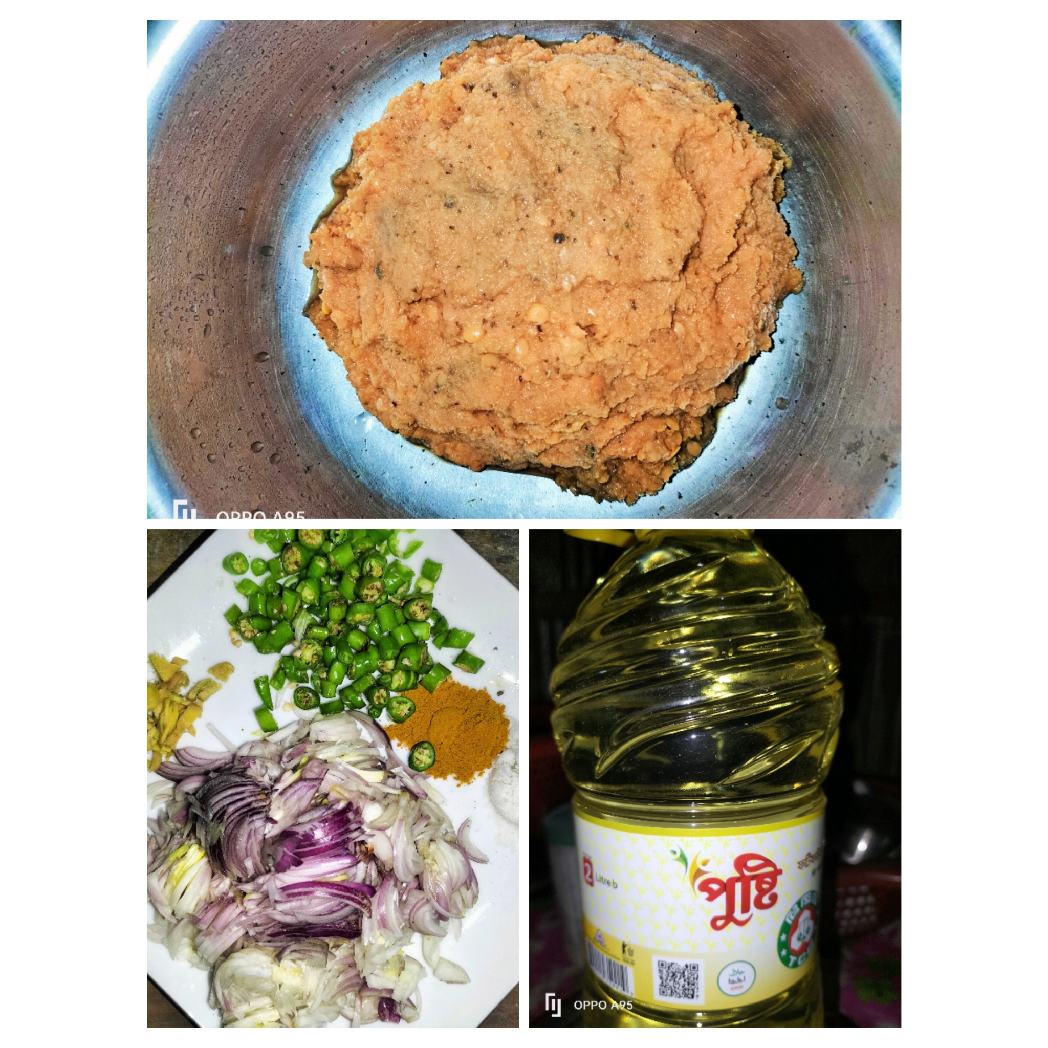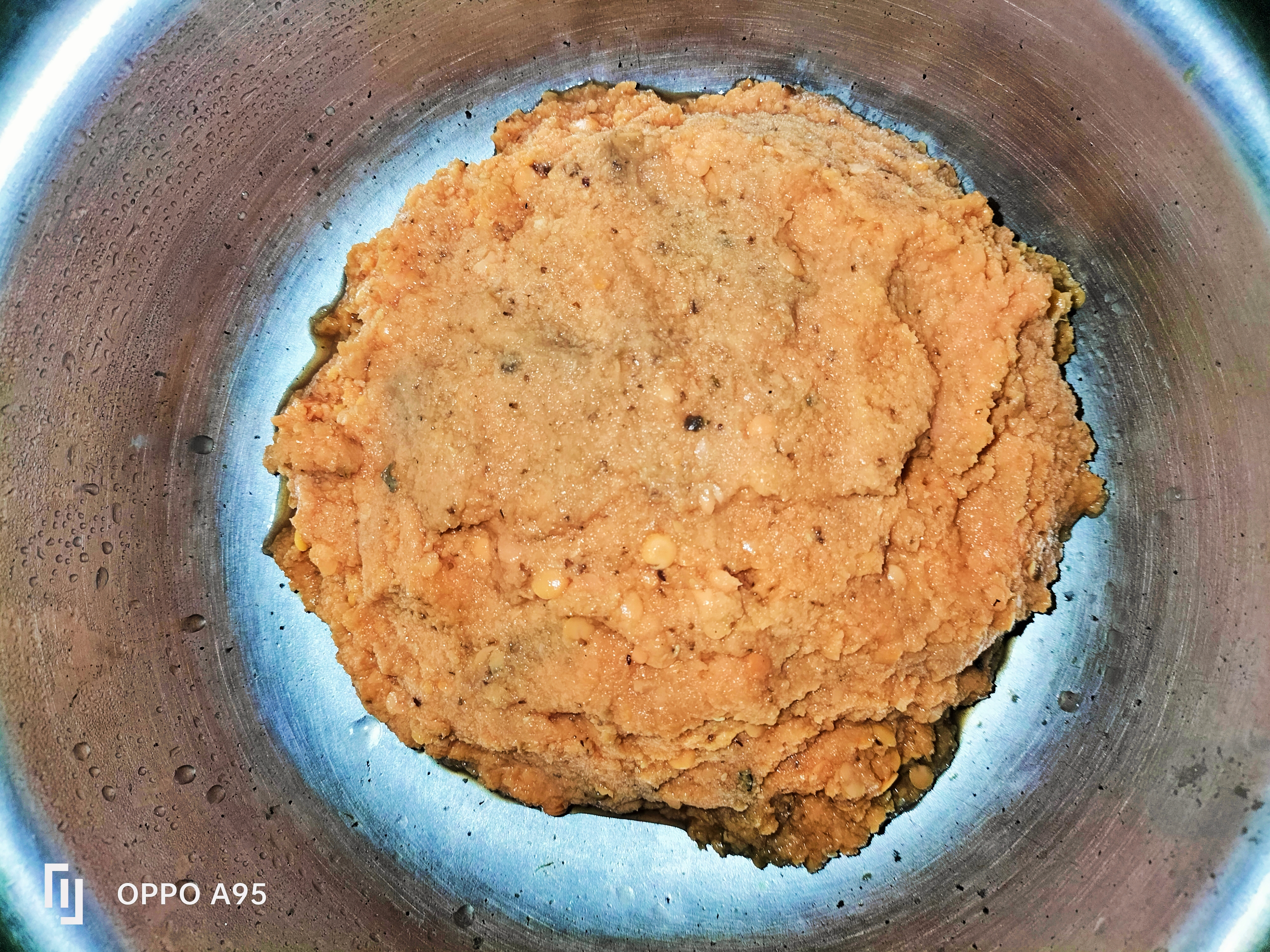 প্রথমে মসুর ডাল ভিজিয়ে রেখে তা বেঁটে নিয়েছি।