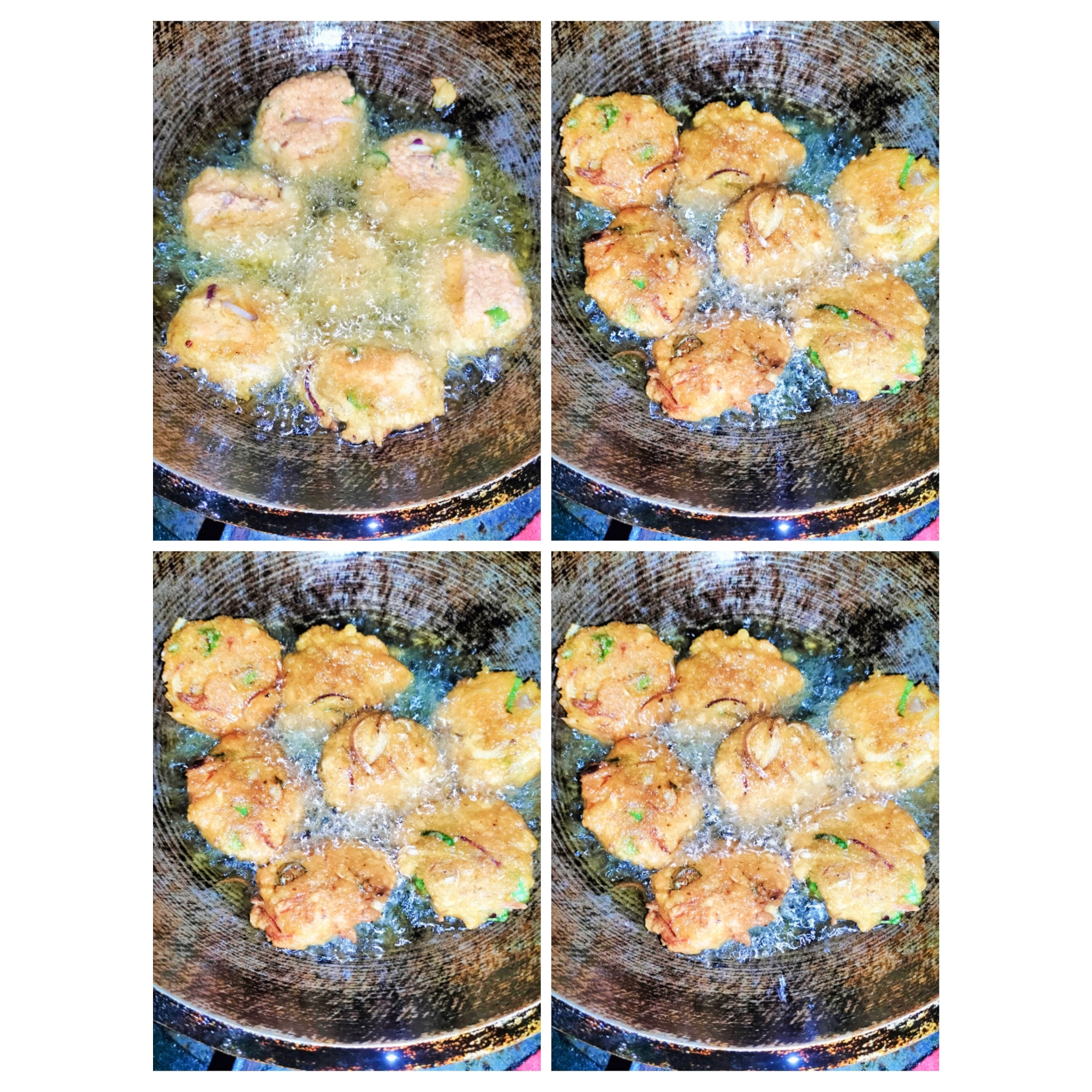 এখন পেঁয়াজু বড়া গুলো এপিঠ ওপিঠ ভালো করে ভেজে নিয়েছি।