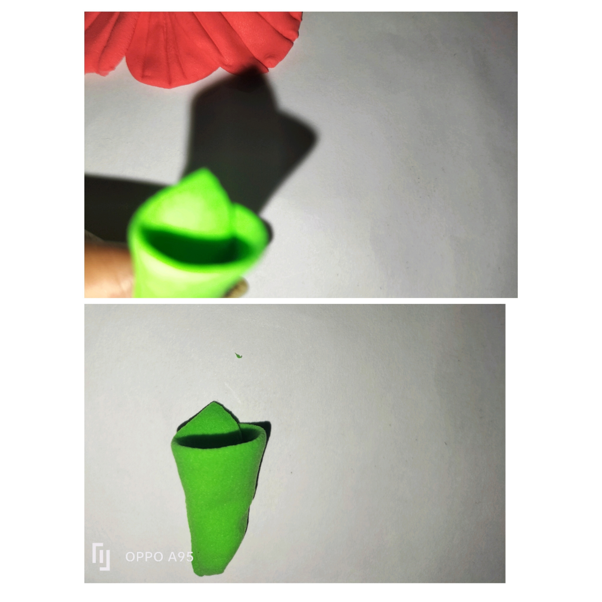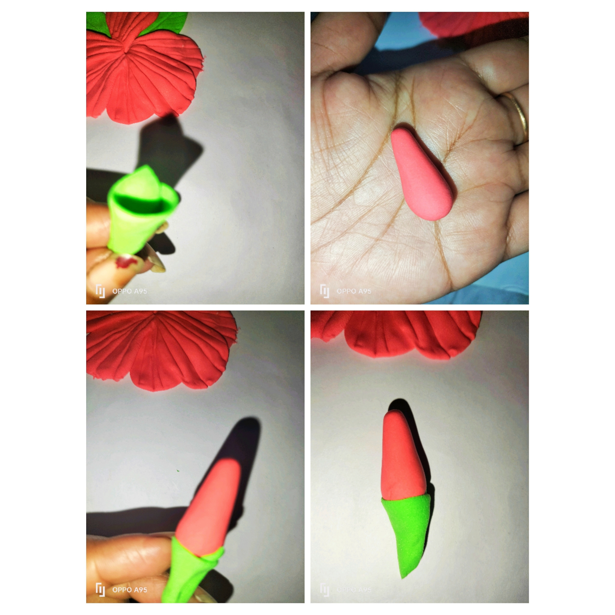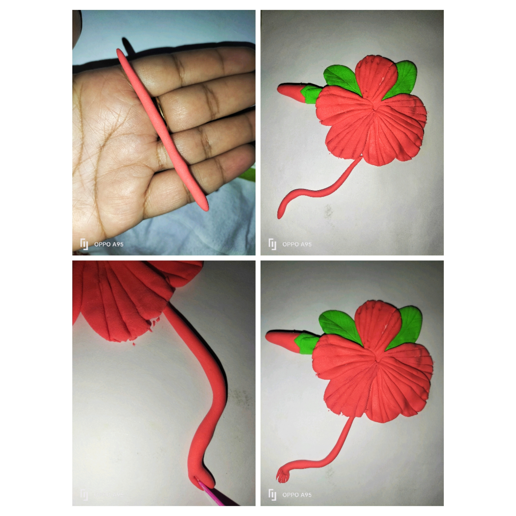 এখন জবা ফুলের কলির বোটা বানিয়েছি সবুজ ক্লে দিয়ে।