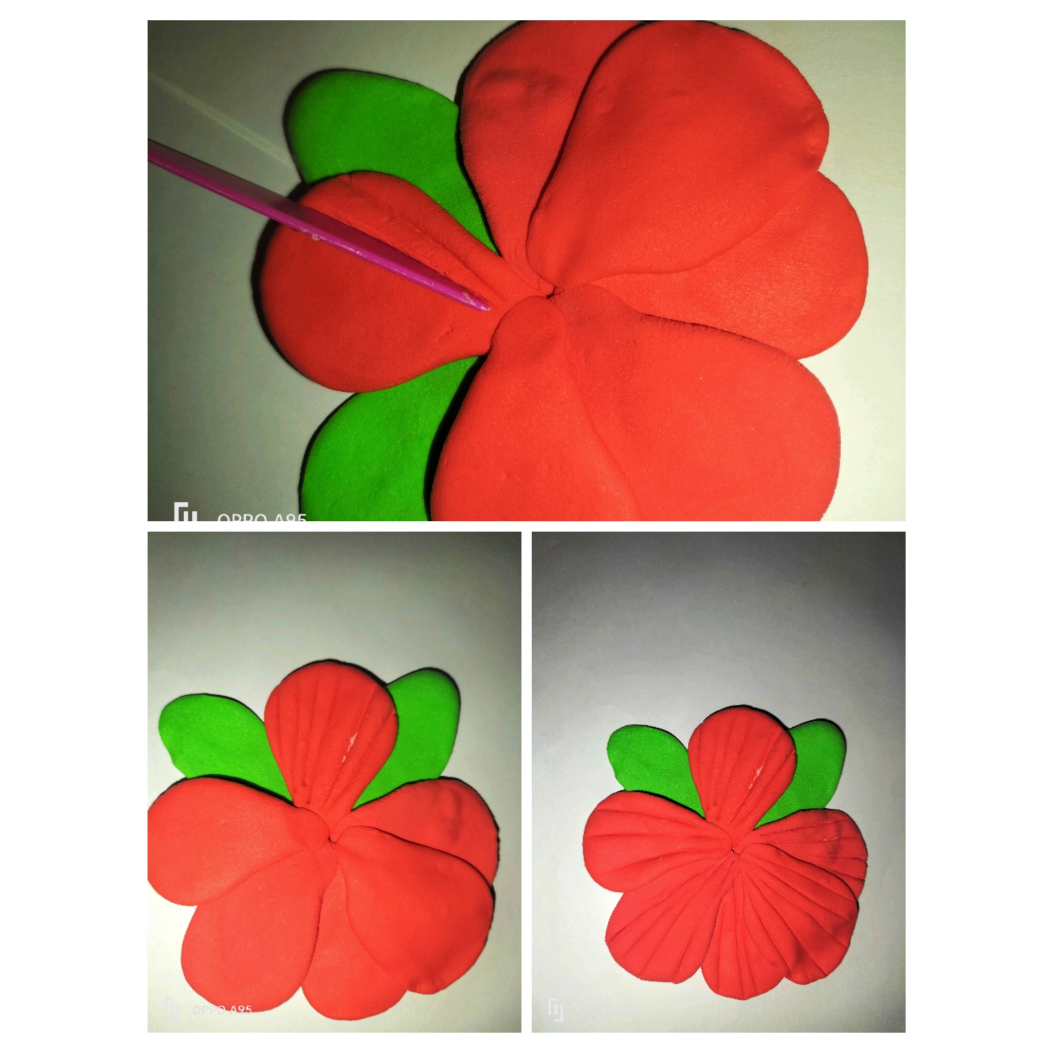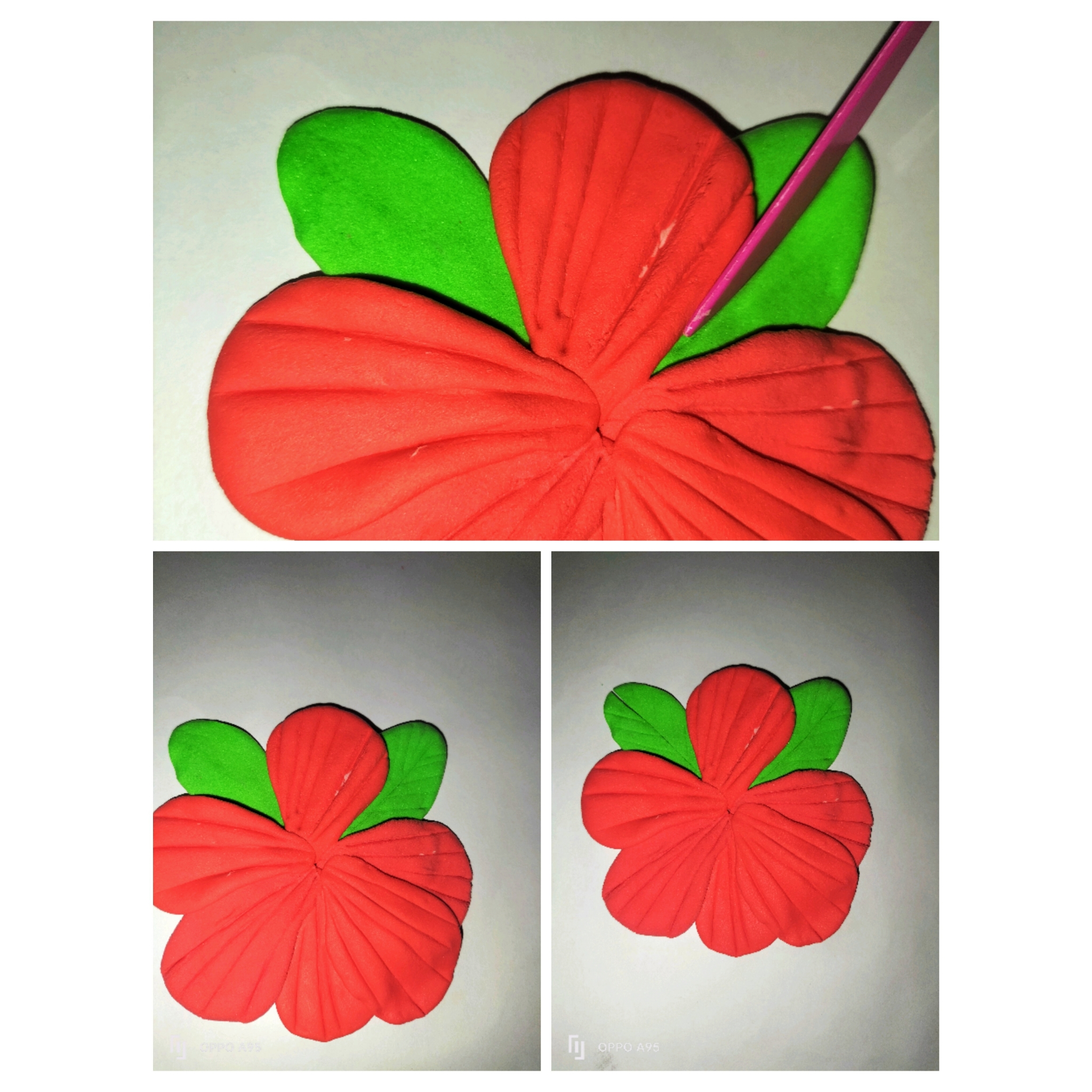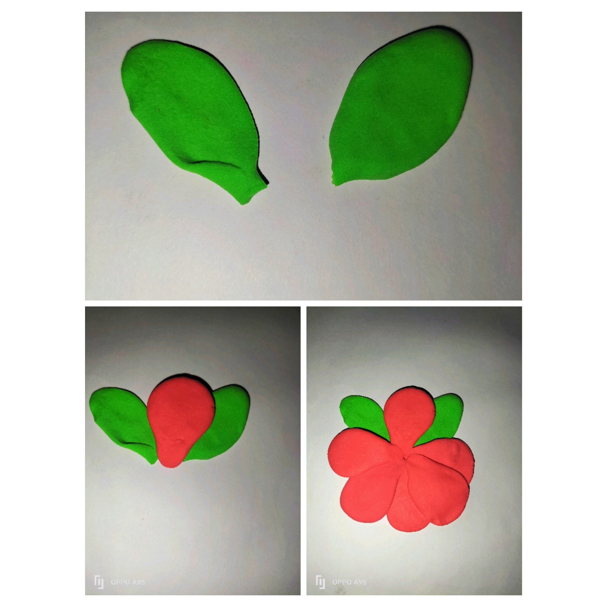 প্রথমে আমি লাল কালারের ক্লে দিয়ে জবা ফুলের পাঁপড়ি বানিছি ছয়টি।