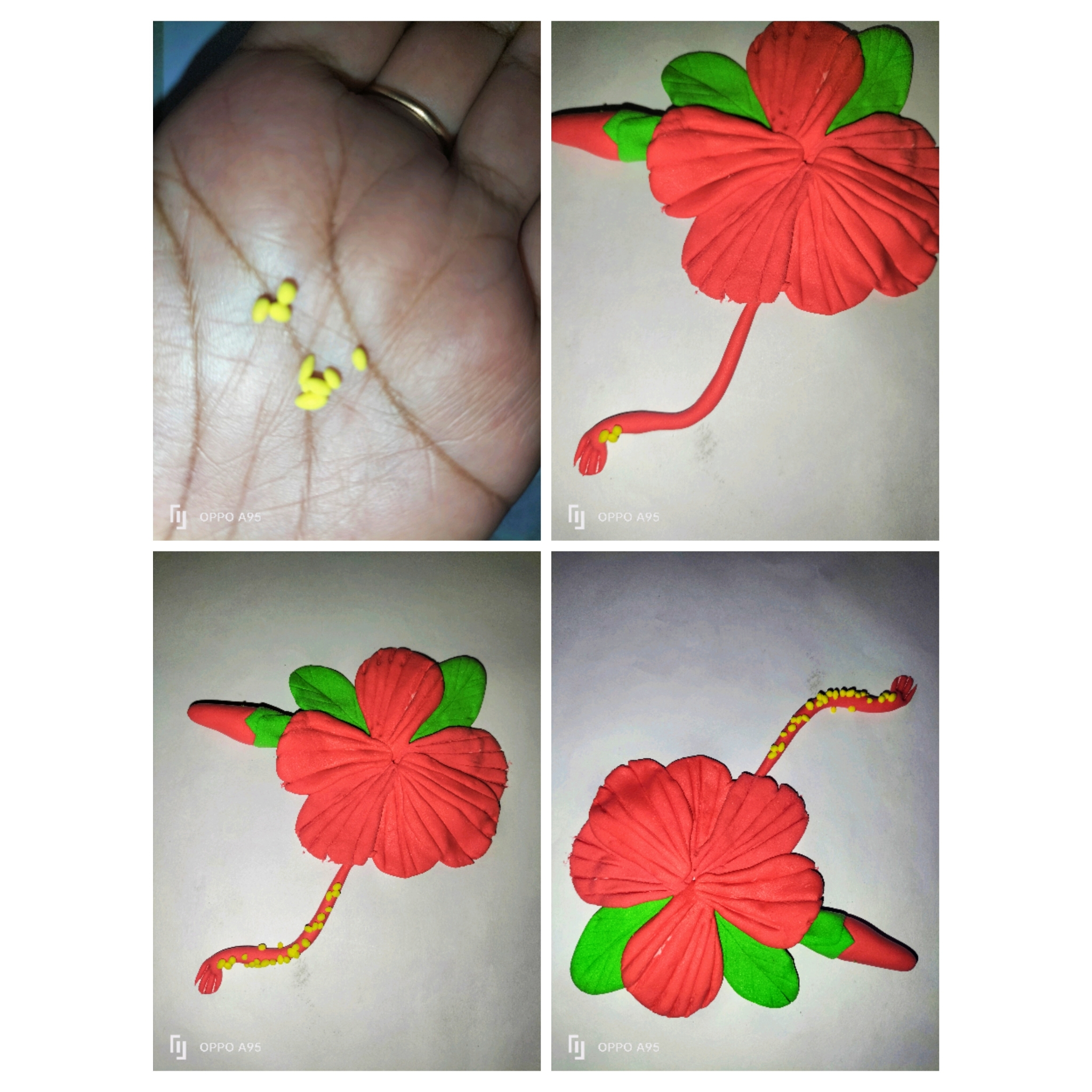 এখন কেশরে হলুদ কালারের ক্লে দিয়ে পরাগায়ন বানিয়ে লাগিয়ে নিয়েছিও লাগিয়ে নিয়েছি।