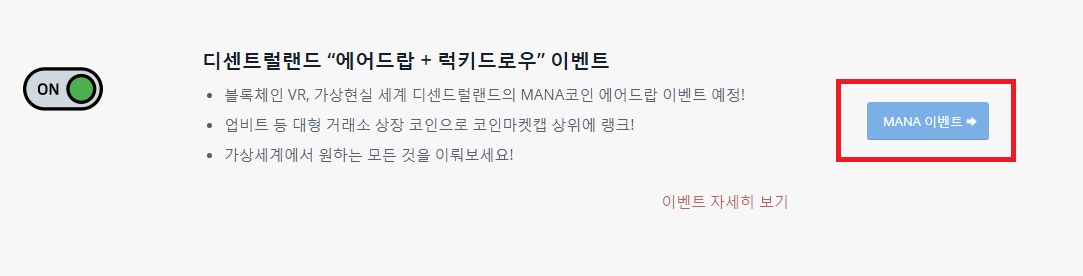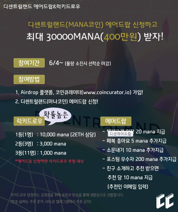 VR가상세계, 디센트럴랜드(mana) 코인 에어드랍 이벤트