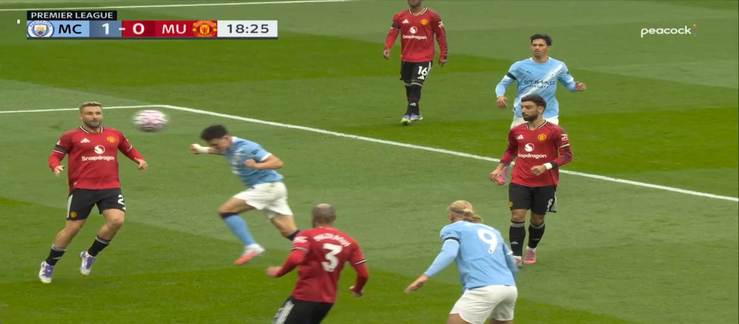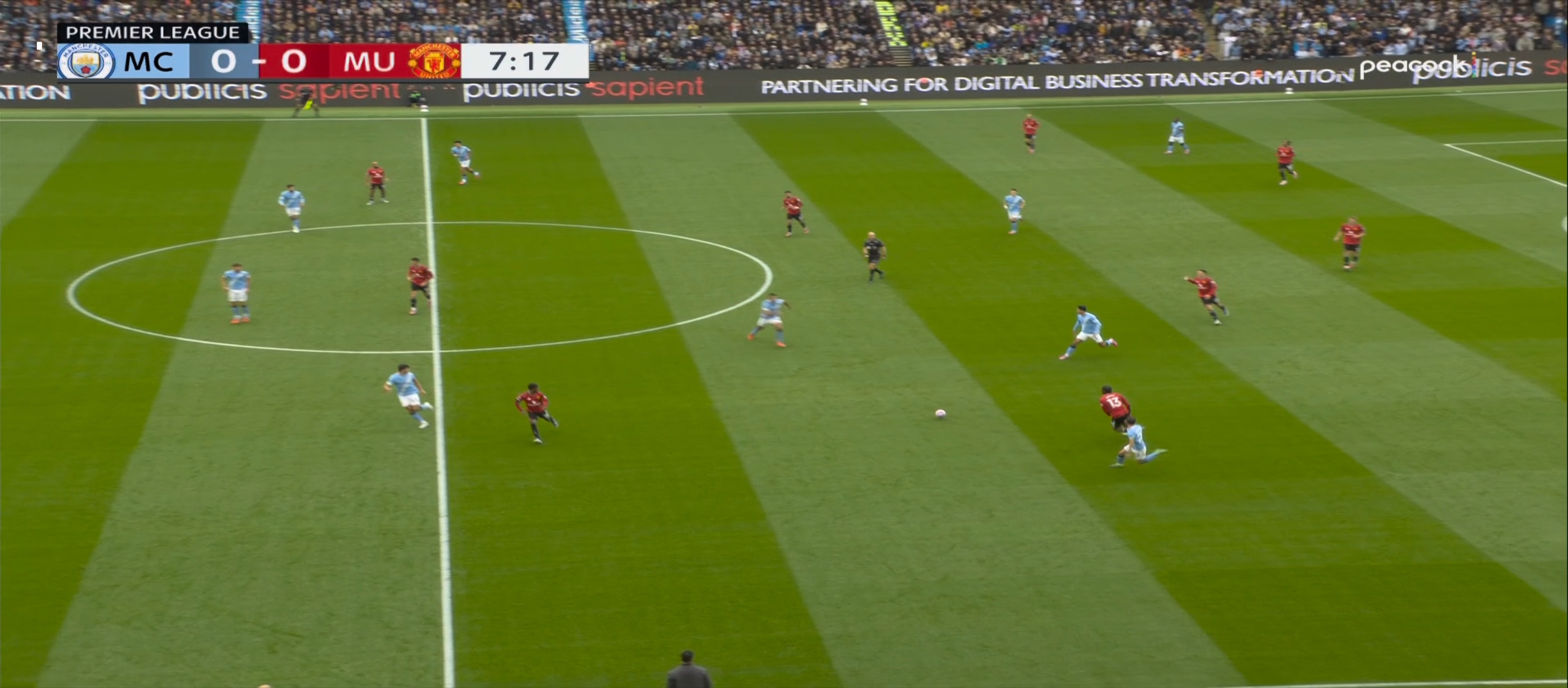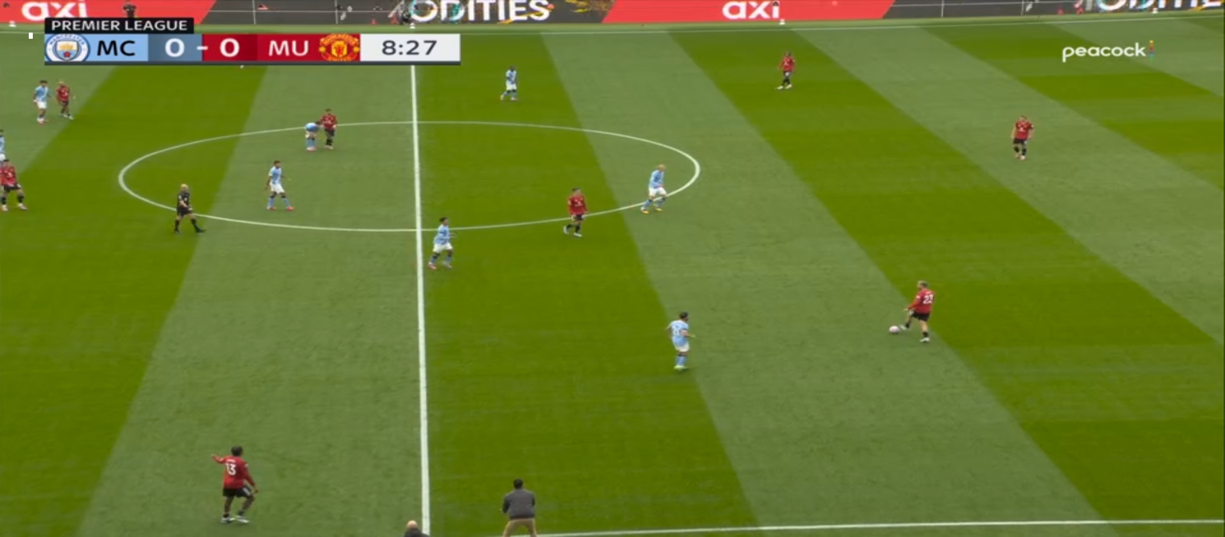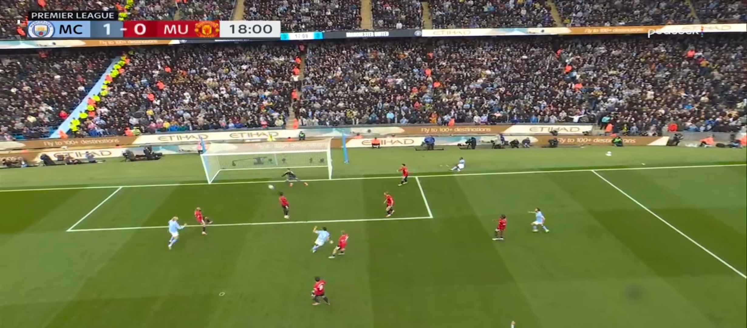 এরপর আরও দারুণ কিছু আক্রমণ চালাতে থাকে ম্যানচেস্টার সিটি। কিন্তু কোন গোল পাইনি। অন্যদিকে ম্যানচেস্টার ইউনাইটেড দারুণ কিছু আক্রমণ তৈরি করলেও সেরকমভাবে ফিনিশিং একেবারেই করতে পারেনি। ফলাফল প্রথমার্ধ এভাবেই শেষ হয়। দ্বিতীয়ার্ধে খেলতে নেমে সিটি বেশ আক্রমনাত্মক খেলতে থাকে। ম্যাচের ৫৩ মিনিটের সময় ডকুর দ্বিতীয় অ্যাসিস্টে গোল করে আরলিং হ্যালান্ড। ২-০ তে এগিয়ে যায় ম্যানচেস্টার সিটি। এগিয়ে যাওয়ার পরেও তারা আক্রমণের দ্বারা অব্যাহত রাখে। অন্যদিকে ম্যান ইউনাইটেড তাদের কাঙ্ক্ষিত ফুটবল টা খেলার চেষ্টা করছিল। কিন্তু ফলাফল শূণ্য। কোনভাবেই তারা গোল করতে পারছিল না। ম্যাচের ৬৮ মিনিটের সময় আবার গোল করে হ্যাল্যান্ড। তবে এবার অ্যাসিস্ট করে বার্নাদো সিলভা। পুরোপুরি ৩-০ গোলে এগিয়ে যায় ম্যানচেস্টার সিটি।