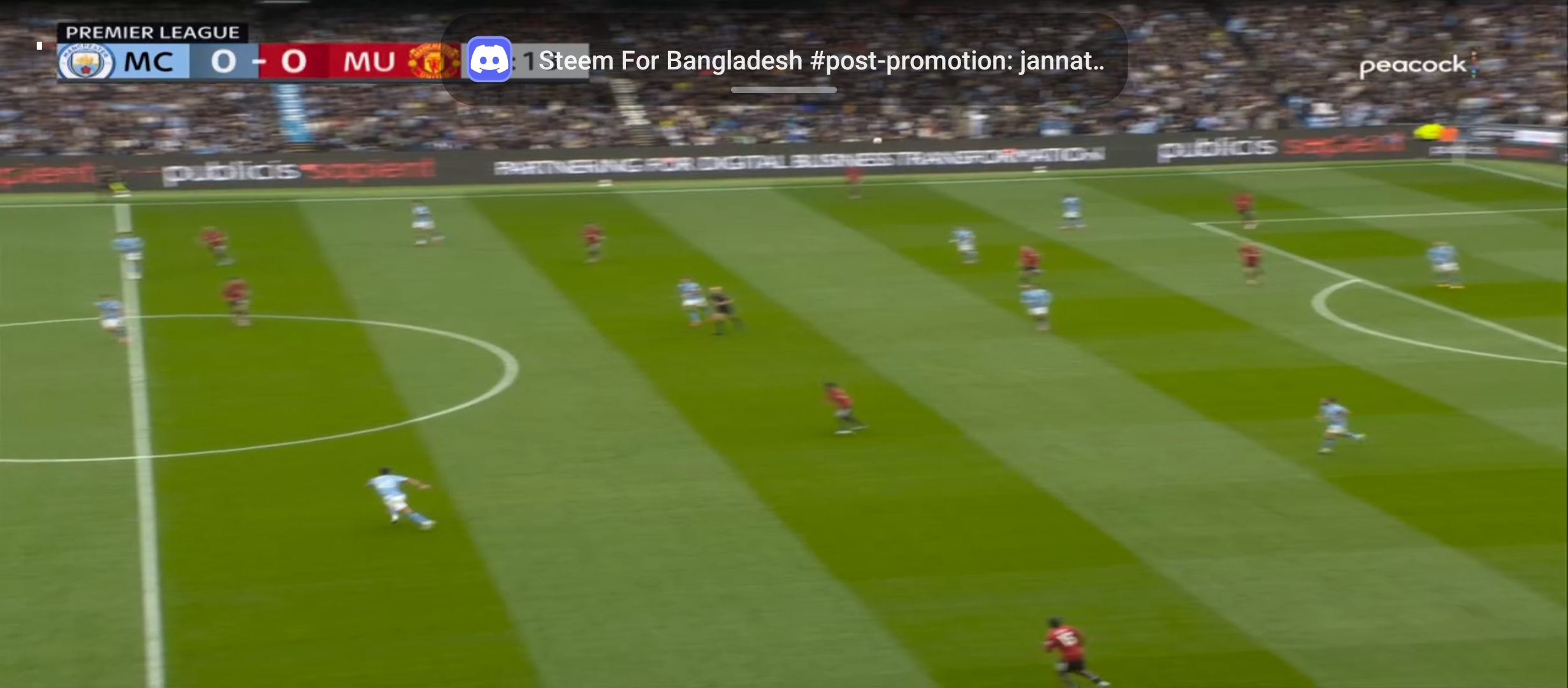 অন্যদিকে এই সিজেনে ম্যানসিটির অবস্থা টাও খুব একটা ভালো না। তারা অনেক গুলো খেলোয়ার সাইন করালেও সিজেনের প্রথম কয়েকটা ম্যাচ হেরেছে। পেপ গার্দিওয়ালা বরাবরই সিজেনটা একটু খারাপ ভাবে শুরু করলেও পরে গিয়ে অসাধারণ খেলে থাকে তার দল। সে একজন মাস্টারমাইন্ড কোচ। ম্যানসিটি ৪-১-৪-১ ফর্মেশনে মাঠে নামে। অন্য দিকে ম্যাচ ইউনাইটেডের ফর্মেশন ছিল ৩-৪-২-১। ম্যাচটা ছিল সিটির হোম গ্রাউন্ড ইওিহাদে। খেলার শুরু থেকে দুই দলই গুছিয়ে ফুটবল খেলতে থাকে। বেশ কয়েকটা পজেটিভ আক্রমণ দুই দলই করে। কিন্তু কেউ গোল করতে পারে না। ম্যাচের ১৮ মিনিটের সময় ডকু দারুণ ভাবে বল নিয়ে ডিবক্সের মধ্যে ঢুকে পড়ে। এরপর বলটা বাড়িয়ে দেয় ফিল ফোডেনের দিকে। হেডে গোল করে ফোডেন। ১-০ তে এগিয়ে যায় ম্যান সিটি।