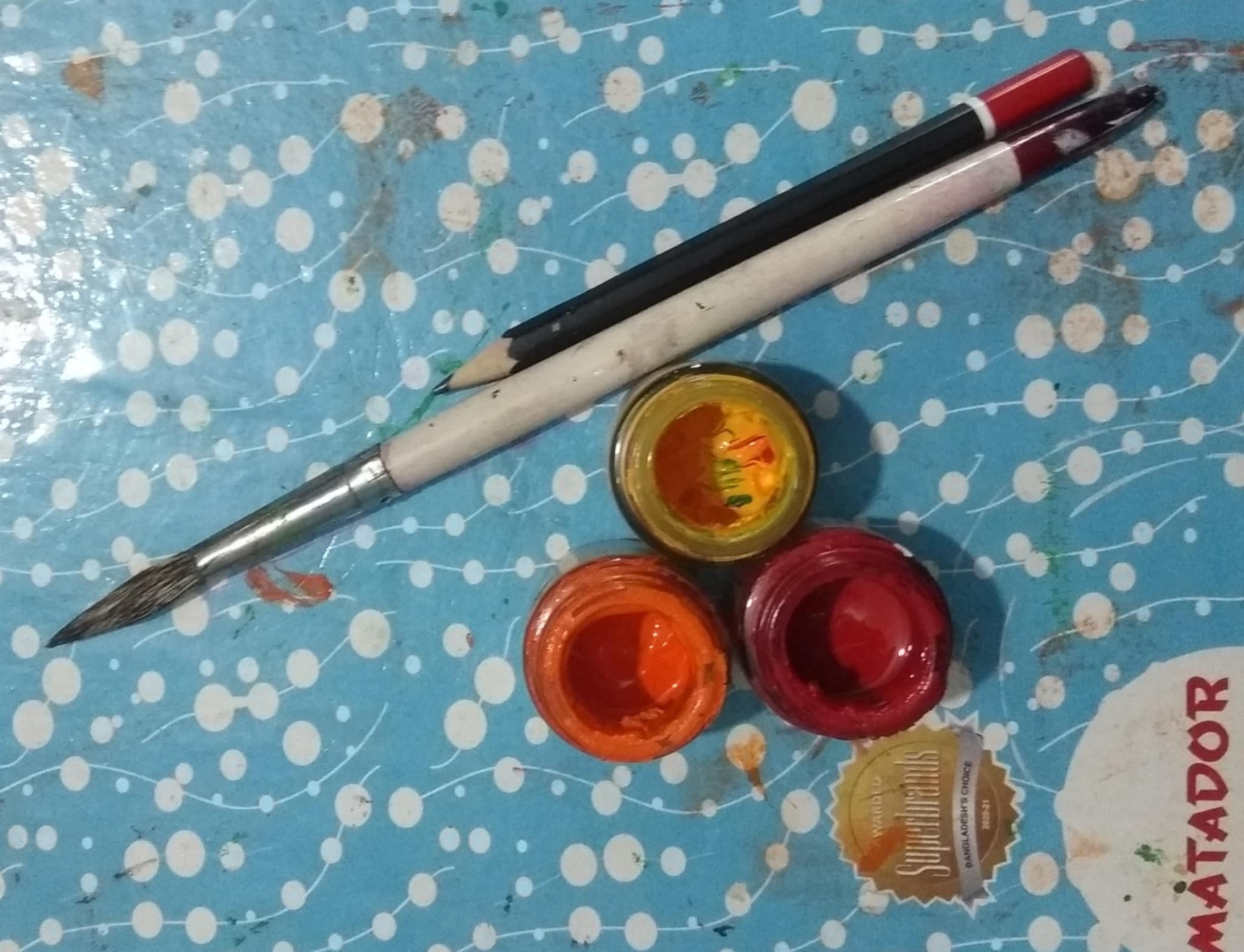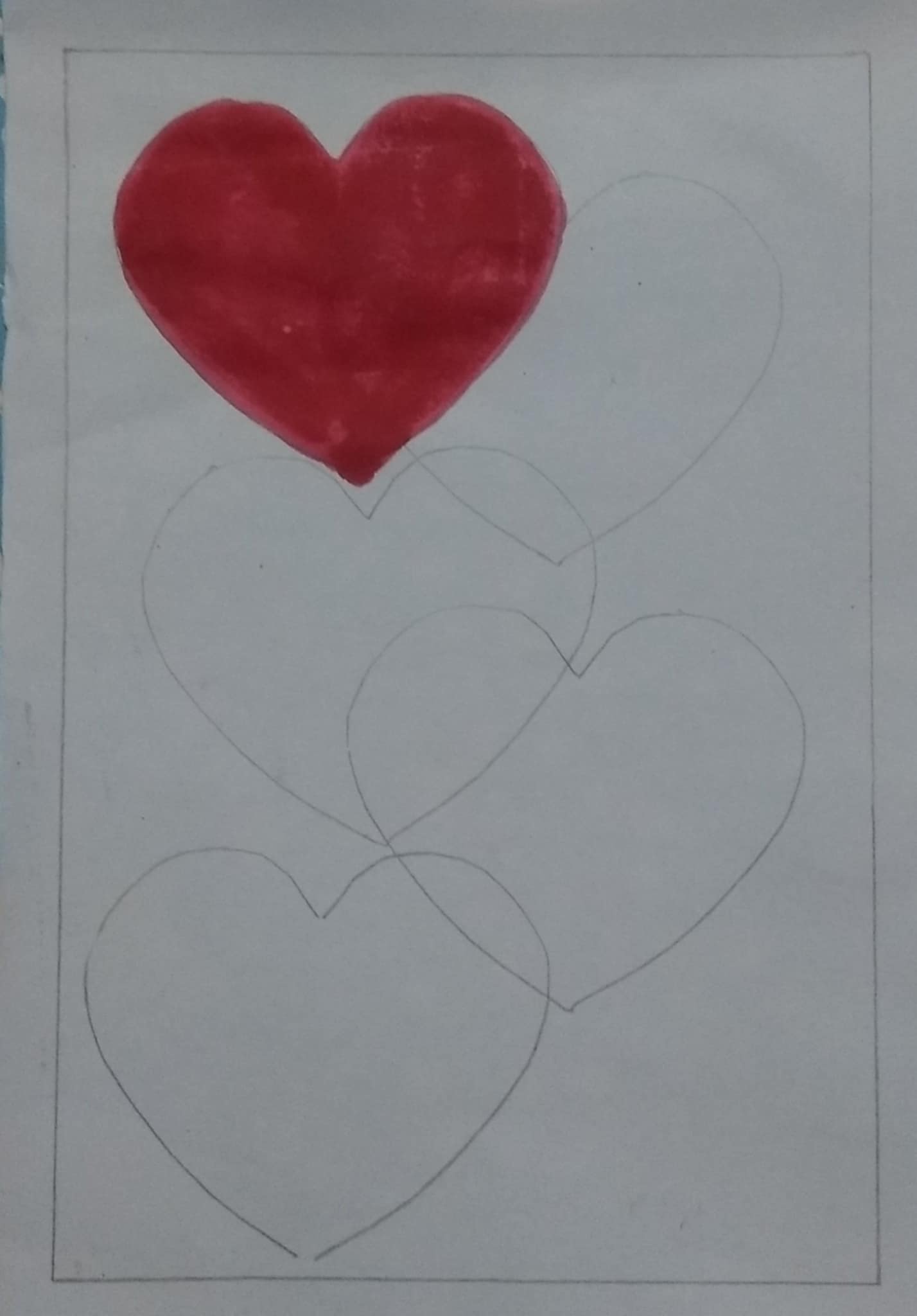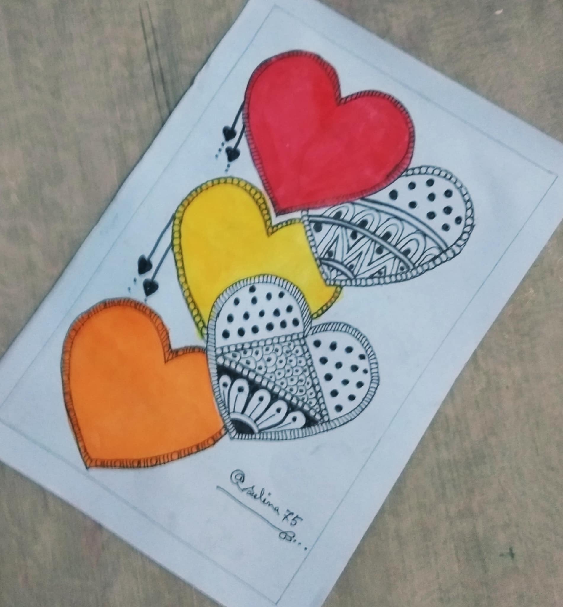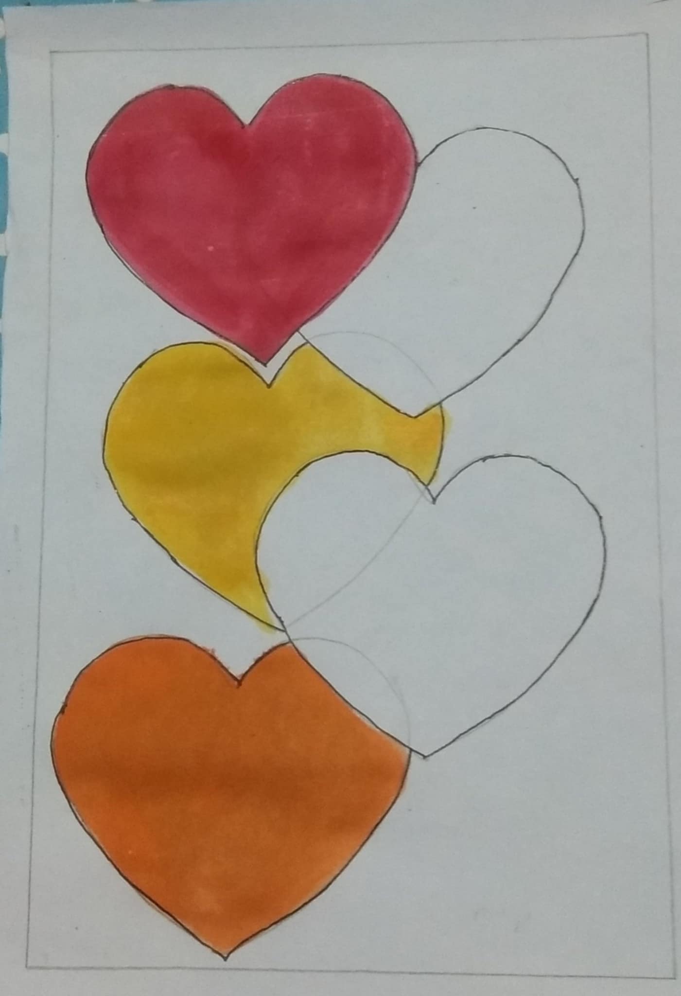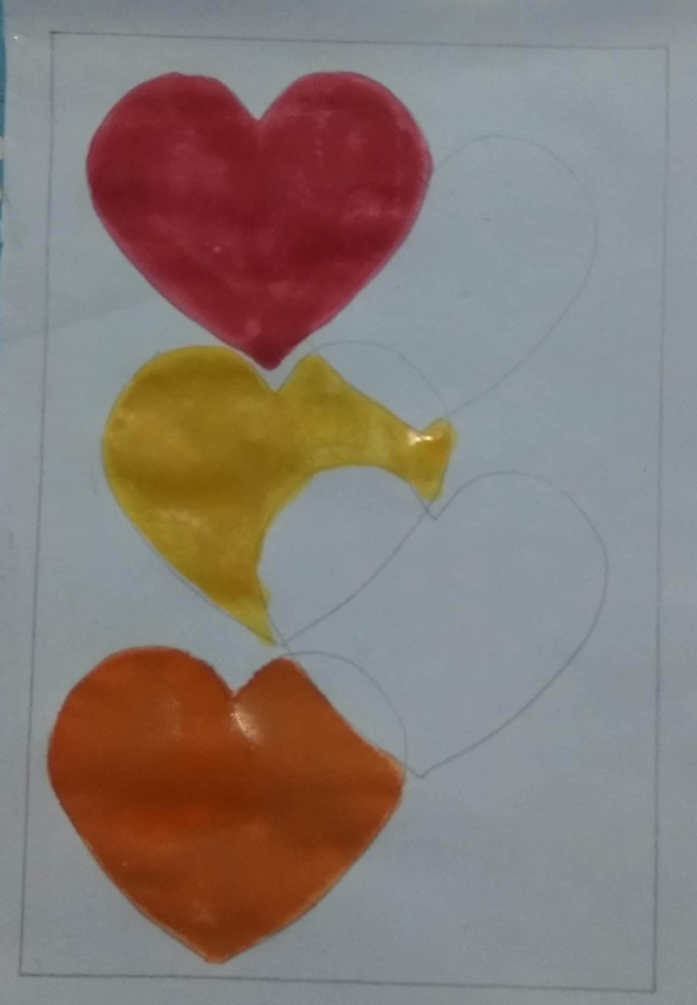 তিনটি হার্ট শেপে বিভিন্ন রং এর পোস্টার রং দিয়ে রং করে নিয়েছি।