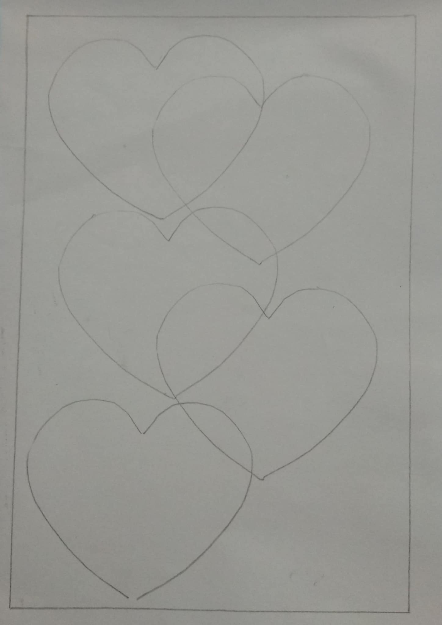 পেন্সিলের দাগের মাঝখানে আগে পিছে করে কয়েকটি হার্ট শেপ এঁকে নিয়েছি।