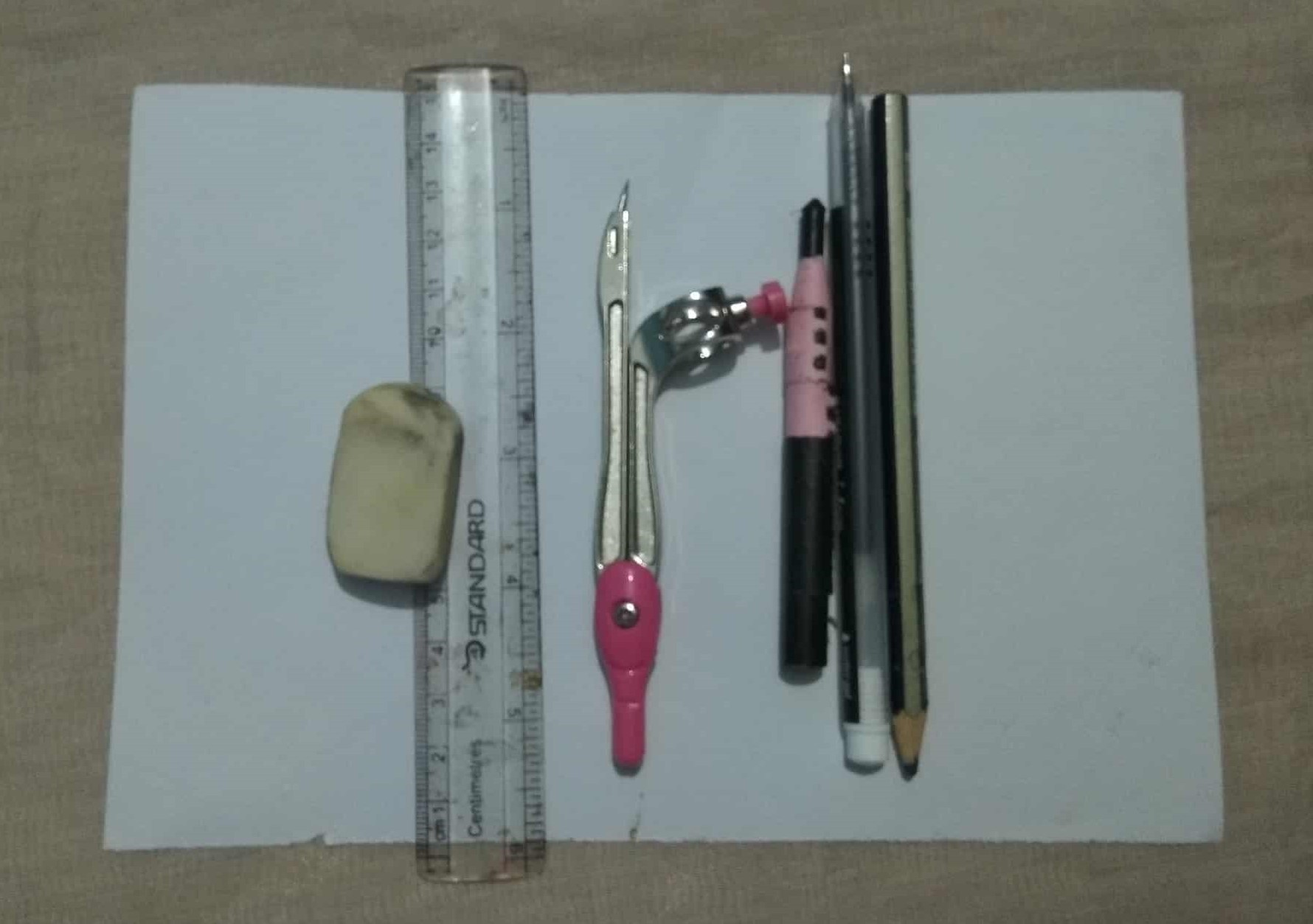 প্রথম সাদা কাগজের চারপাশে পেন্সিল দিয়ে দাগ দিয়ে নিয়েছি। পেন্সিলের দাগের মধ্যেই ম্যান্ডালা আর্টটি করবো।